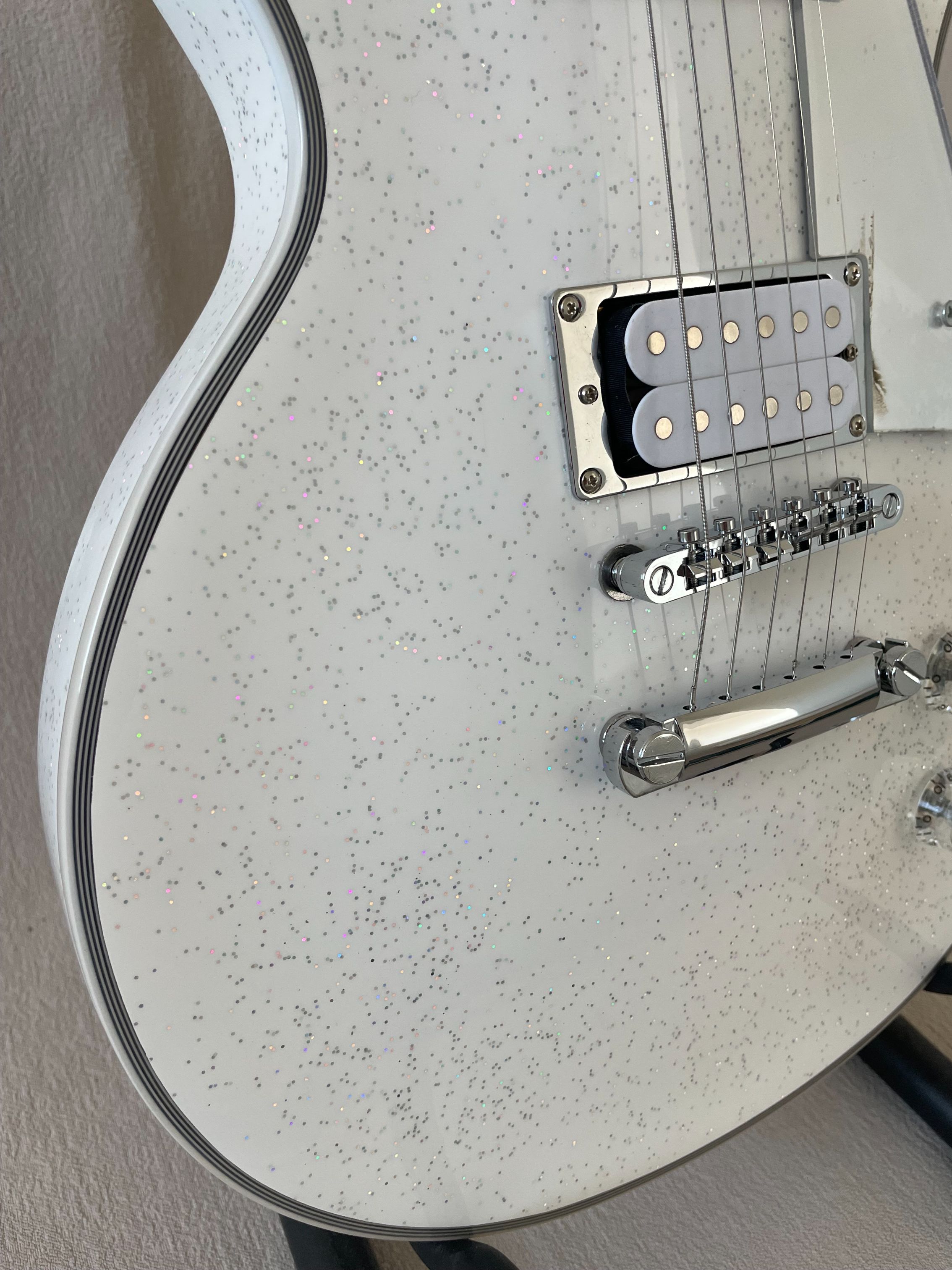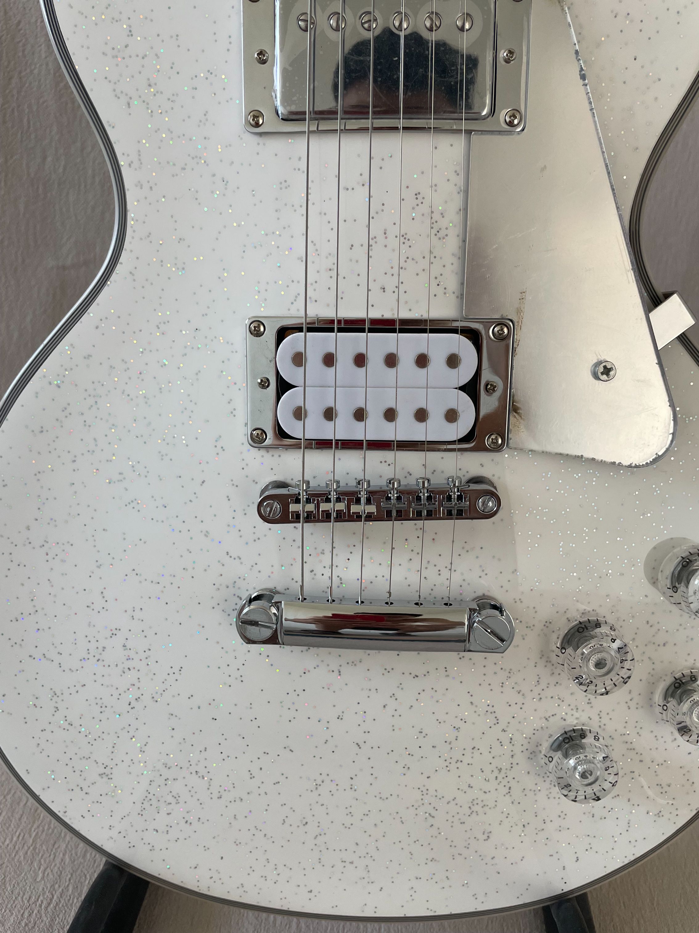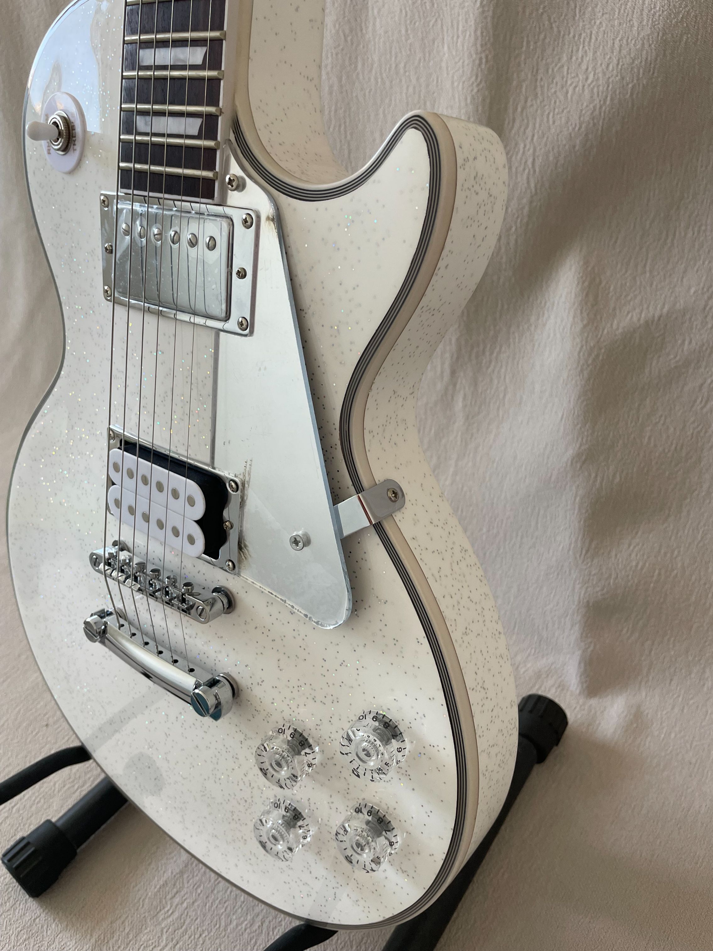 Custom LP Electric Guitar Rosewood Fretboard Glittering White Surface Silver Hardware