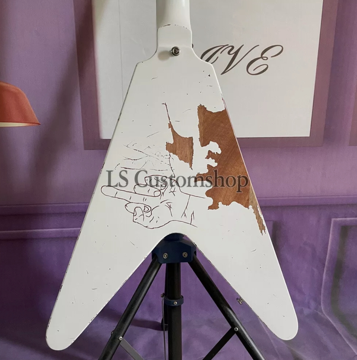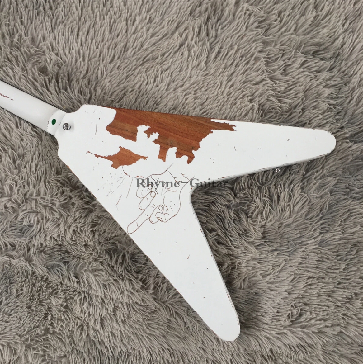 Vintage White '70s Flying V Electric Guitar James Hetfield EET FUK Heavy Aged