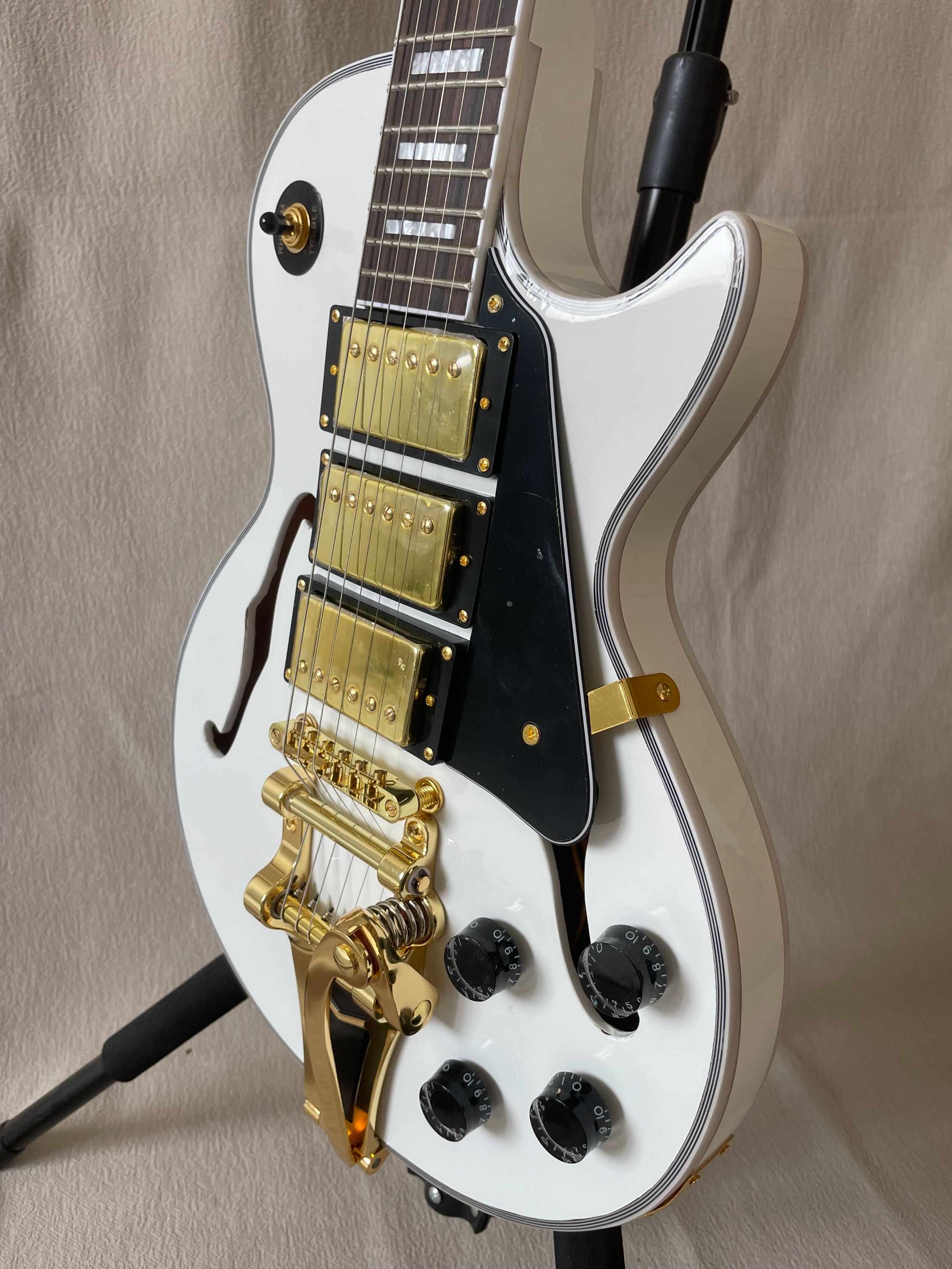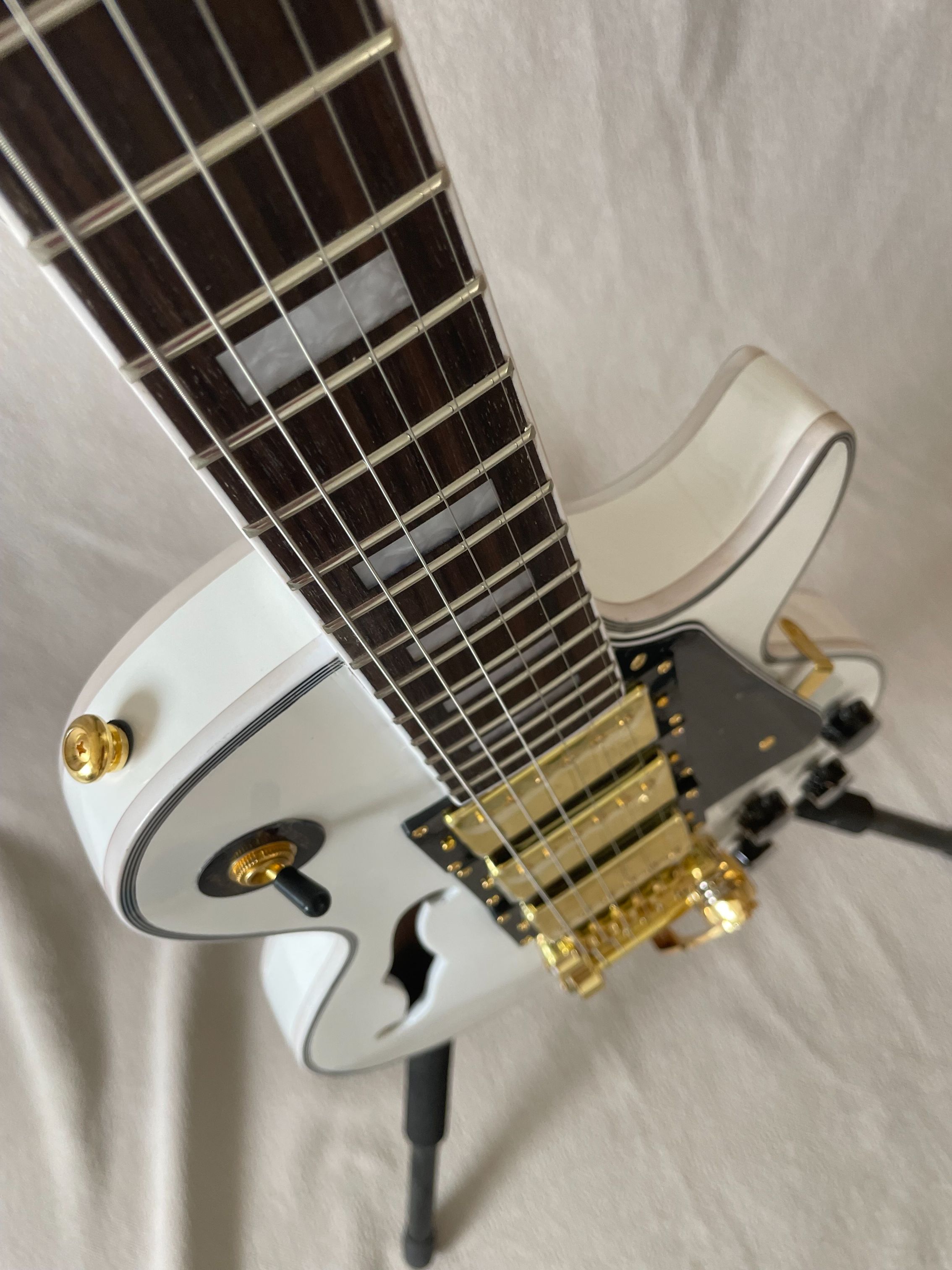 Custom White F-Hole Jazz Half Hollow Electric Guitar Gold Accessories