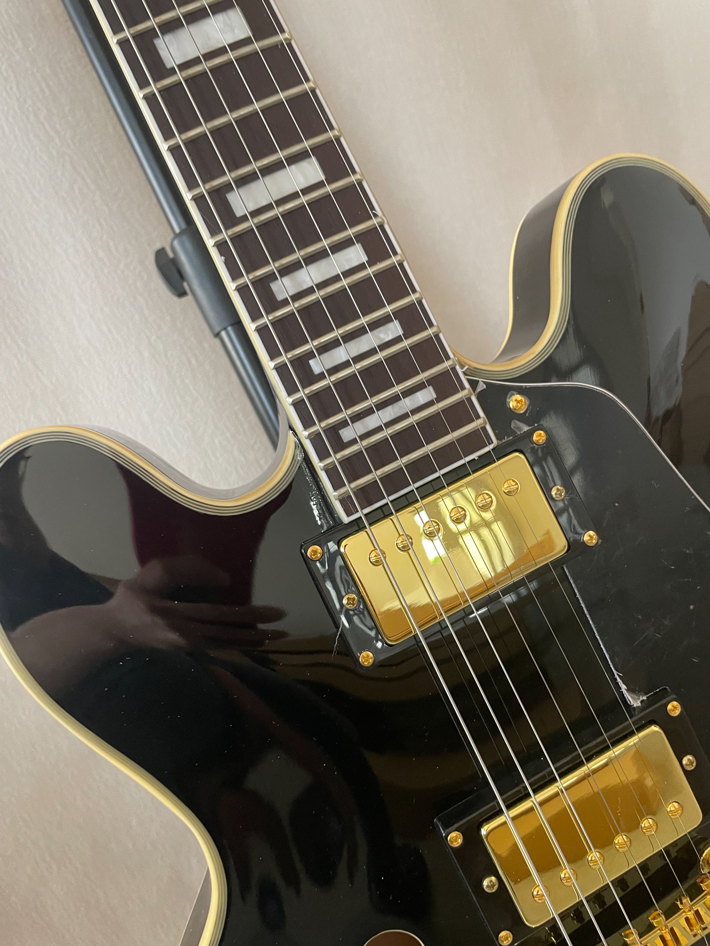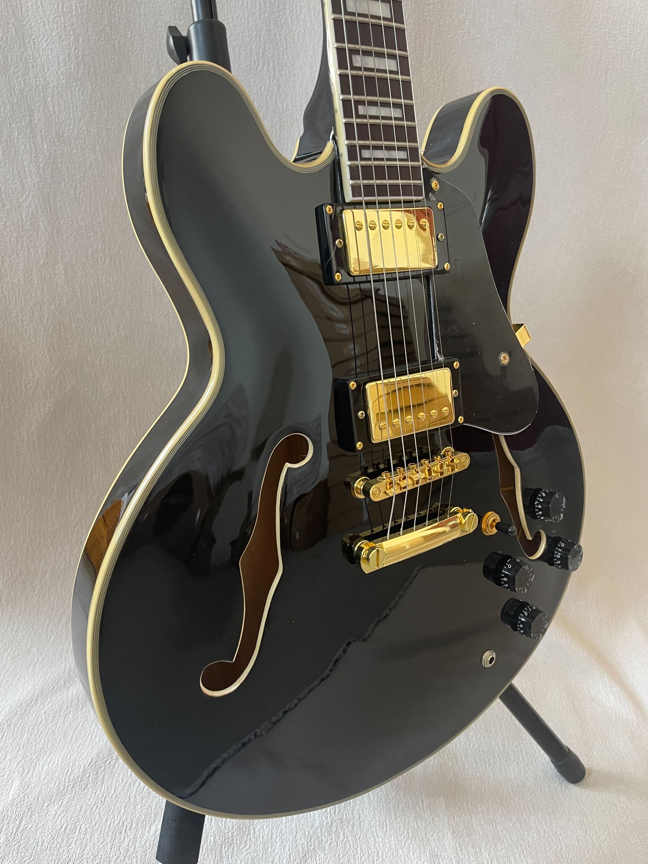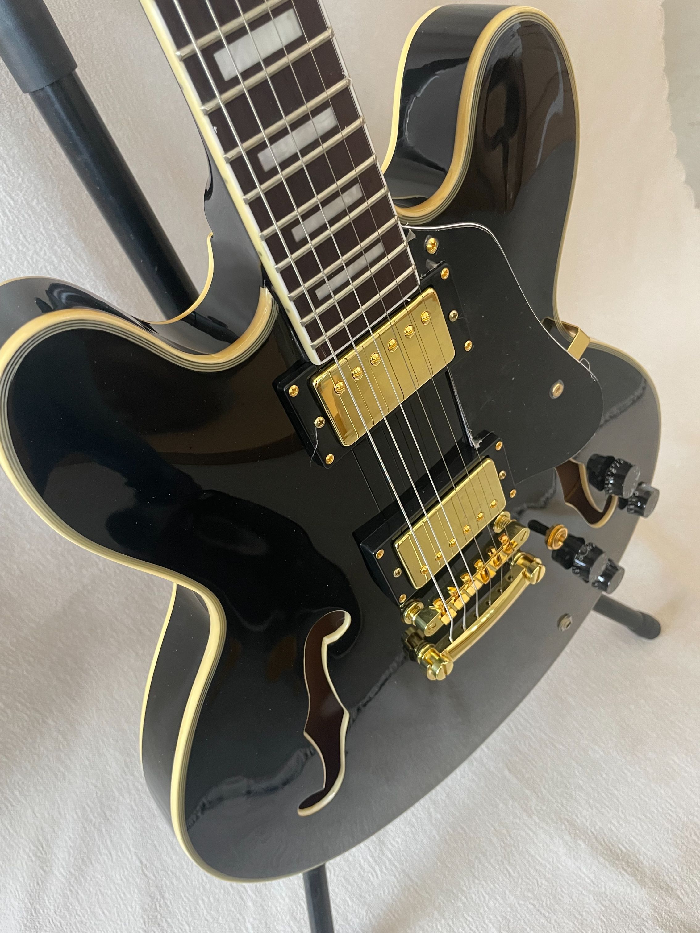 High Quality Black 335 Electric Guitar Semi Hollow Maple Body Rosewood Fingerboard 6 String Gold Hardware