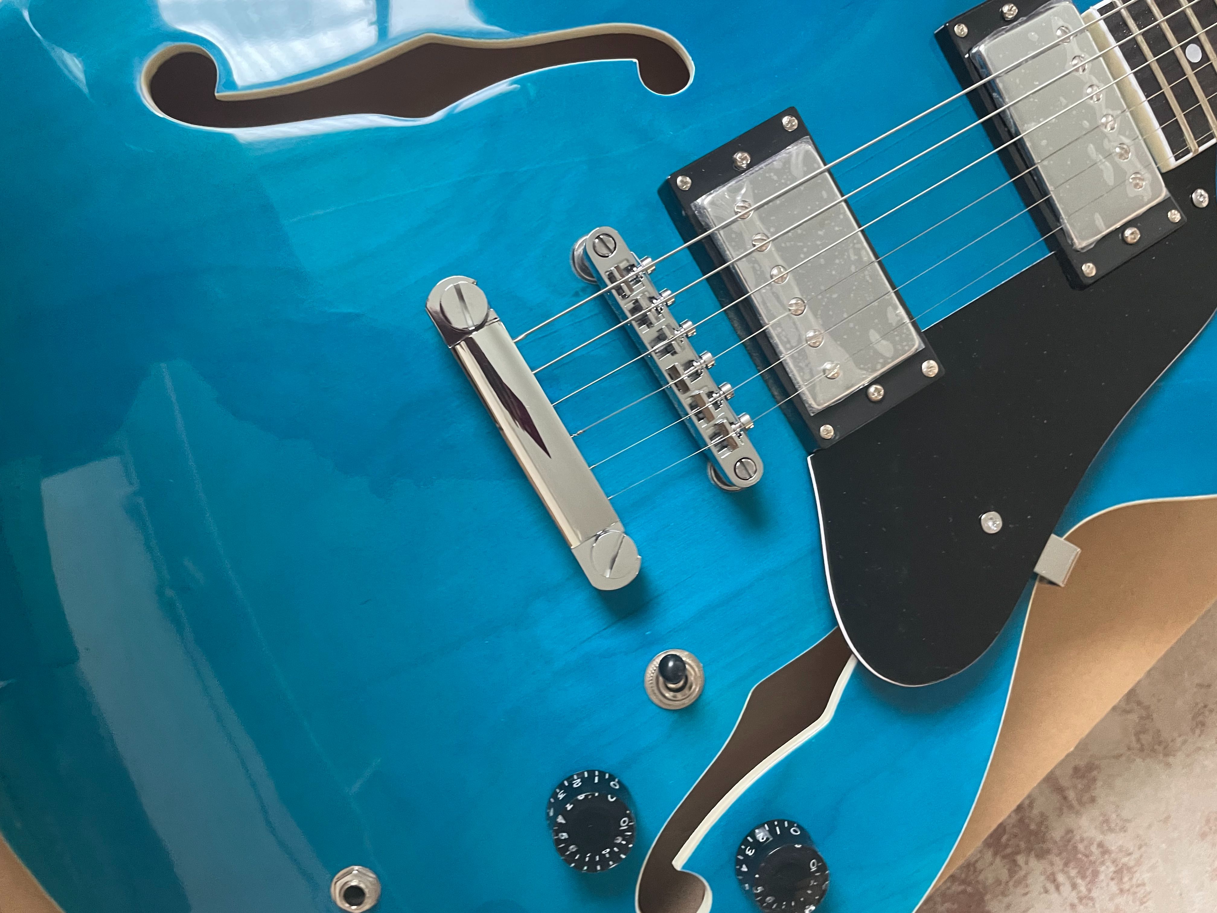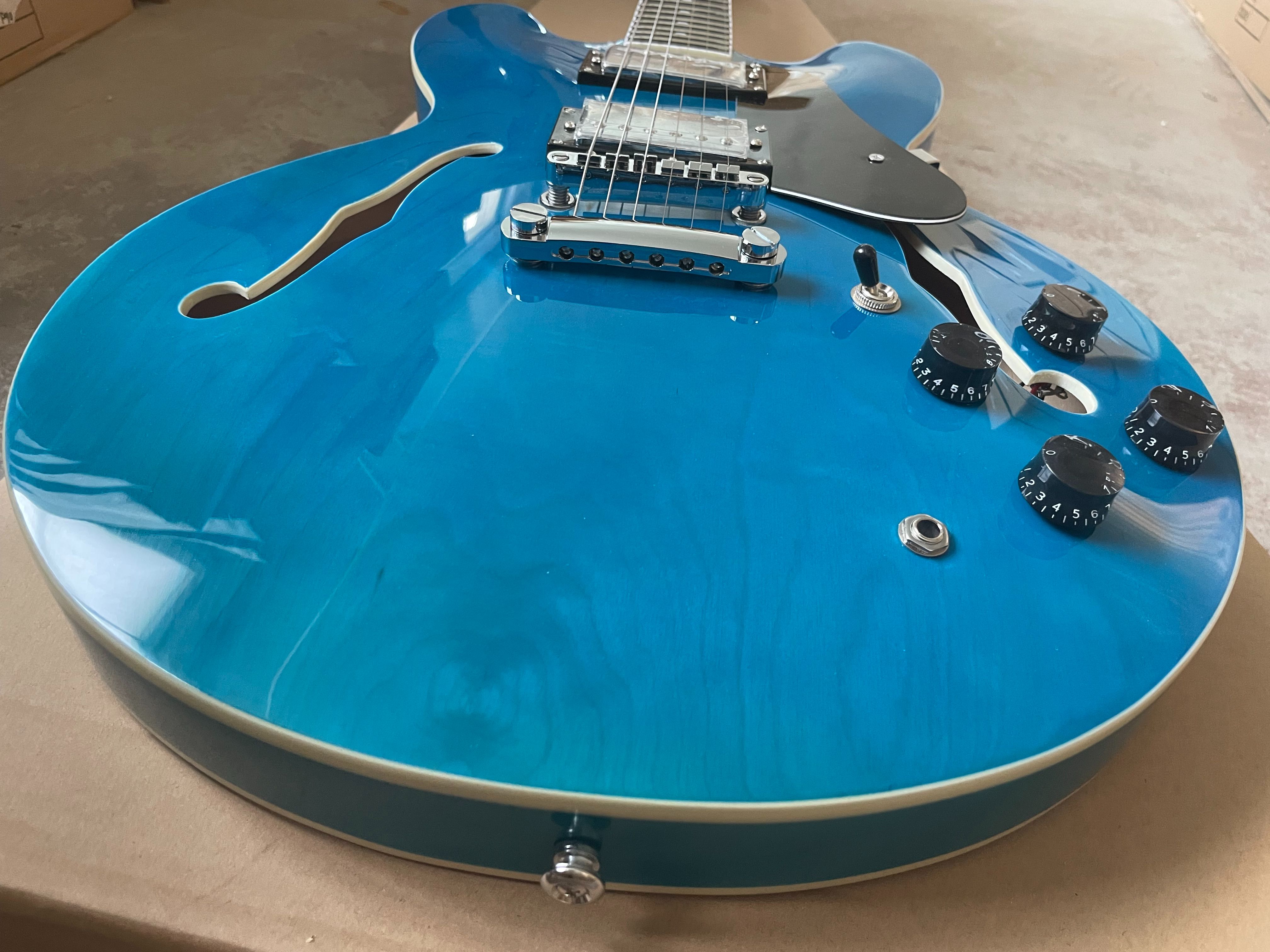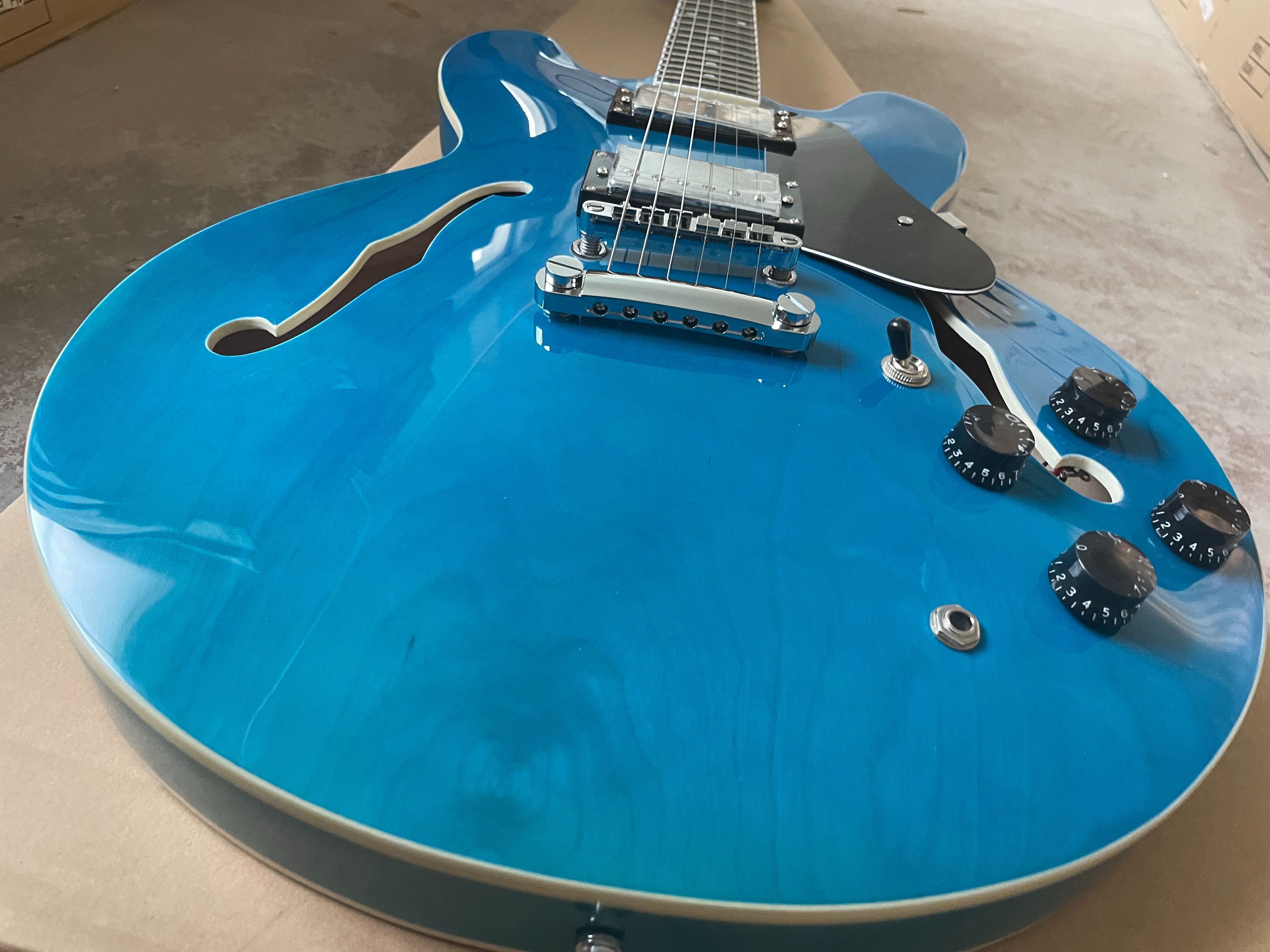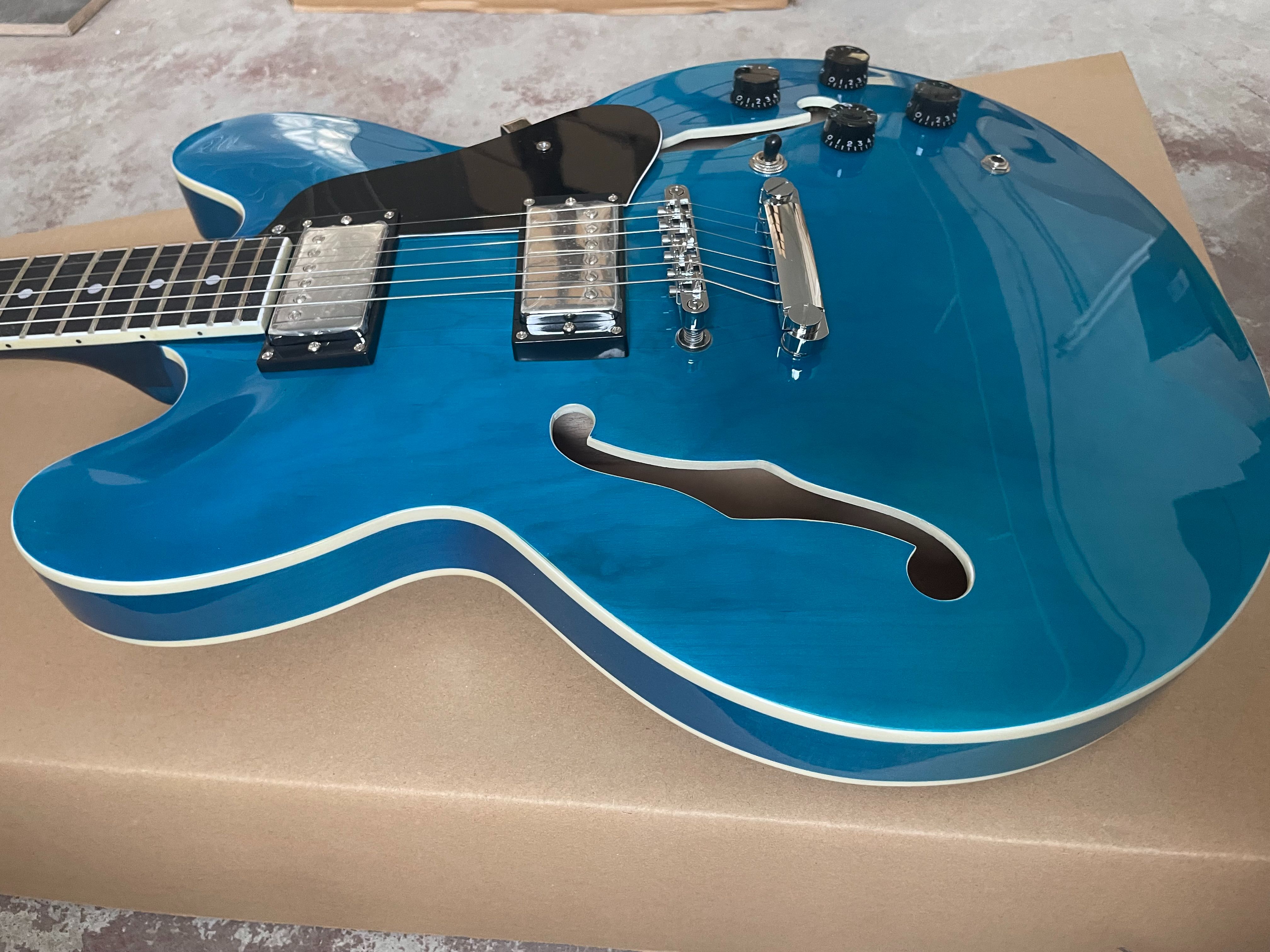 Classic F-Hole 335 Jazz Half Hollow Electric Guitar Blue Rosewood Fretboard