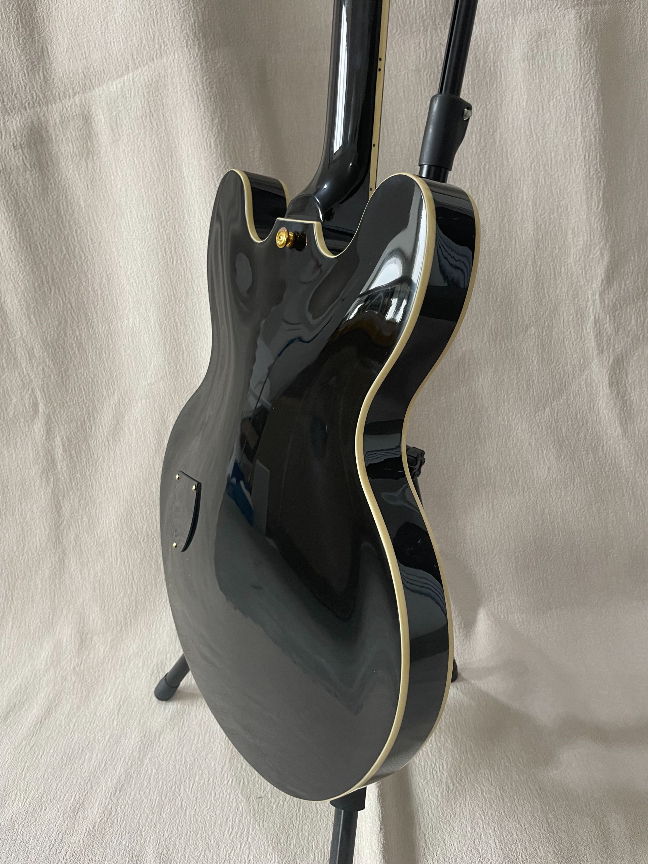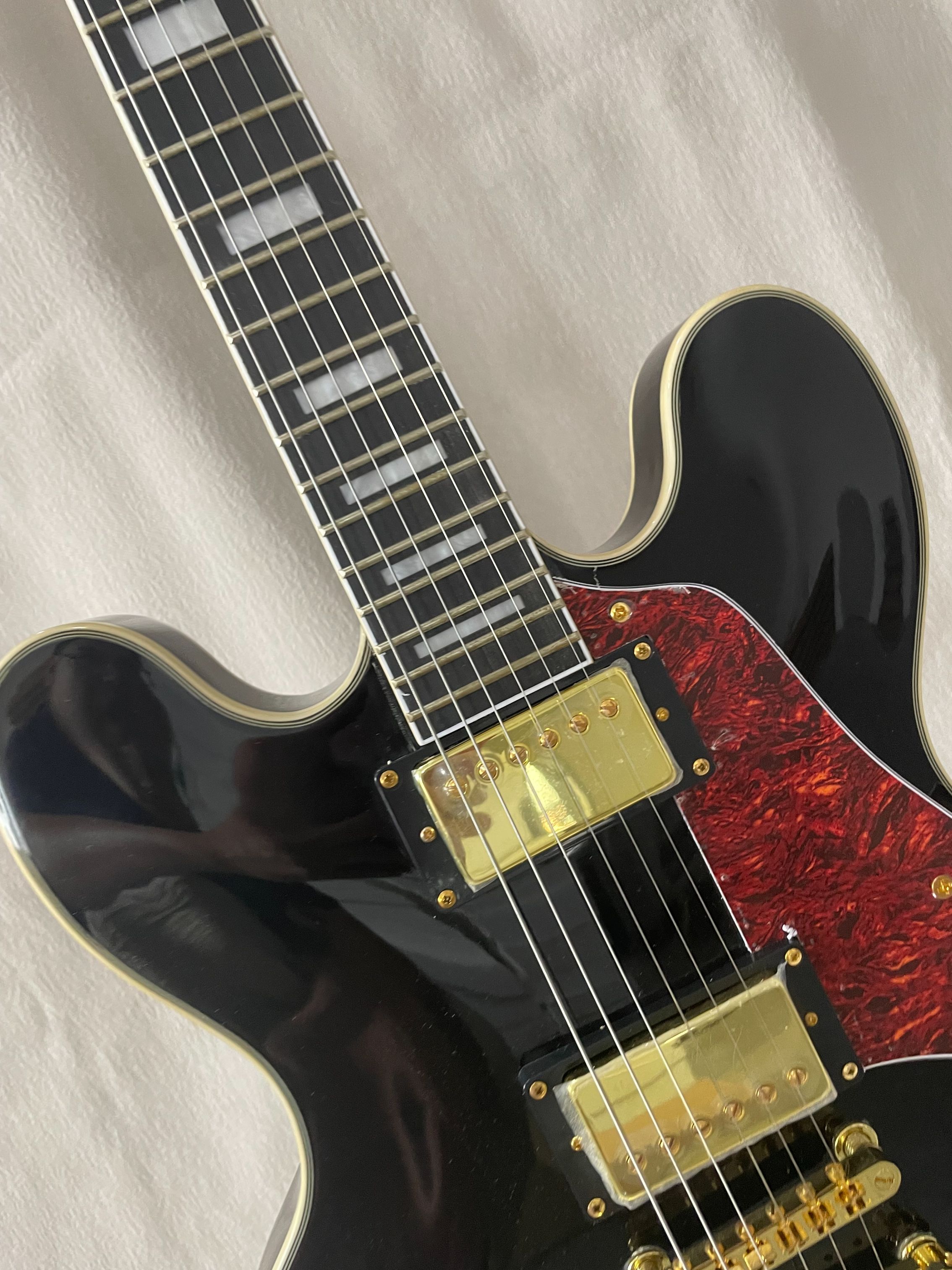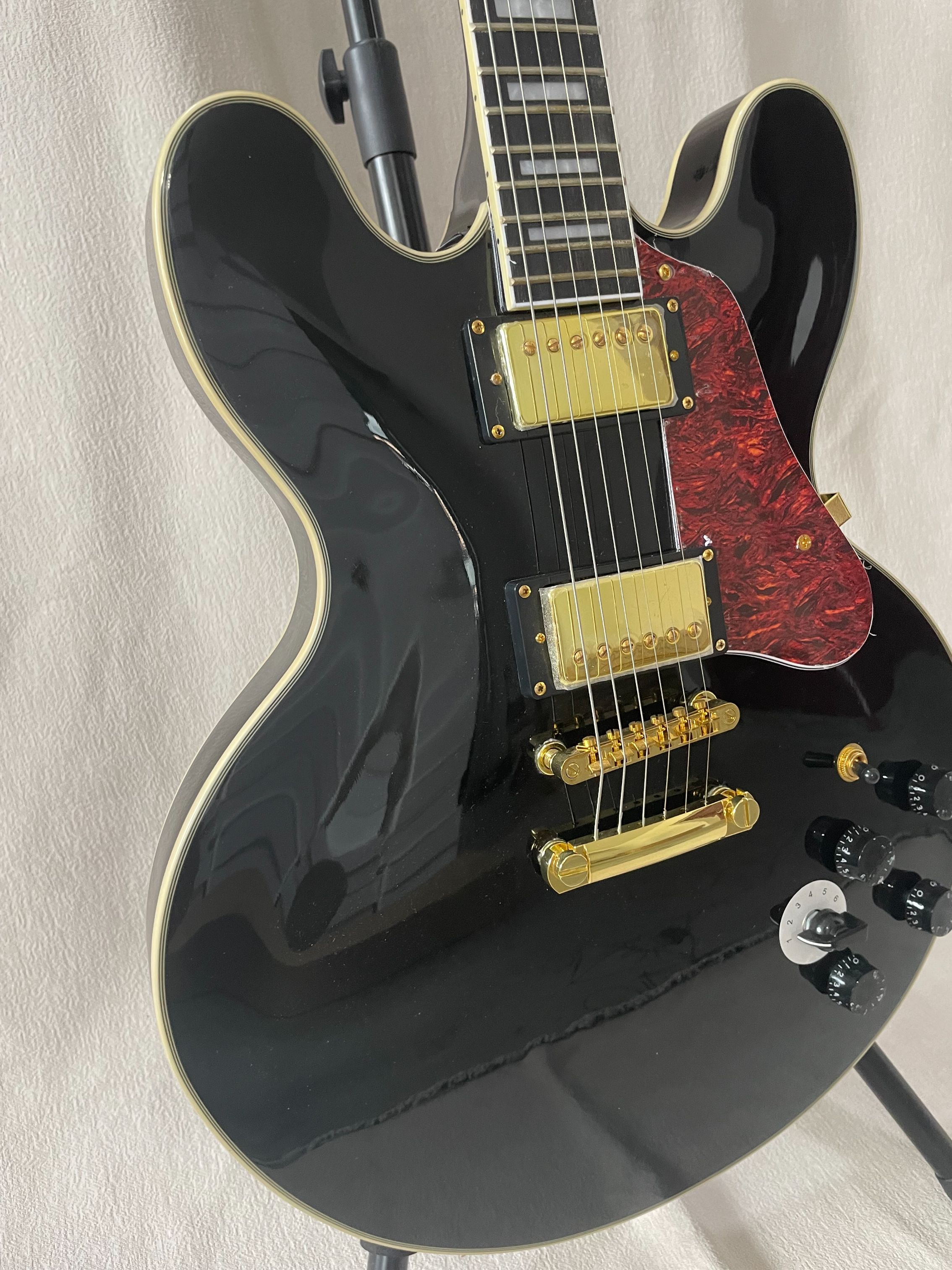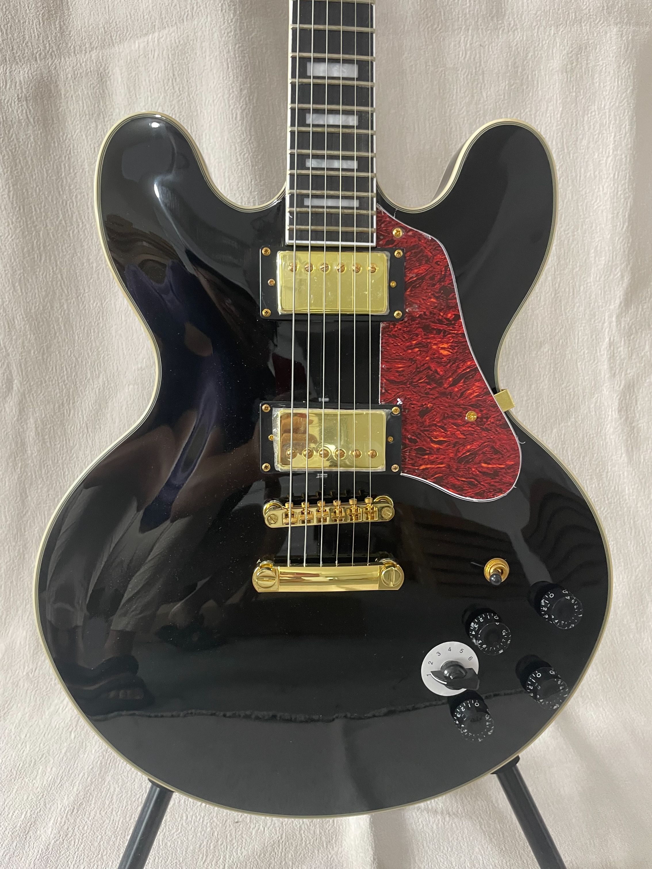 Classic No F-Hole 335 Jazz Half Hollow Electric Guitar Gold Hardware Accessories Black