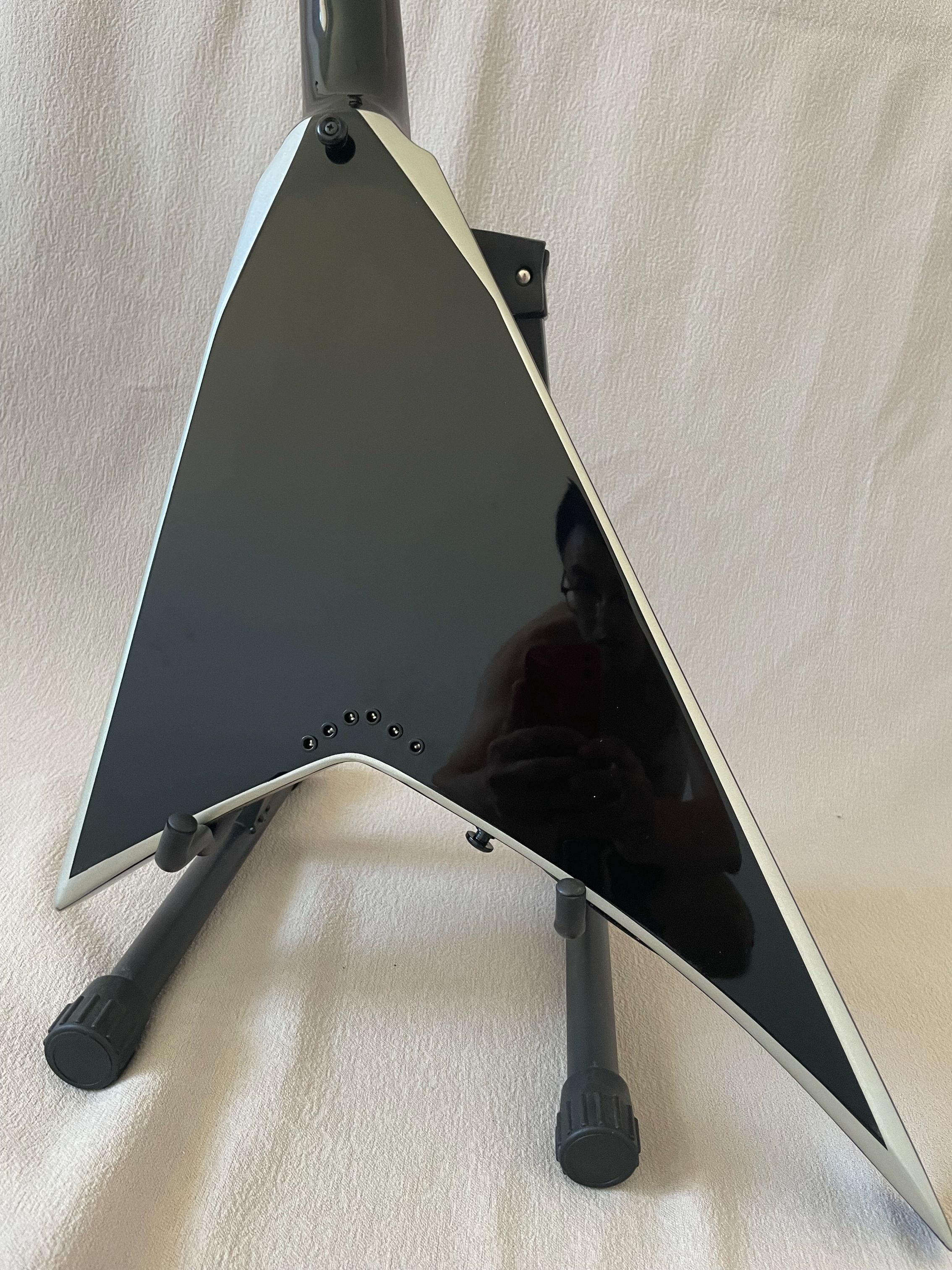 Brand New High Quality 6 String V-Shaped Electric Guitar Black Body, White Binding