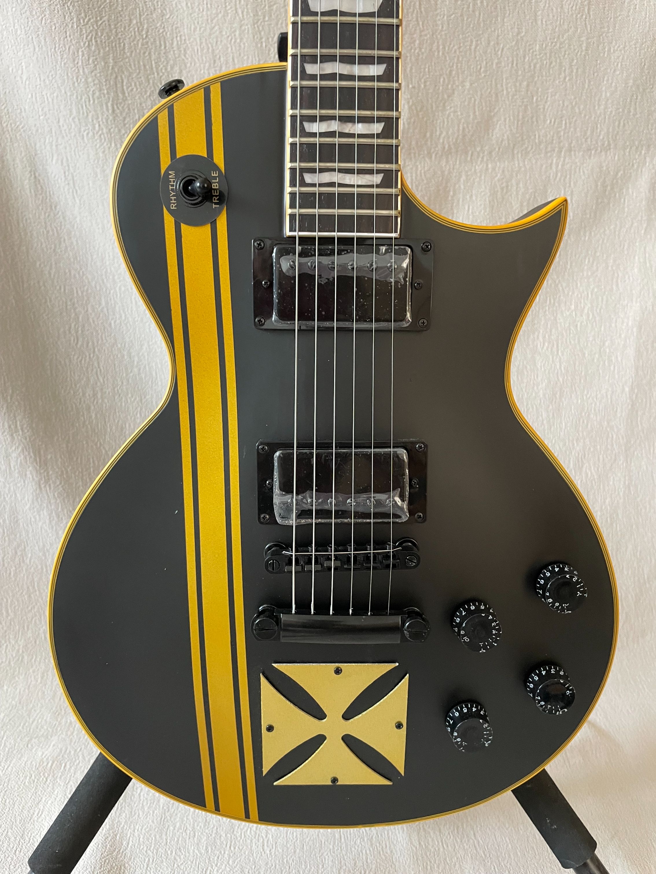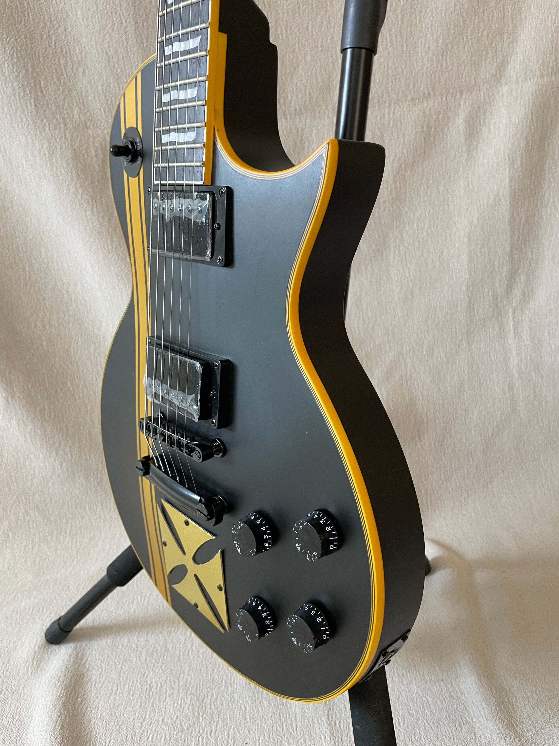 Elegant IRON CROSS Sw Old Electric Guitar Yellow Striped Cross,Black Body