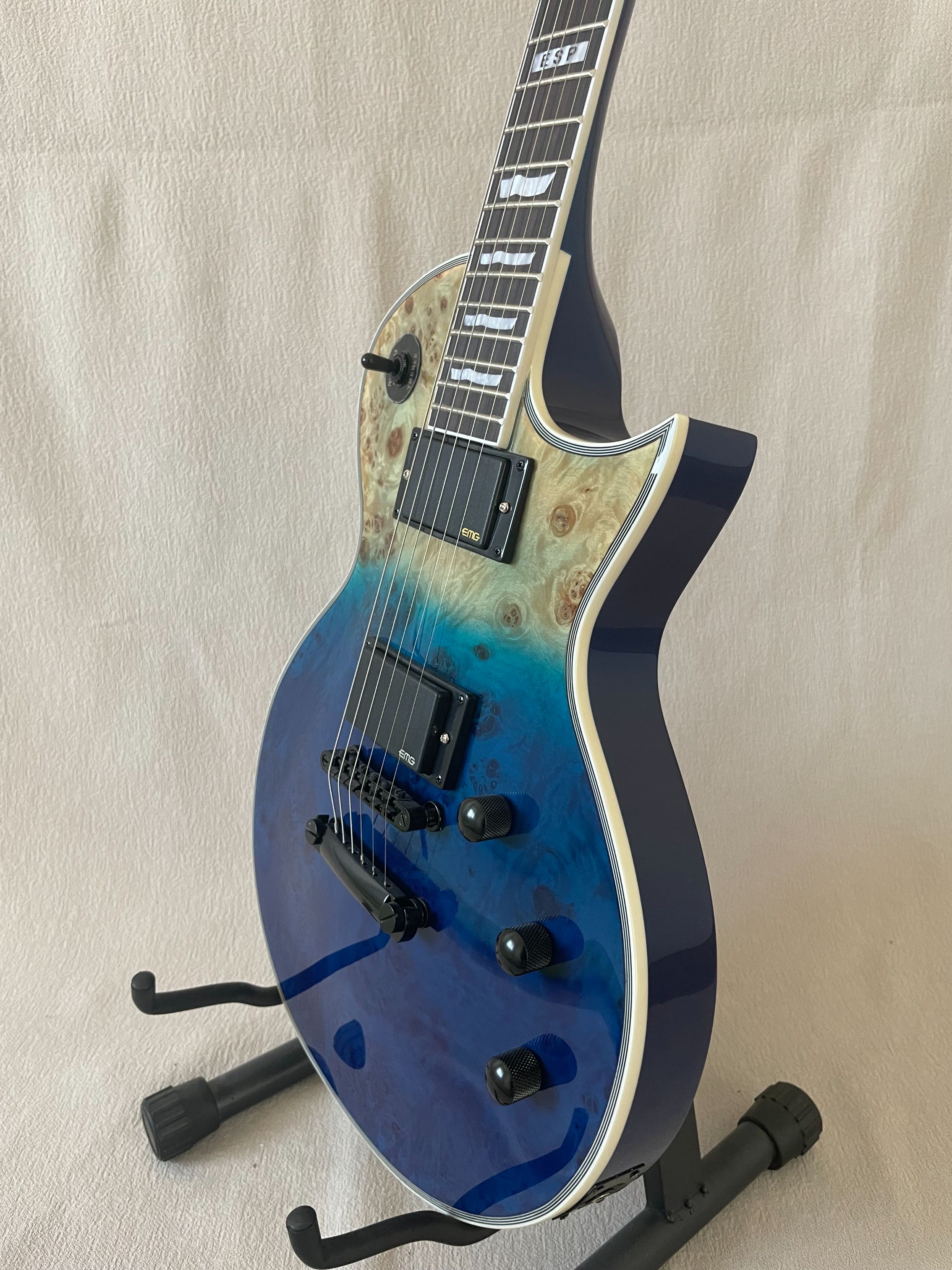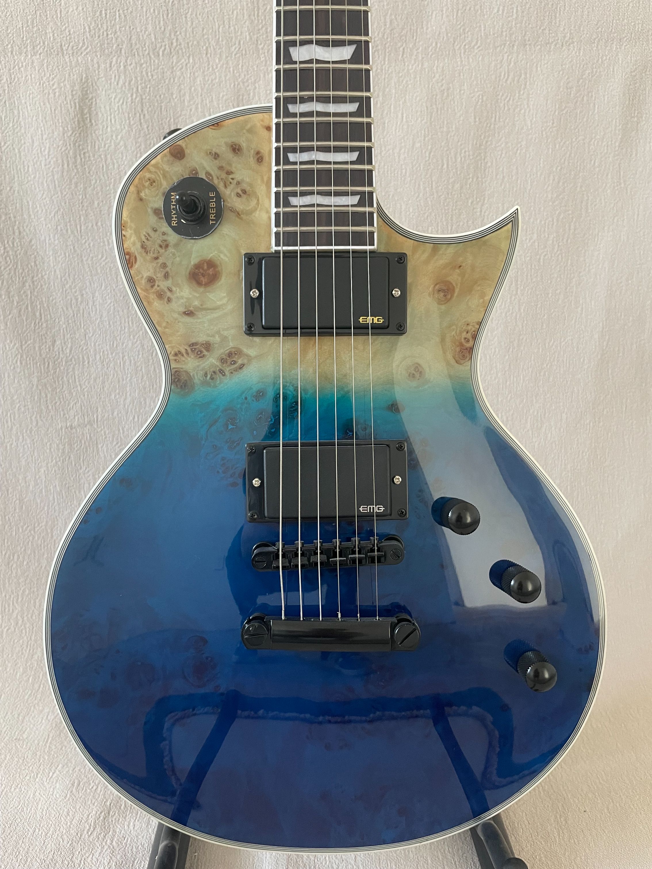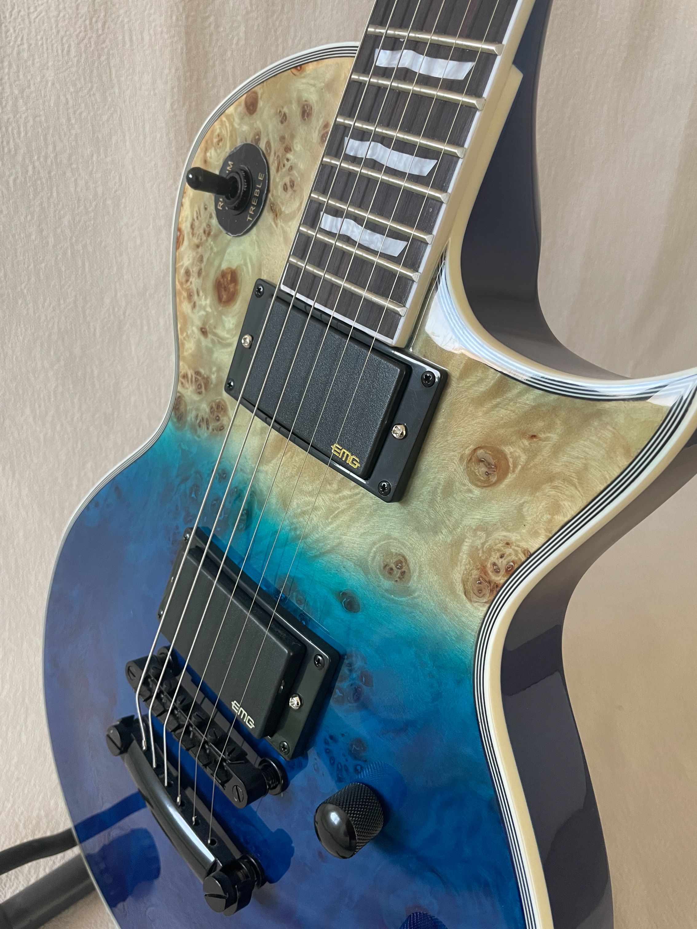 Sunburst Burl Top Electric Guitar EMG Active Pickup Classical Navy Blue