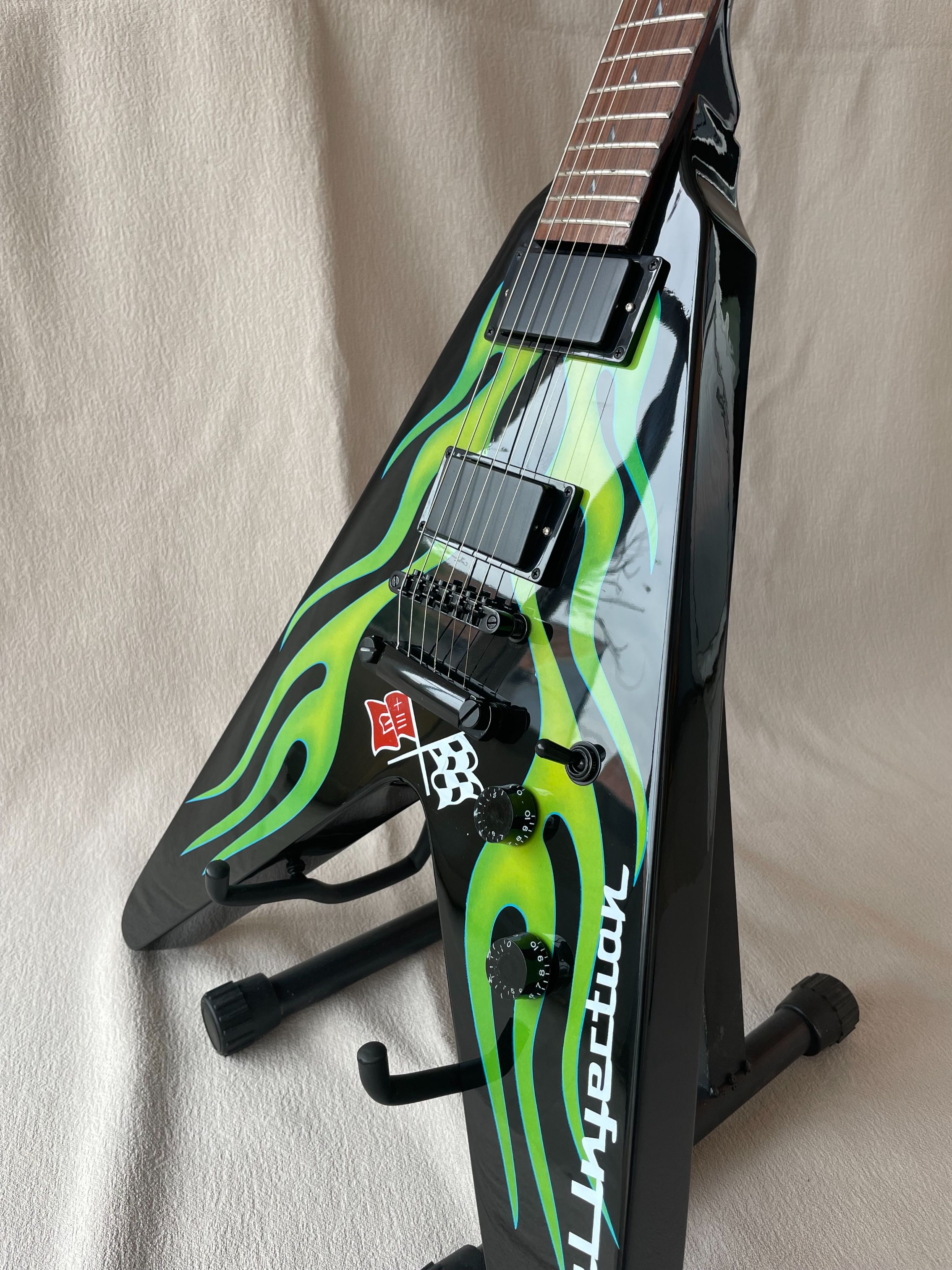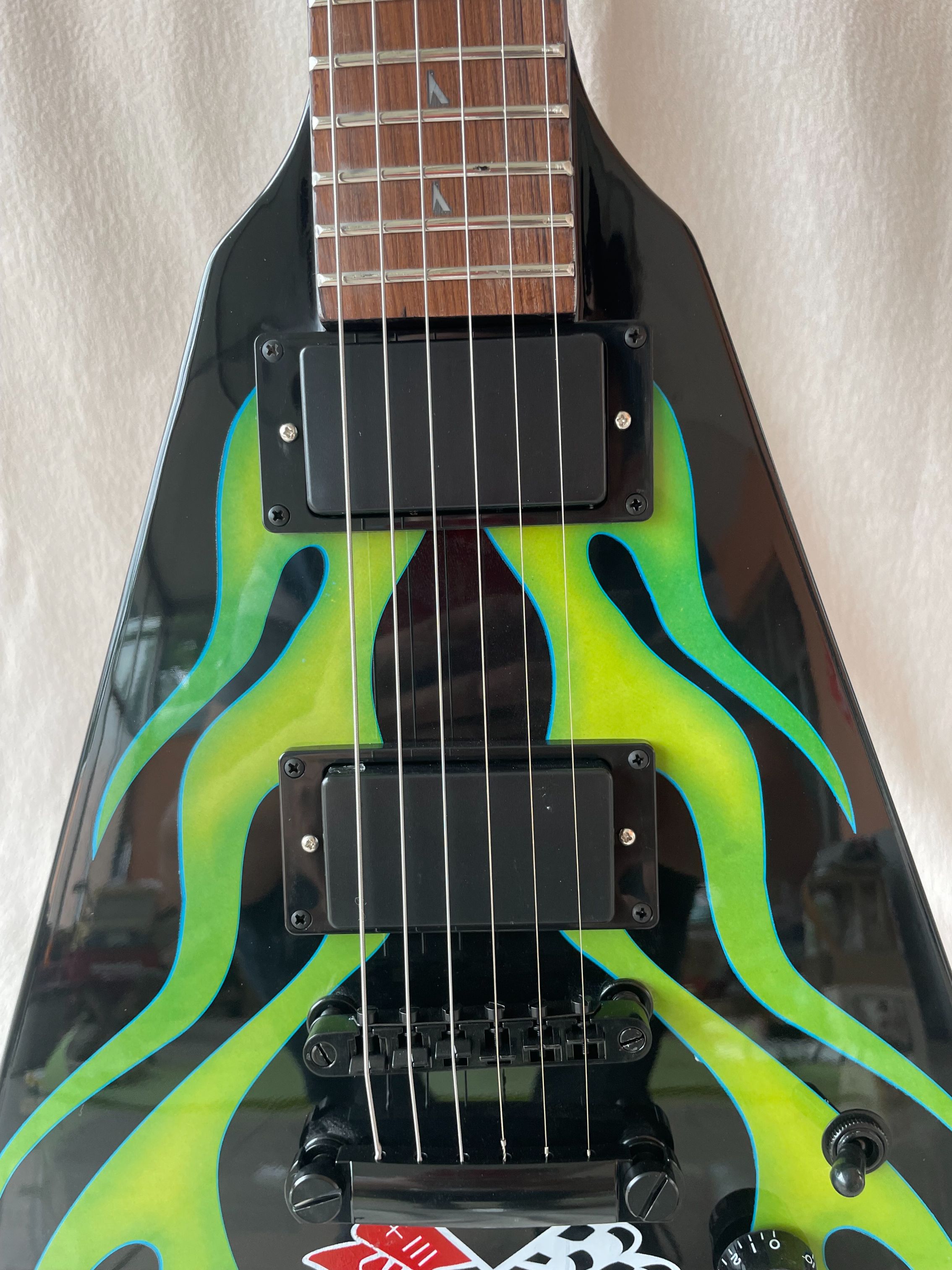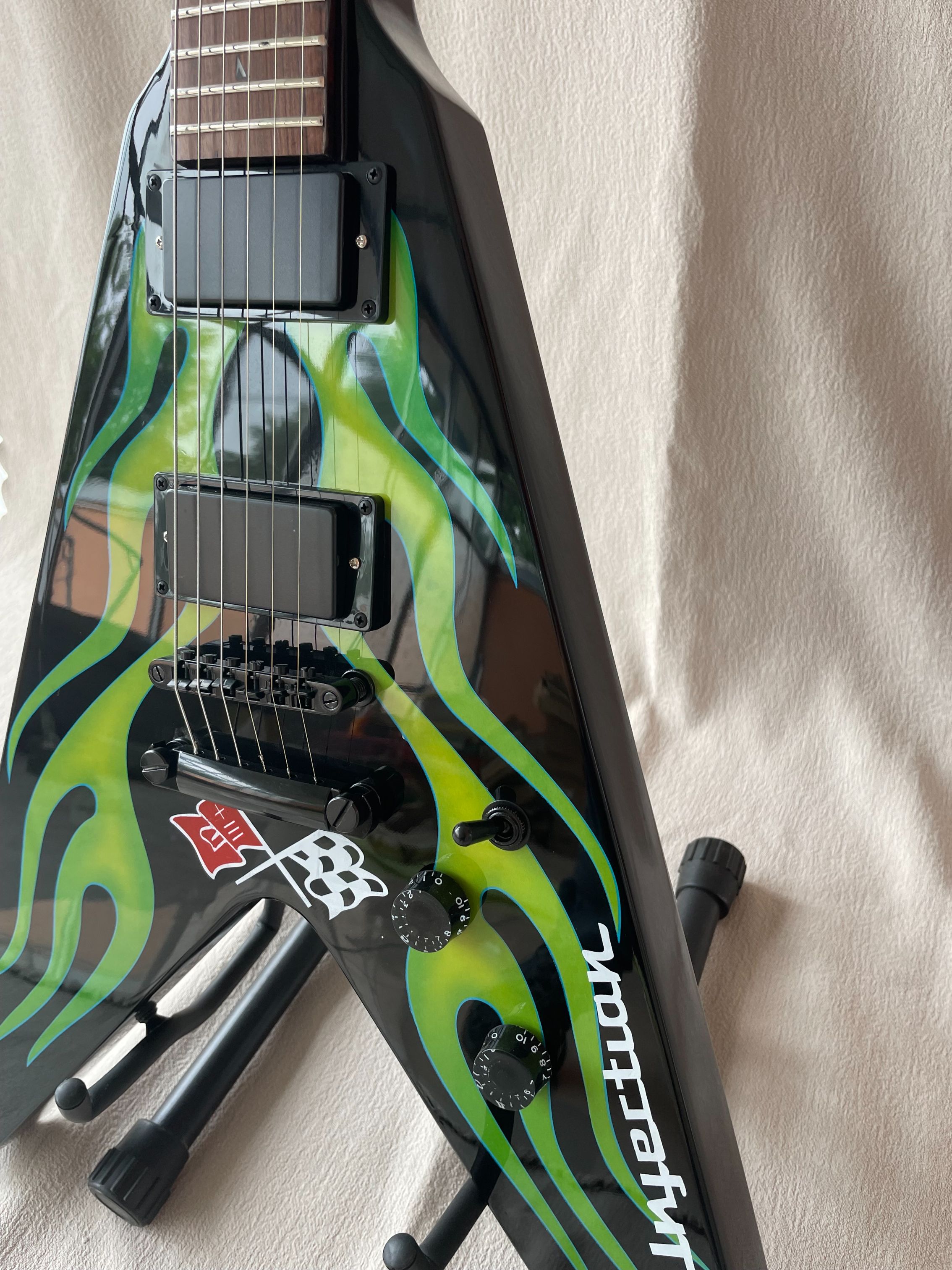 Flying V Electric Guitar Shaped Green Camouflage Finish Mahogany Body