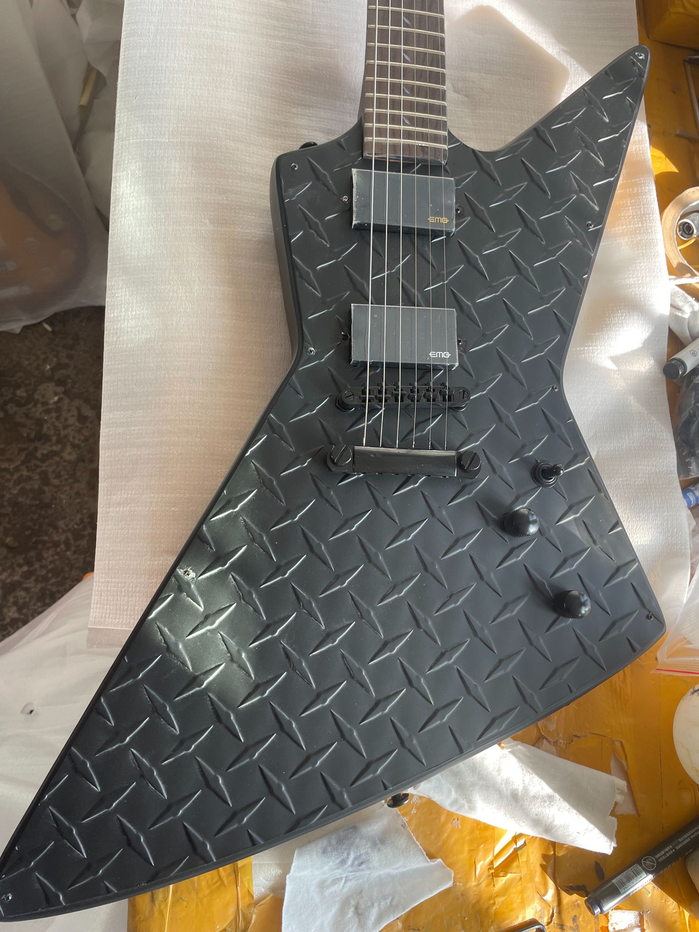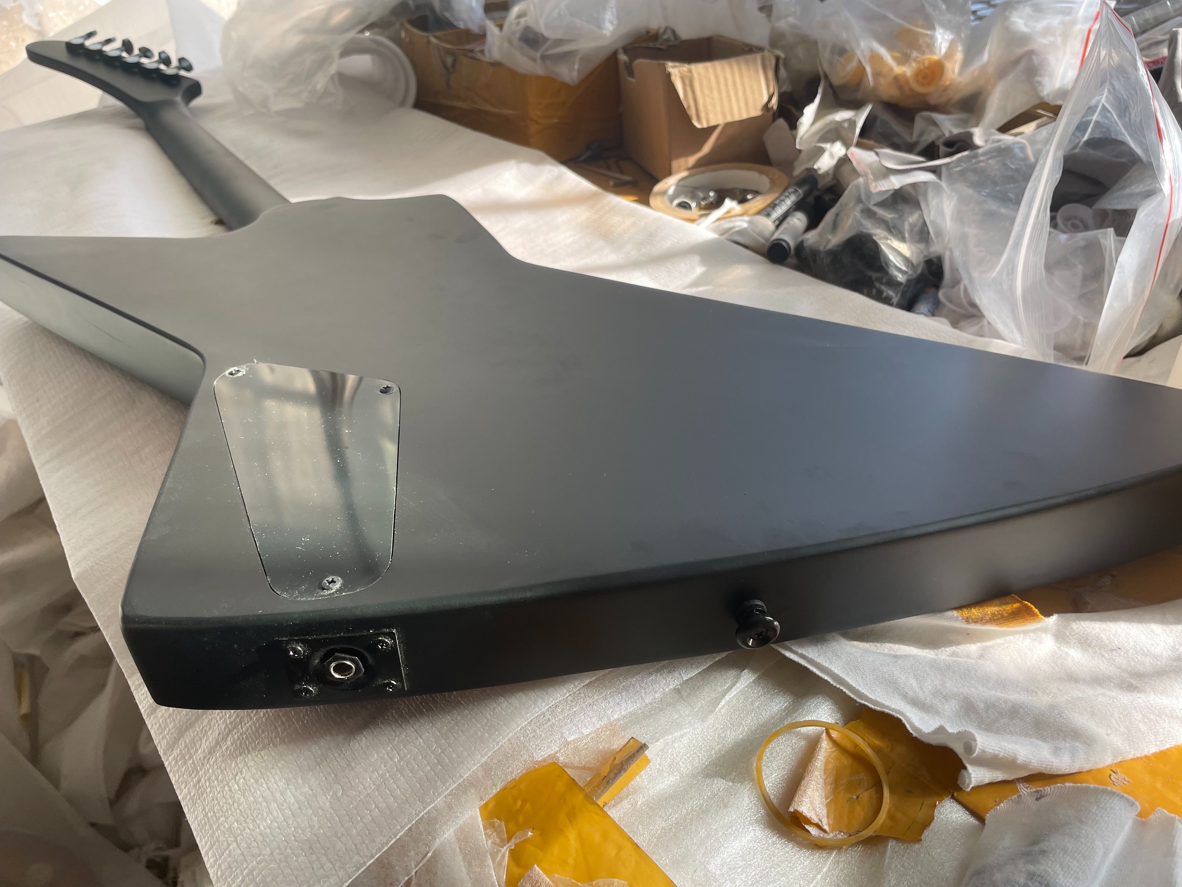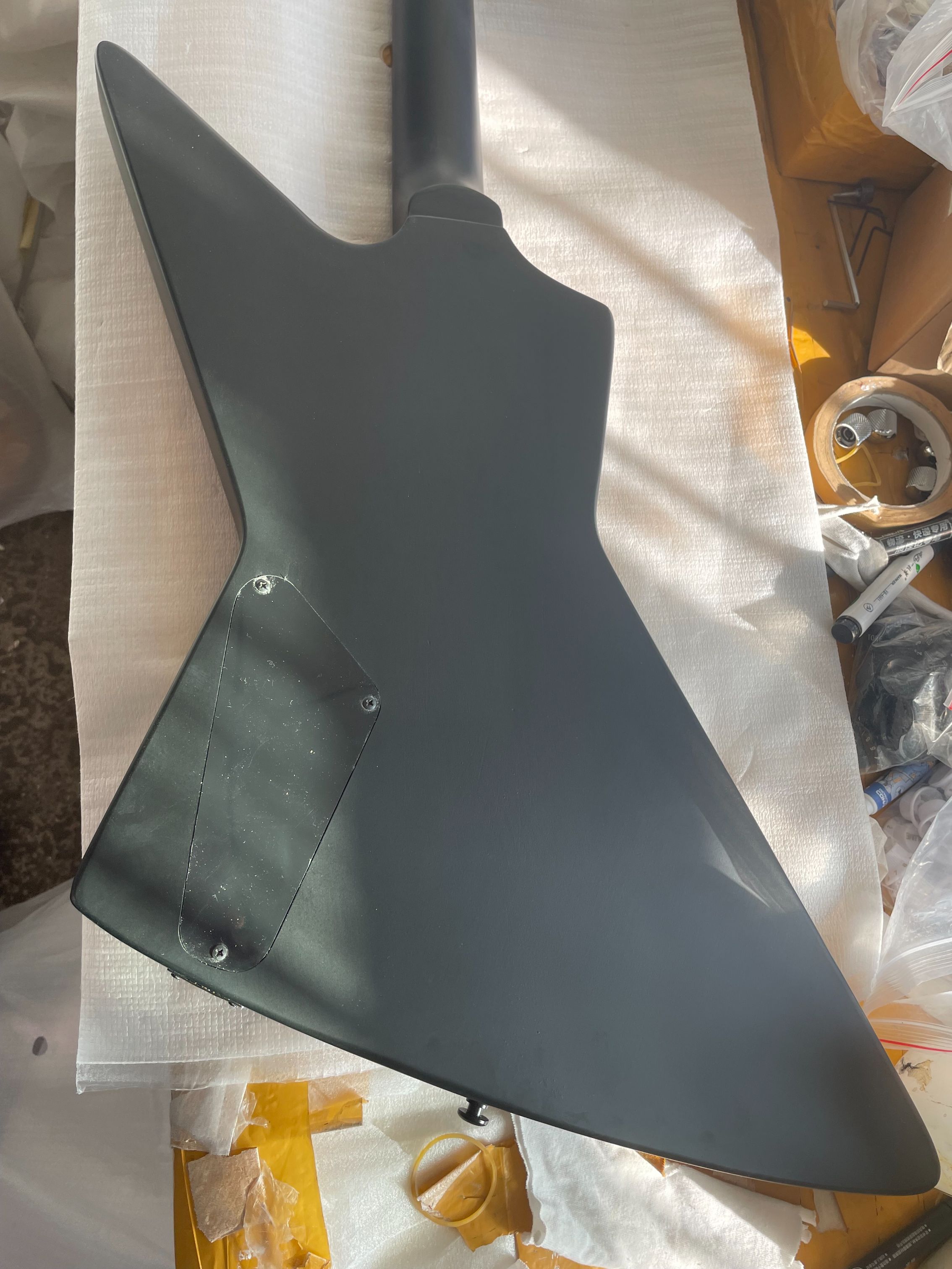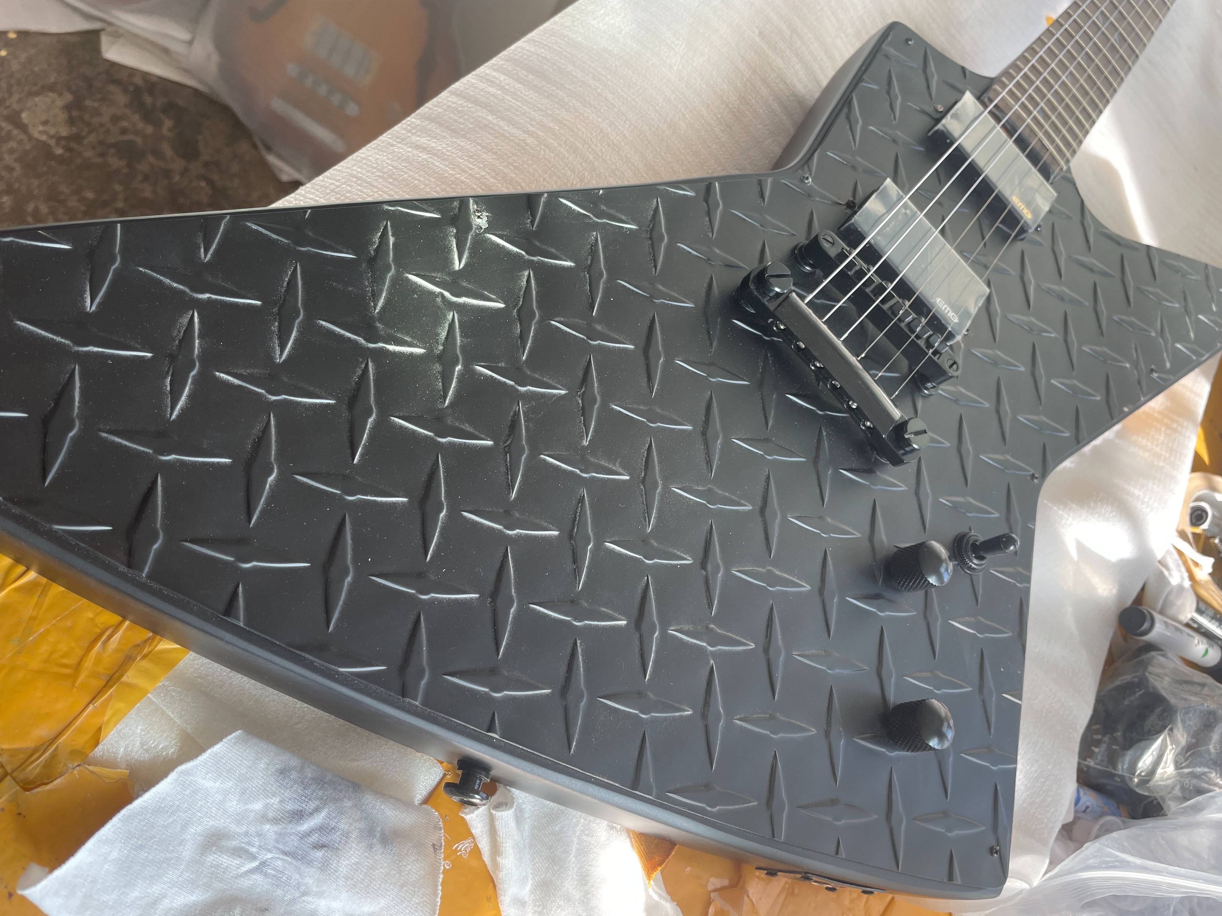 Black Explorer Electric Guitar Rosewood Fingerboard EMG Pickup Fingerboard Snake Inlaid