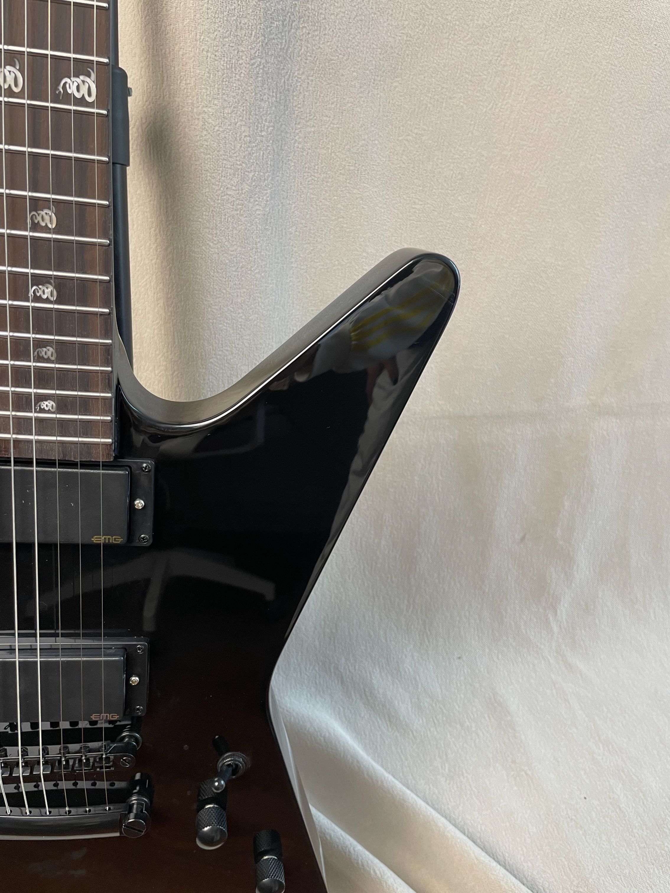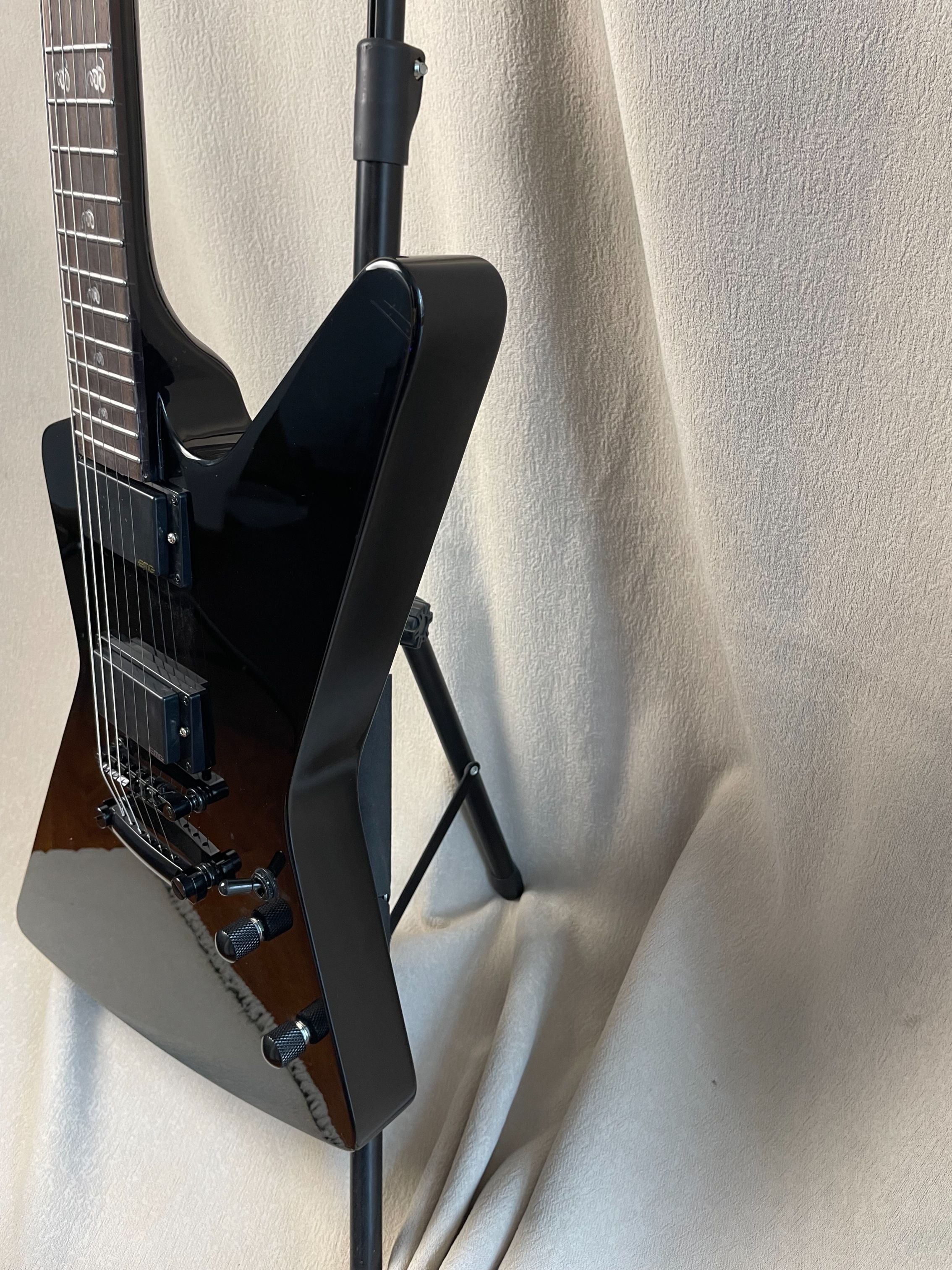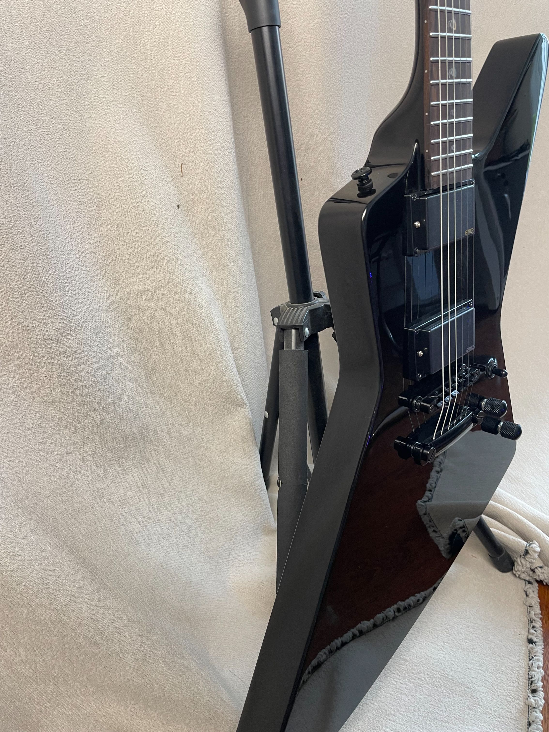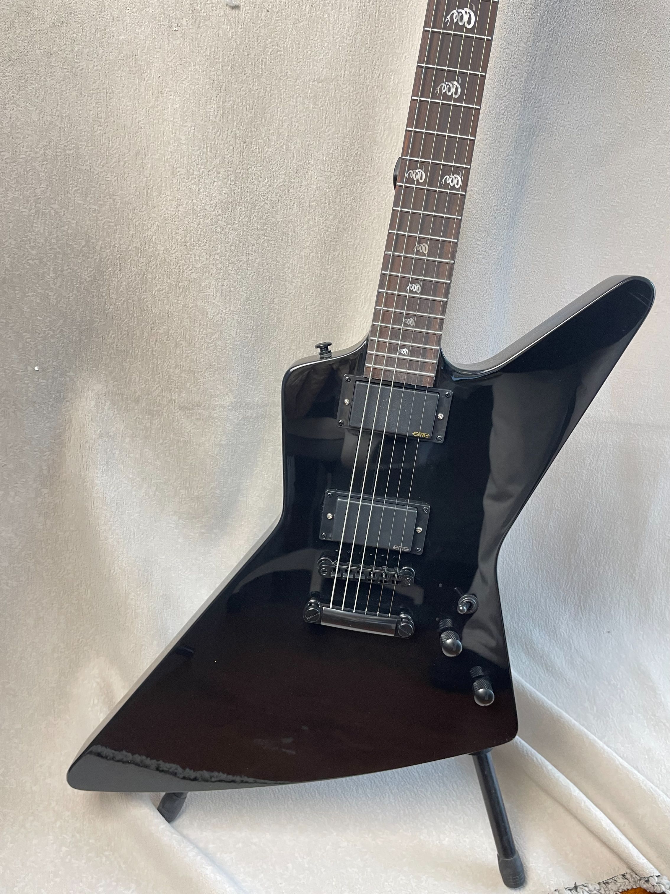 Black Explorer Electric Guitar Rosewood Fingerboard EMG Pickup Fingerboard Snake Inlaid