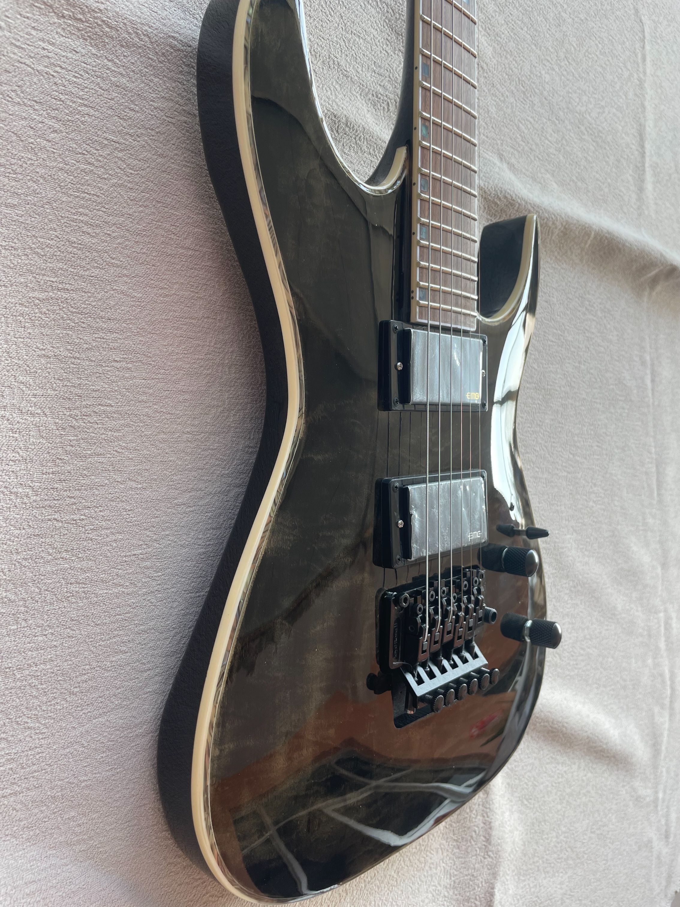 Custom Transparent Black Double Shake Electric Guitar Water Ripple Veneer Rosewood Fingerboard