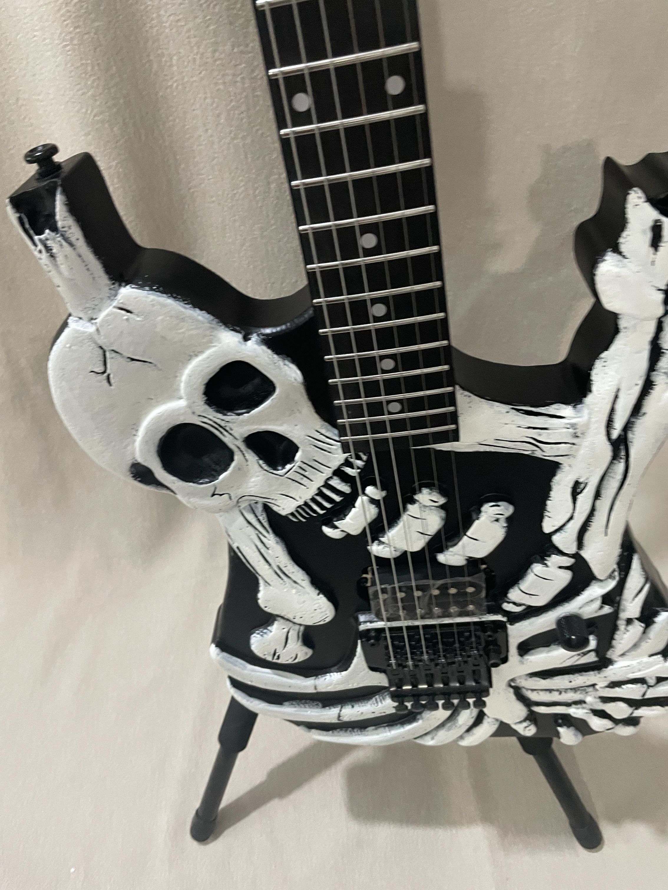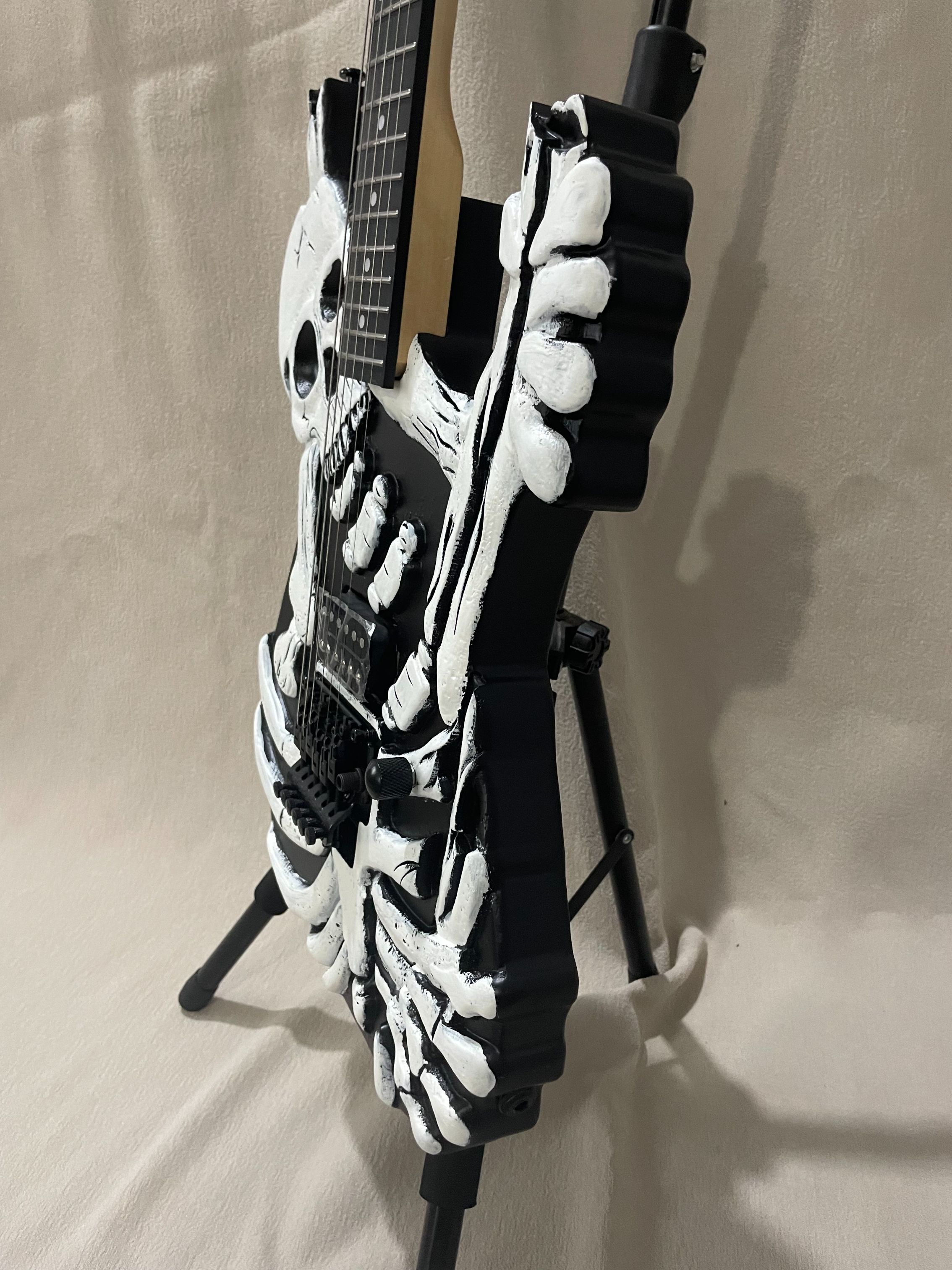 Mr Scary George Lynch Skull&Bones Electric Guitar J Frog Black&White Hand Carved