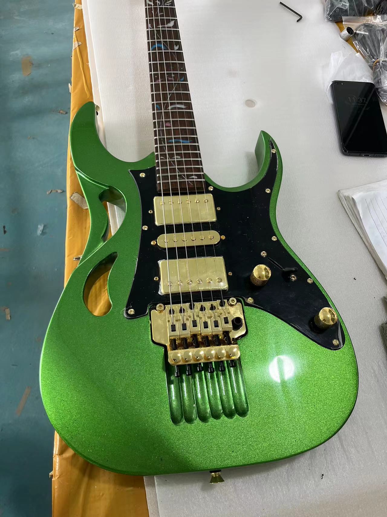 "24-Fret Electric Guitar, Freudian Rose Tremolo Bridge, Gold-Tone Hardware "