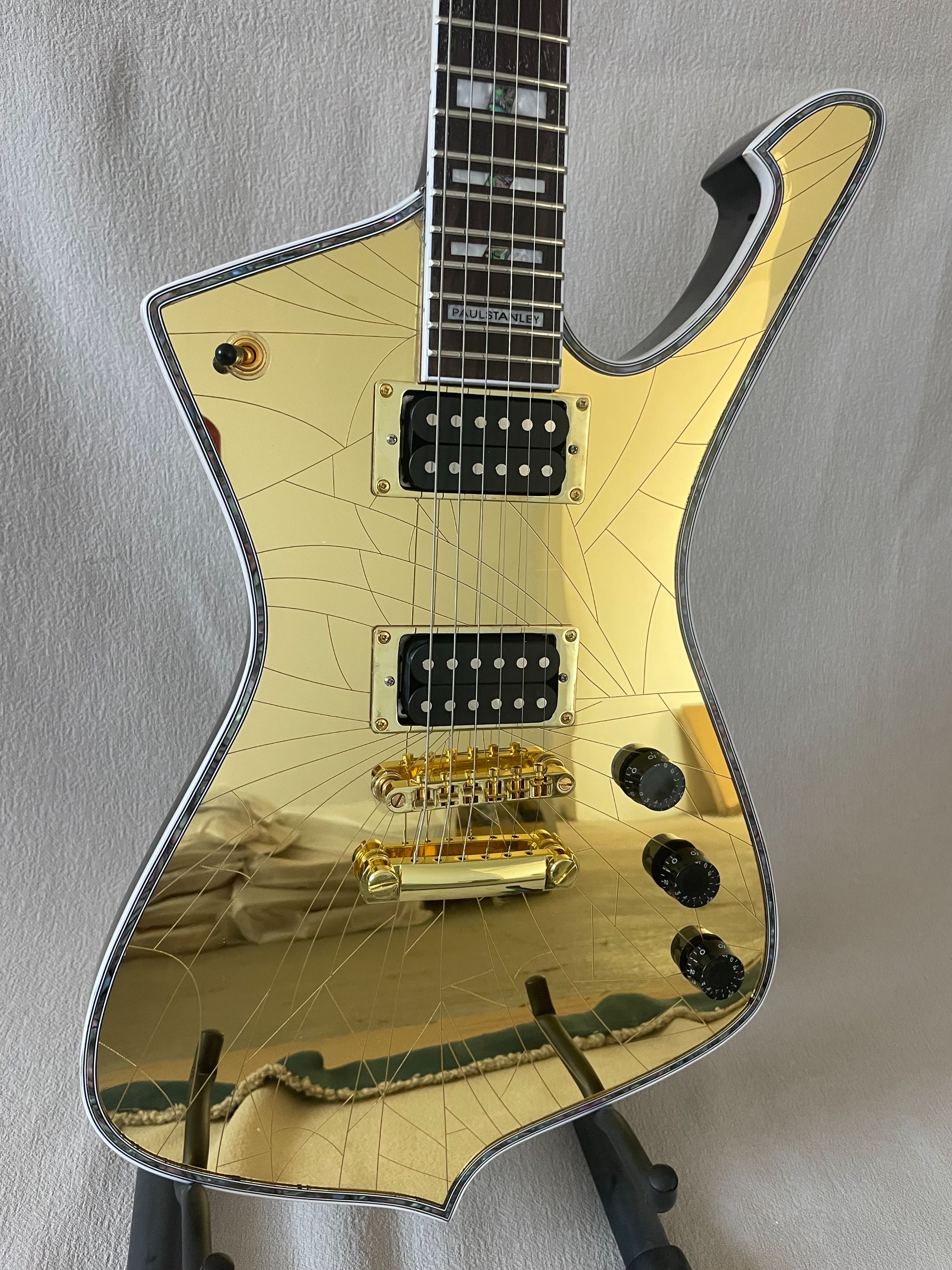New Iceman Paul Stanley Electric Guitar Yellow Super Cool Cracked Mirror