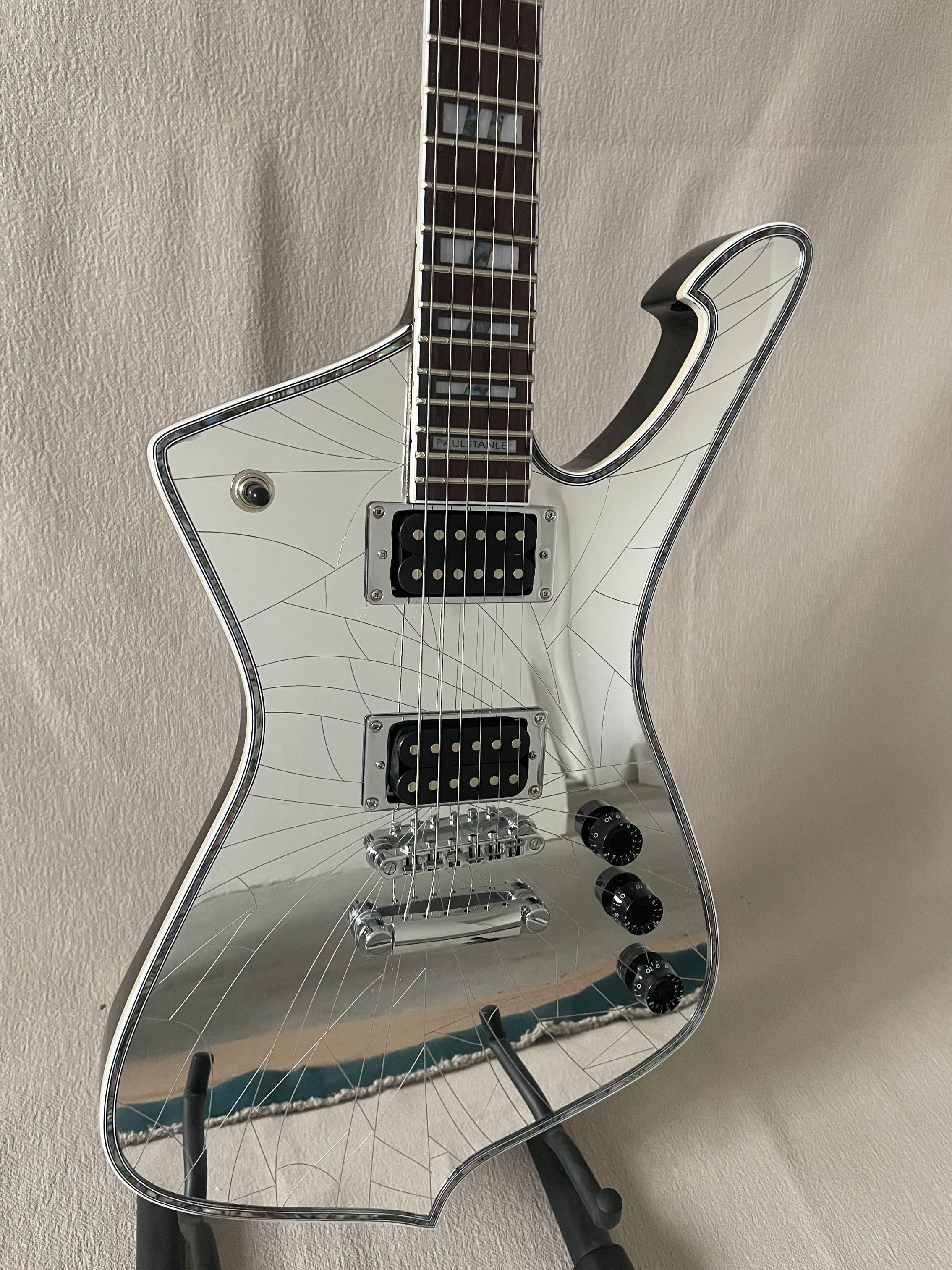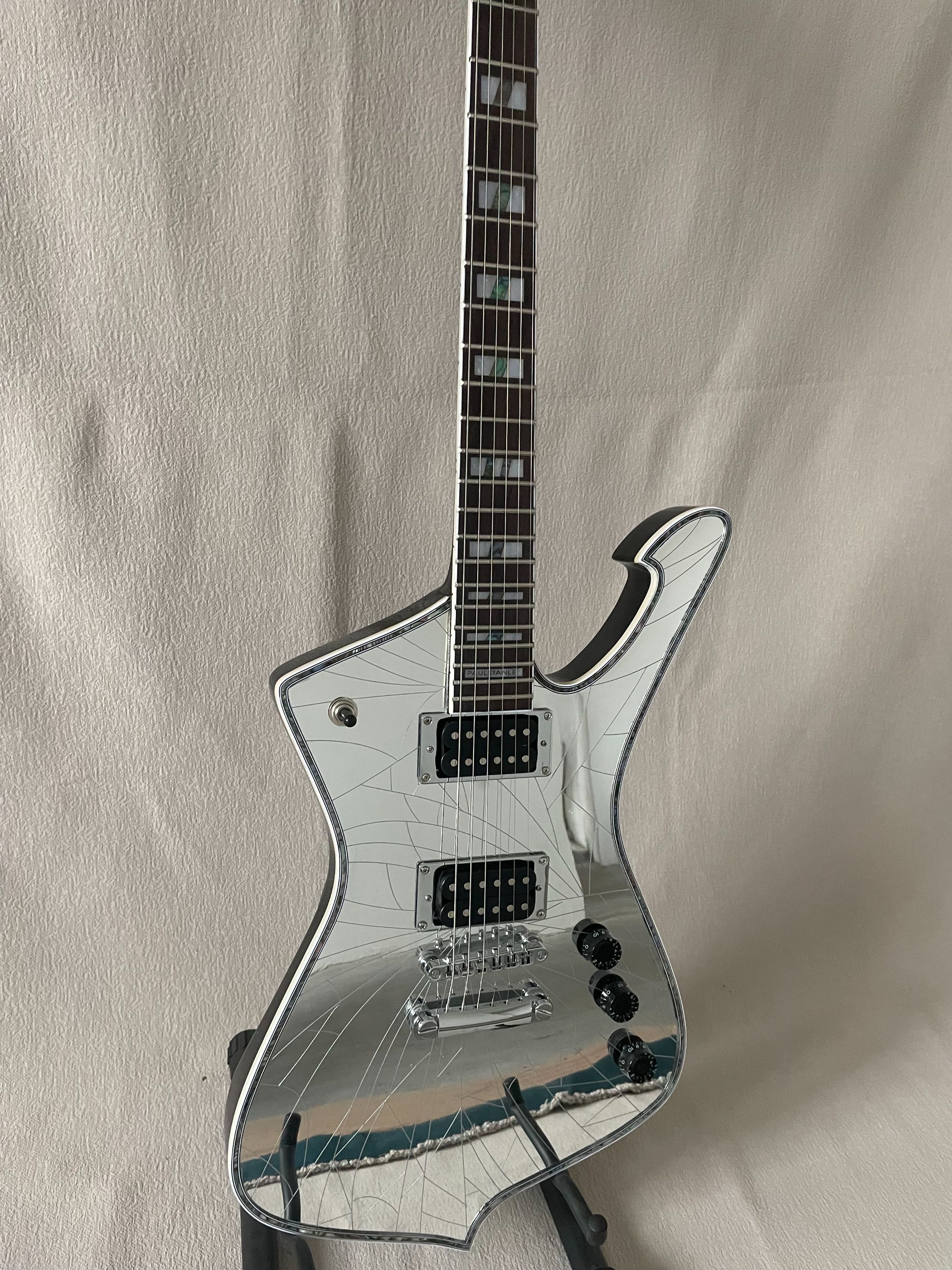 New Iceman Paul Stanley Electric Guitar Silver Super Cool Cracked Mirror