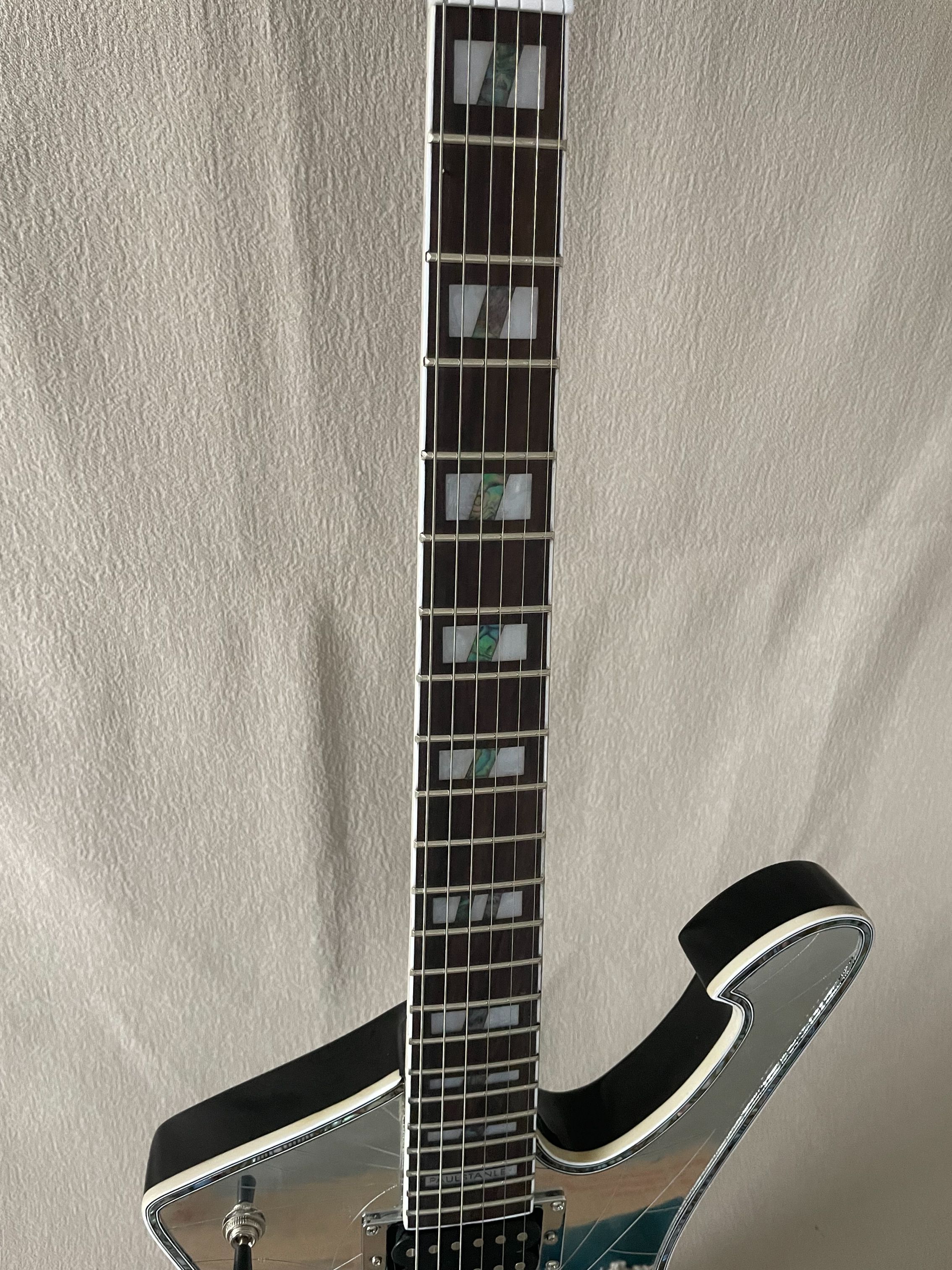 Iceman Paul Stanley Use Style Black Electric Guitar Pickguard Abalone Body Binding Chrome Hardware