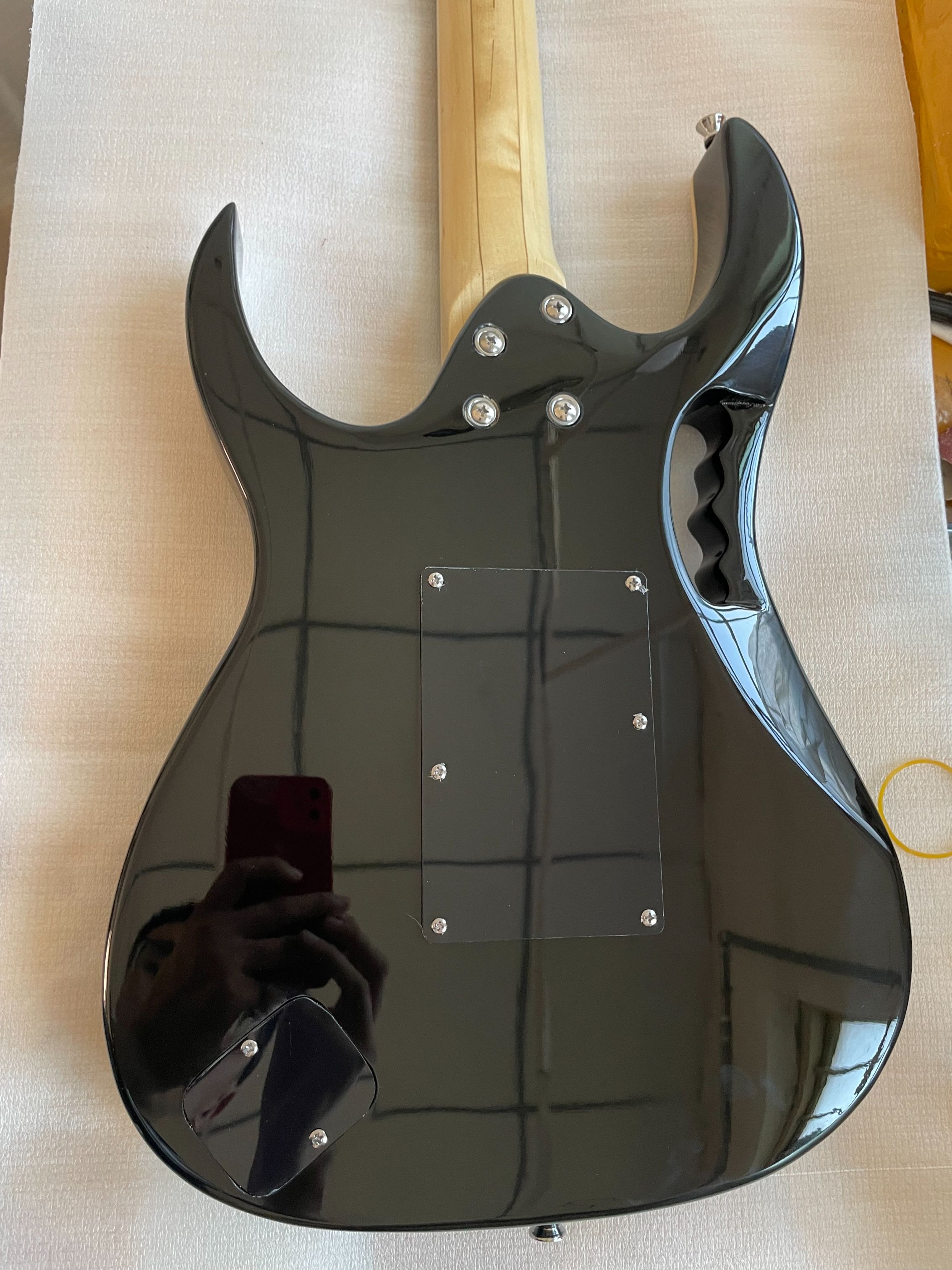"24-Fret Black Electric Guitar Floyd Rose Tremolo Bridge With Silver Hardware And Aluminum Veneer "