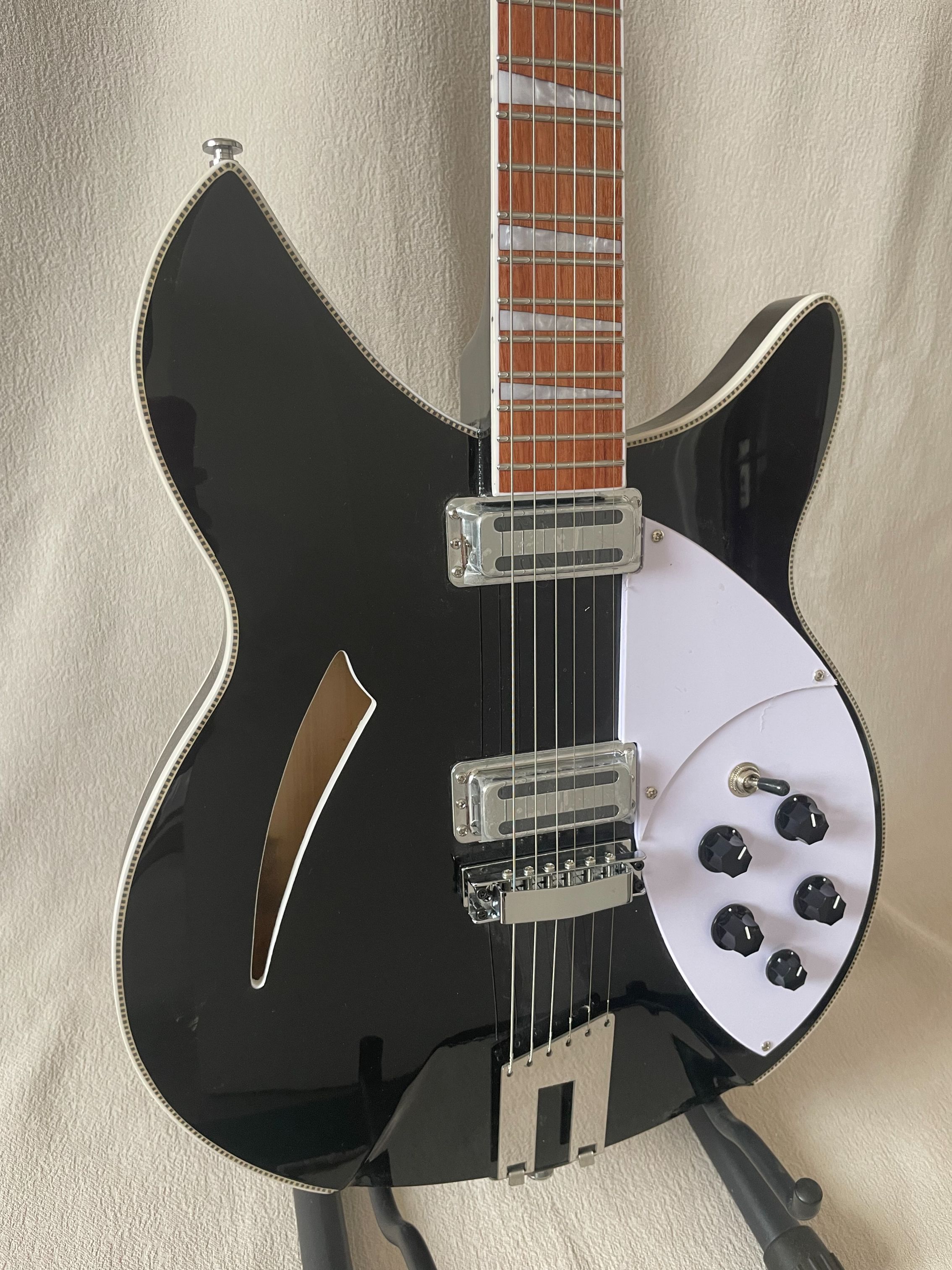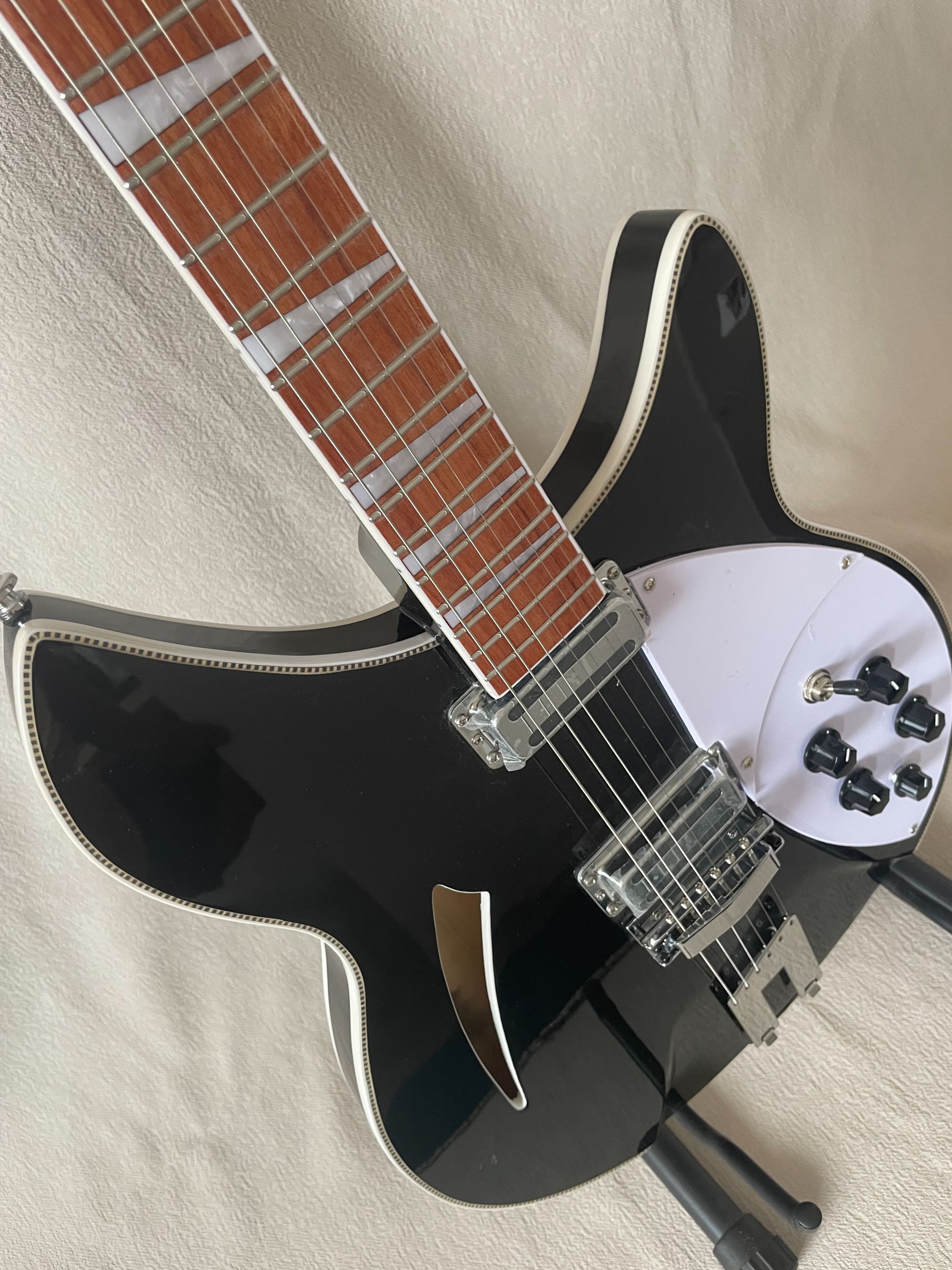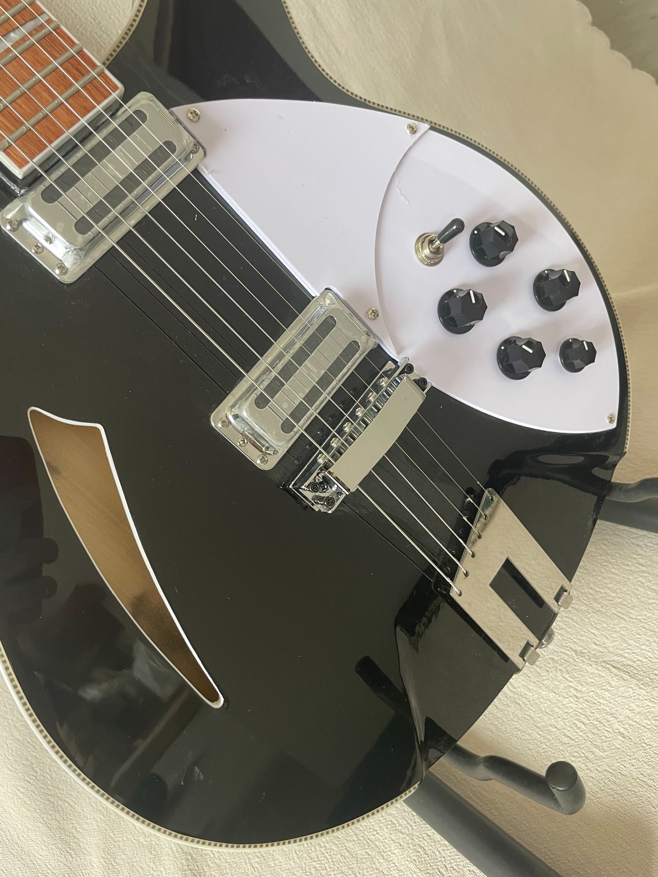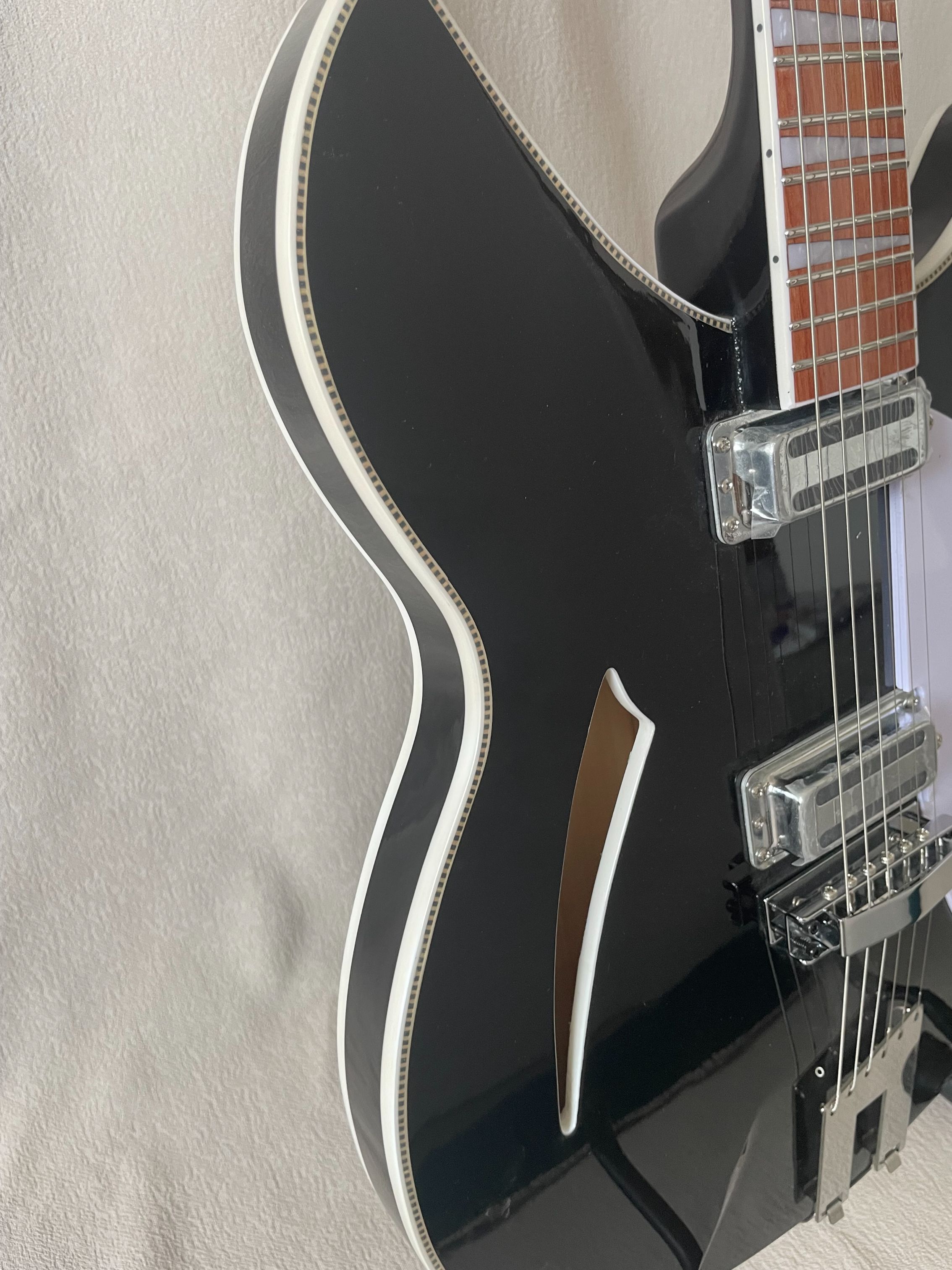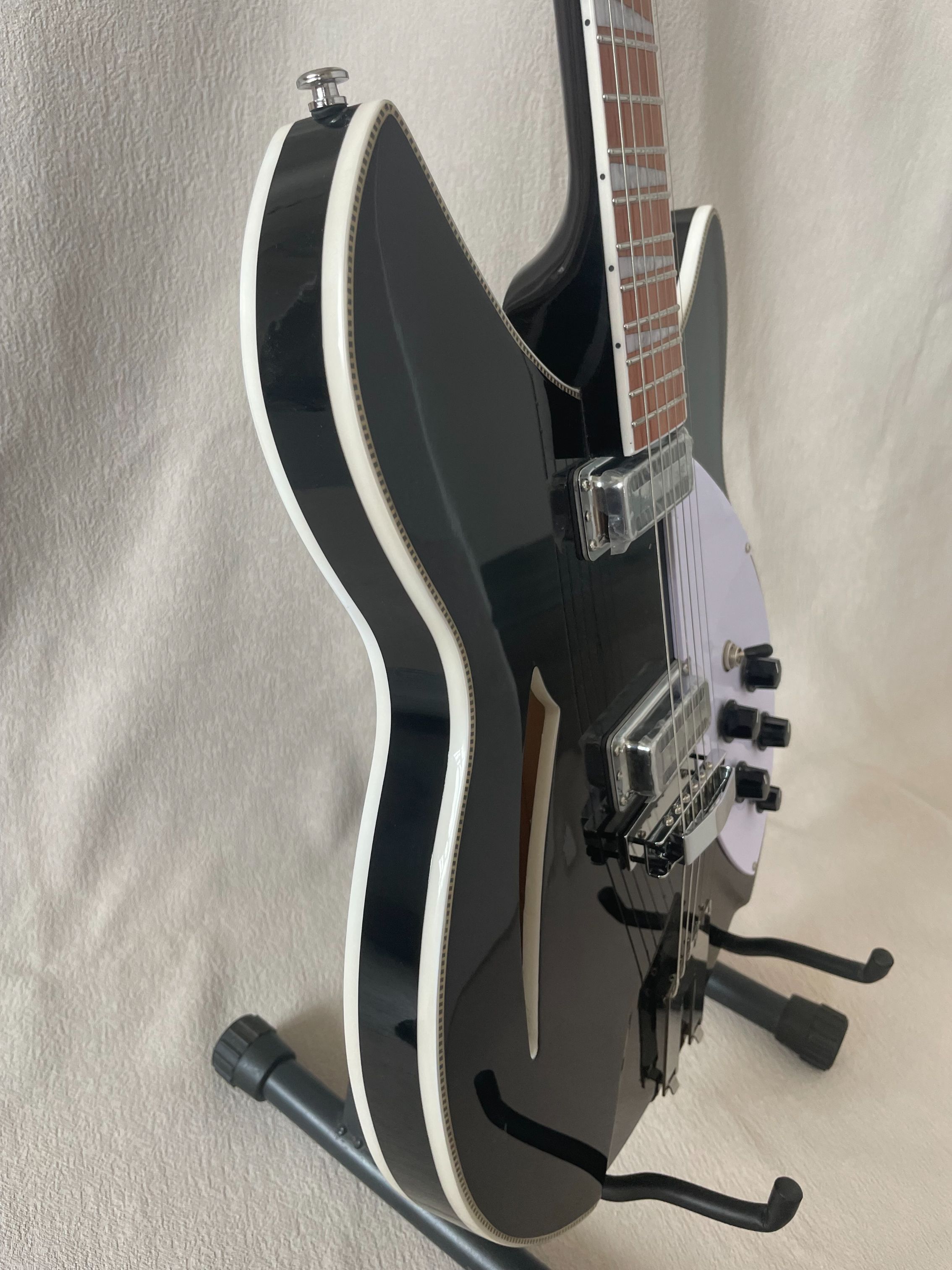 Dual Input Jack Semi-Hollow Body 360 Electric Guitar 6-String Trapeze Tailpiece Black