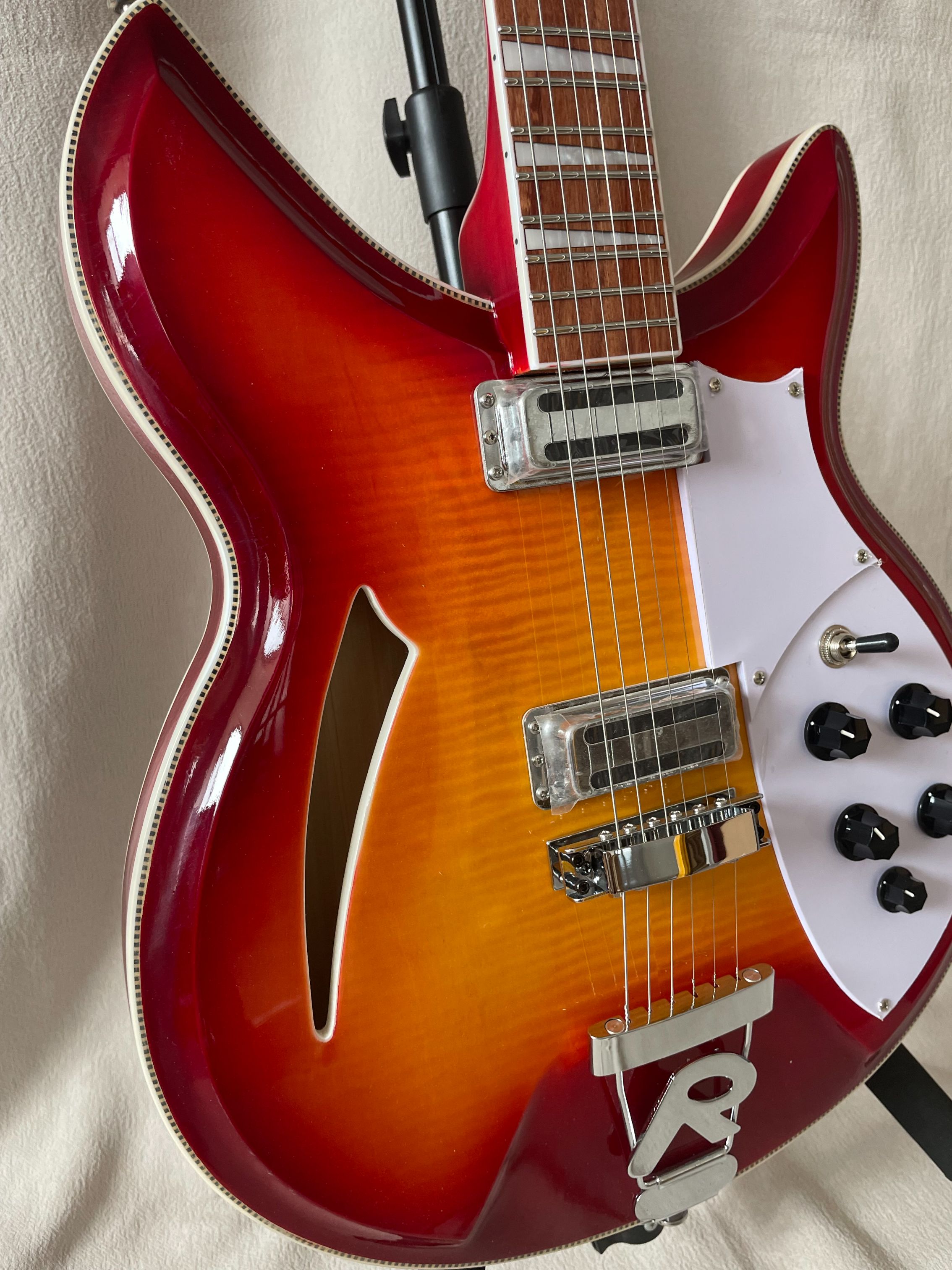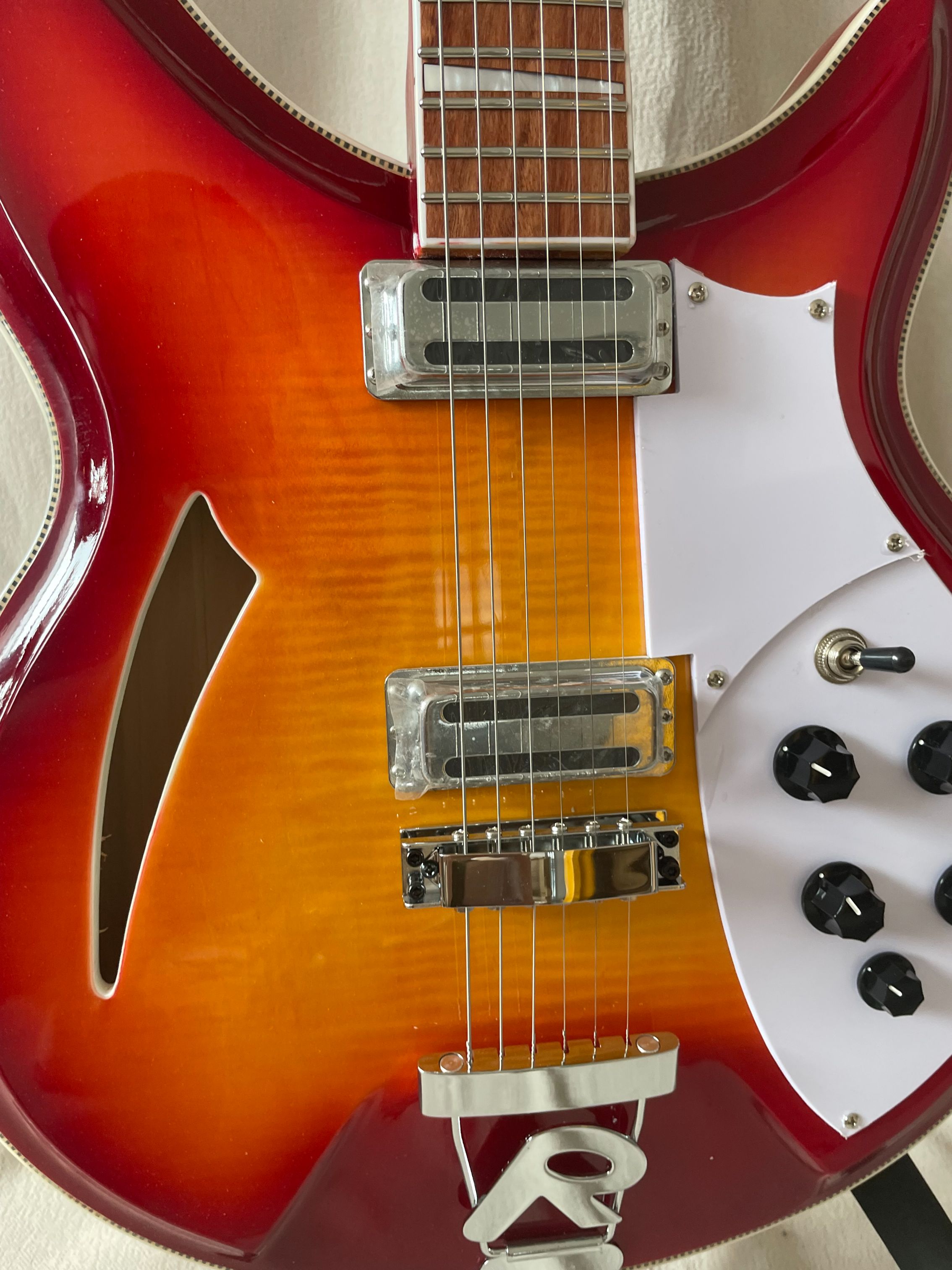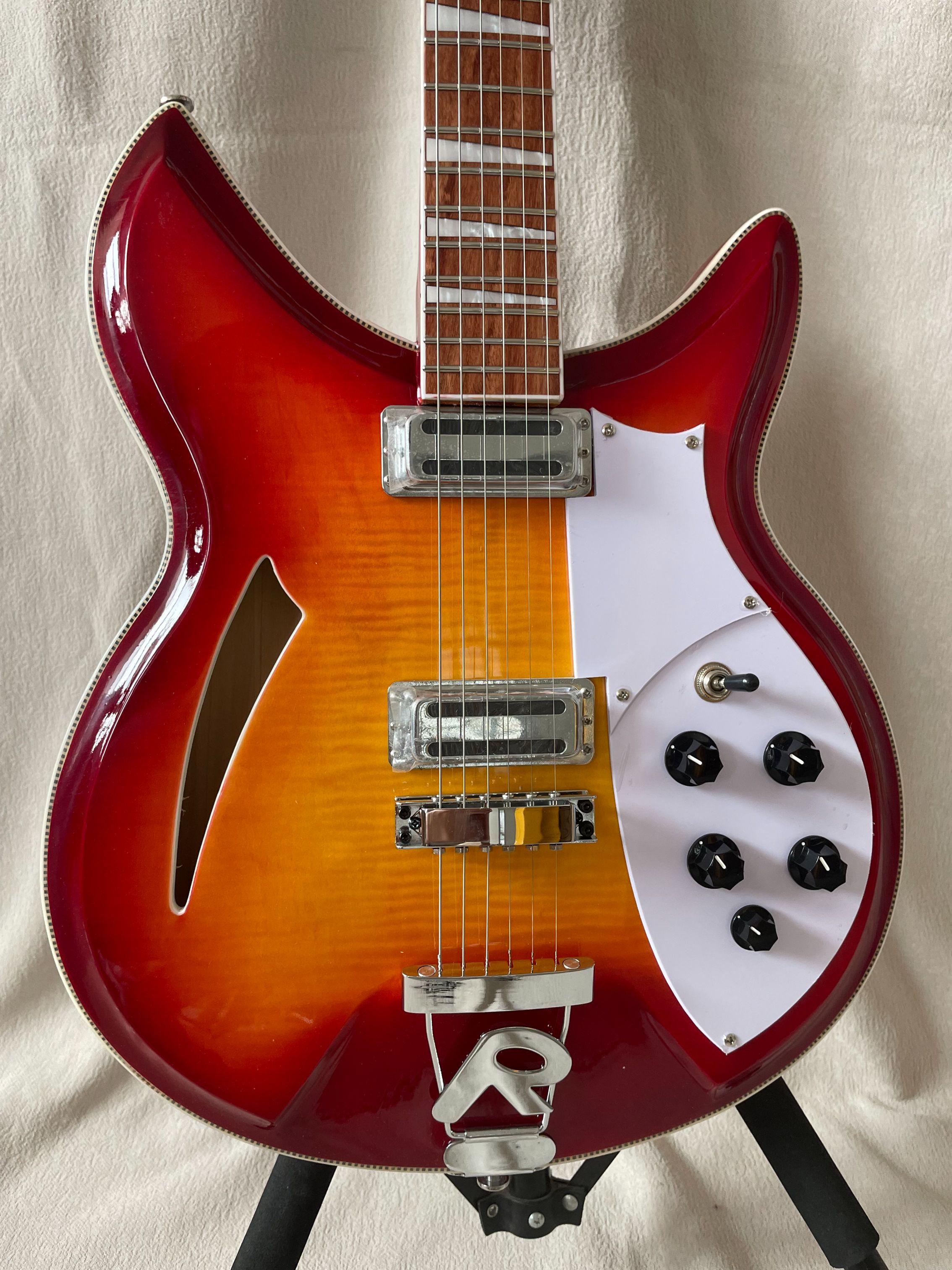 Custom 381 Electric Guitar With Flame Maple Top Semi-Hollow Body 2 Toaster Ric Pickup