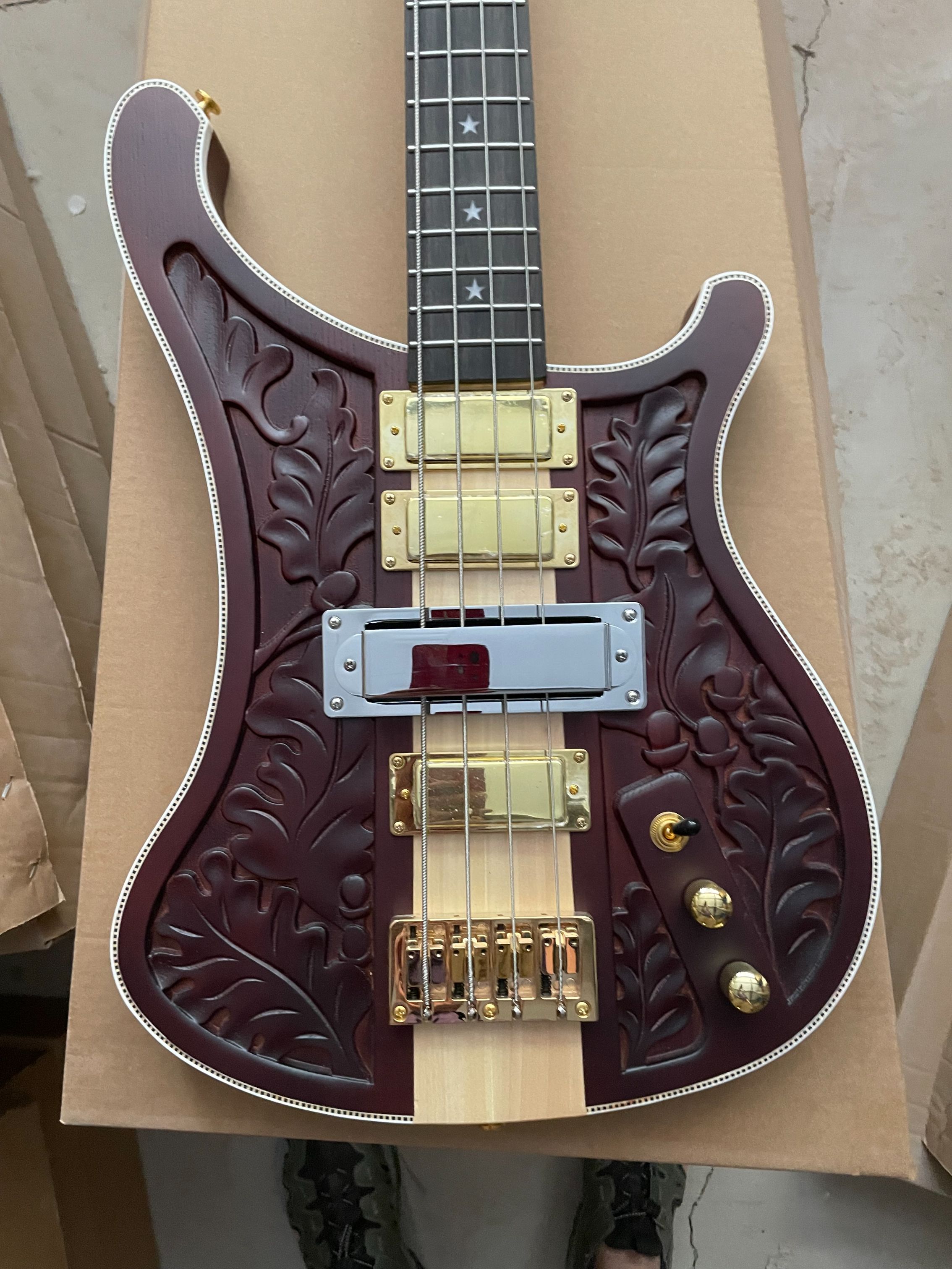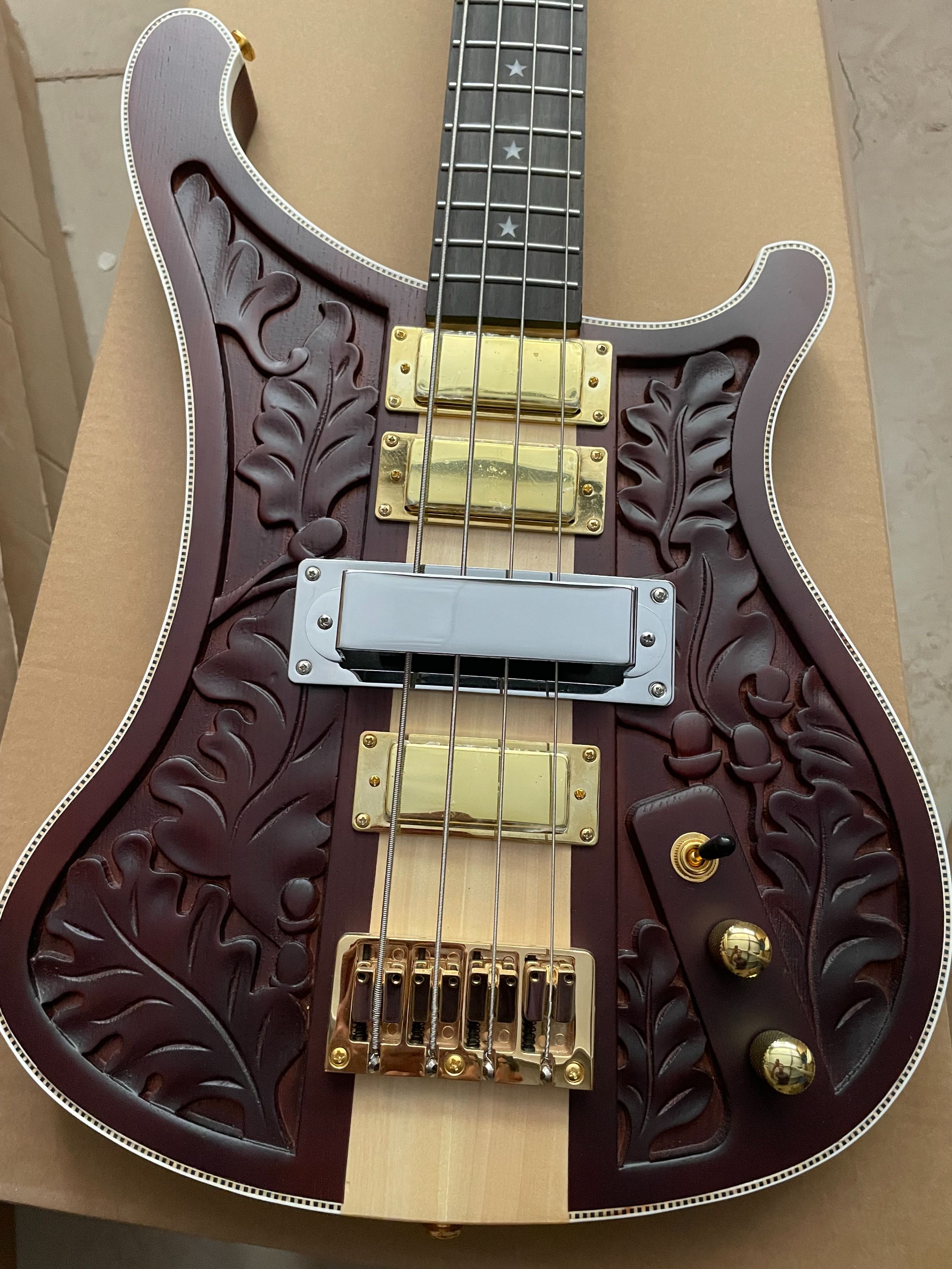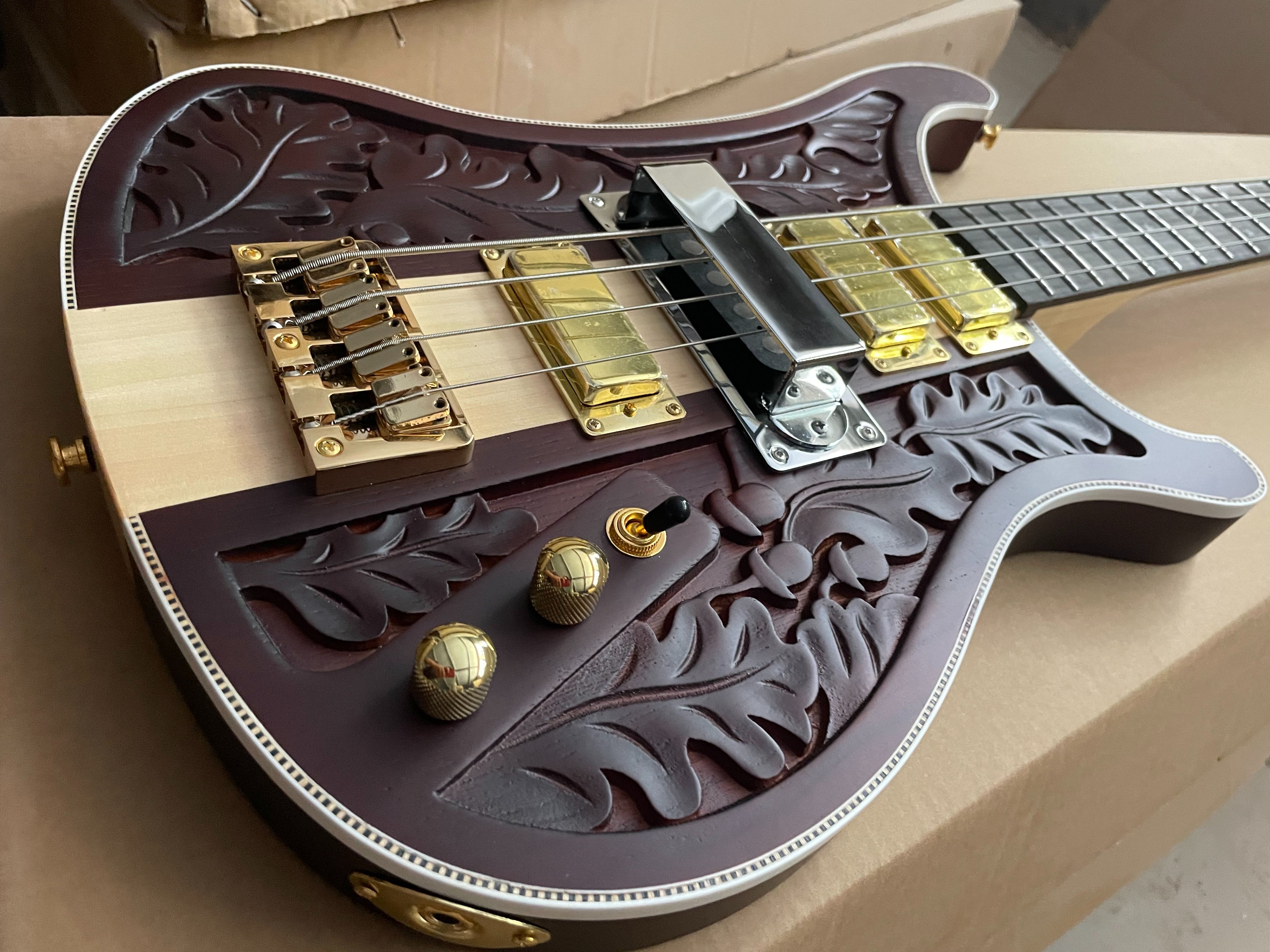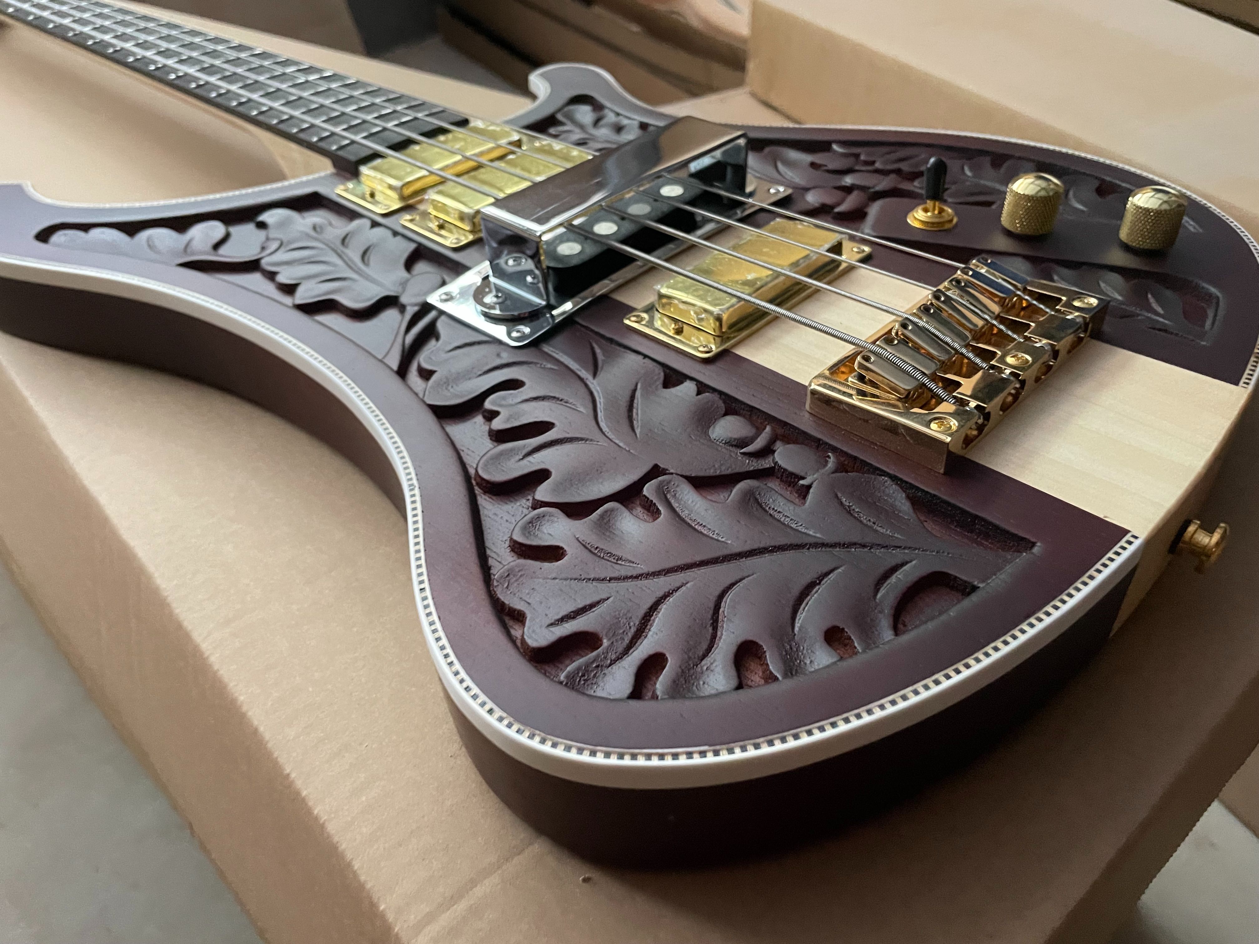 High Quality Custom Matte Carved 4003 Electric Bass Guitar 4 Strings Neck Through Body Gold Hardware