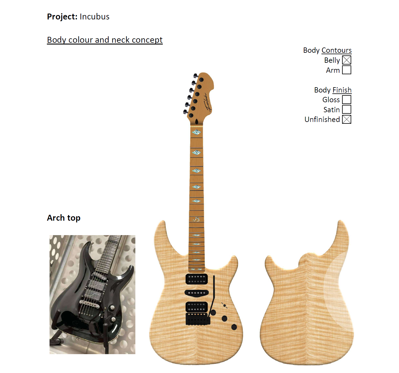Customize the Incubus neck as per your requirements. No body will be made and no accessories will be included.