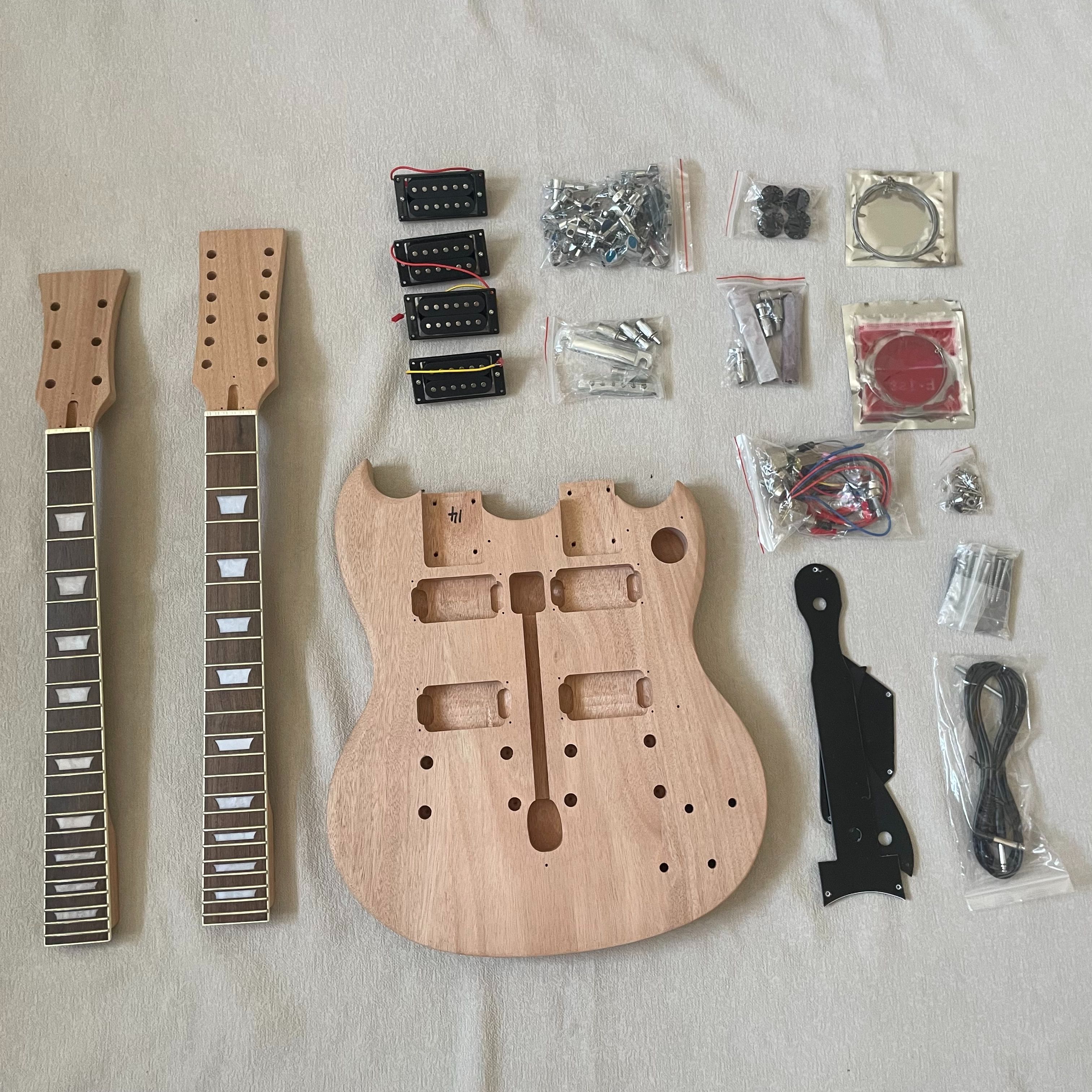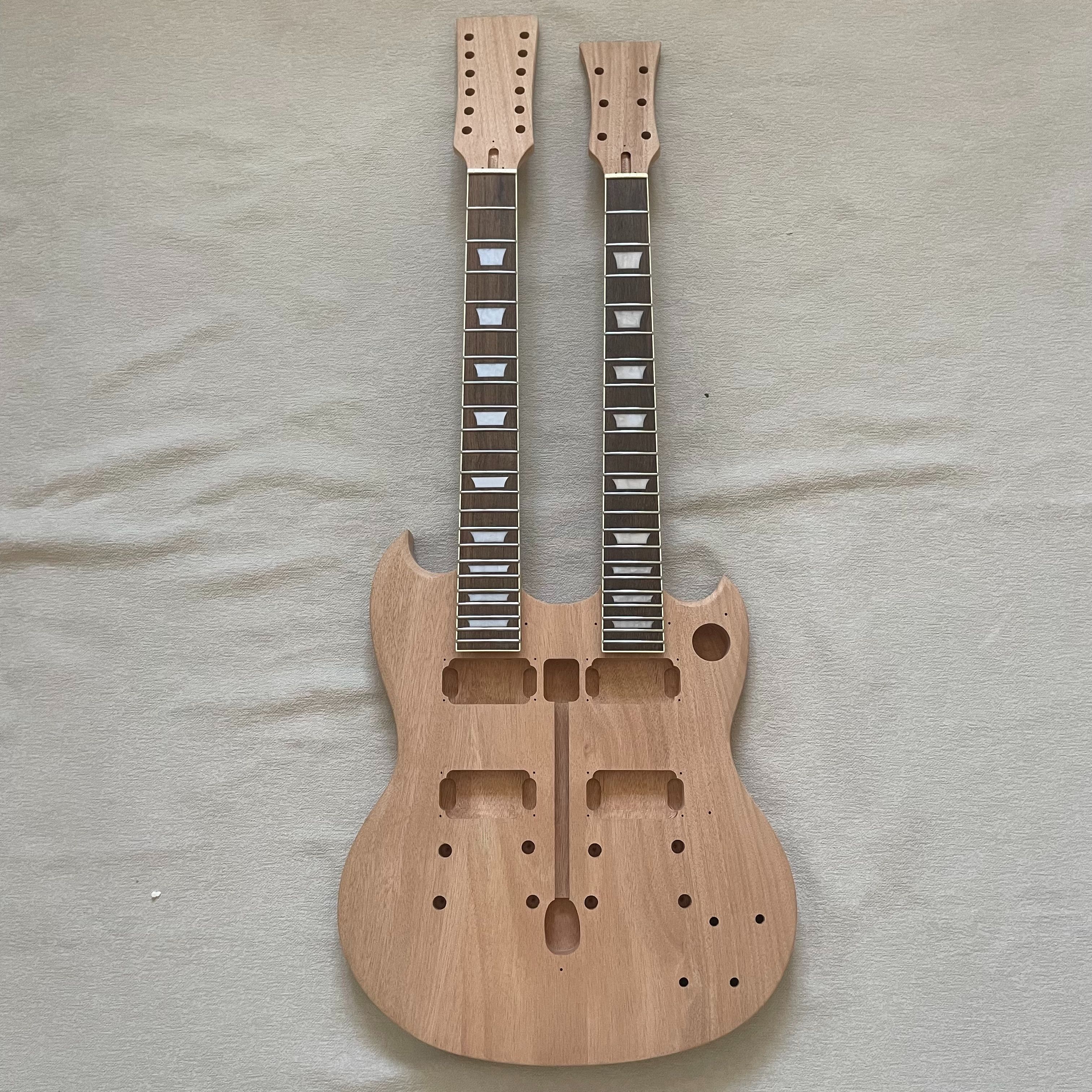 Double Neck DIY Electric Guitar Kit 12 String Mahogany Body Rosewood Fingerboard