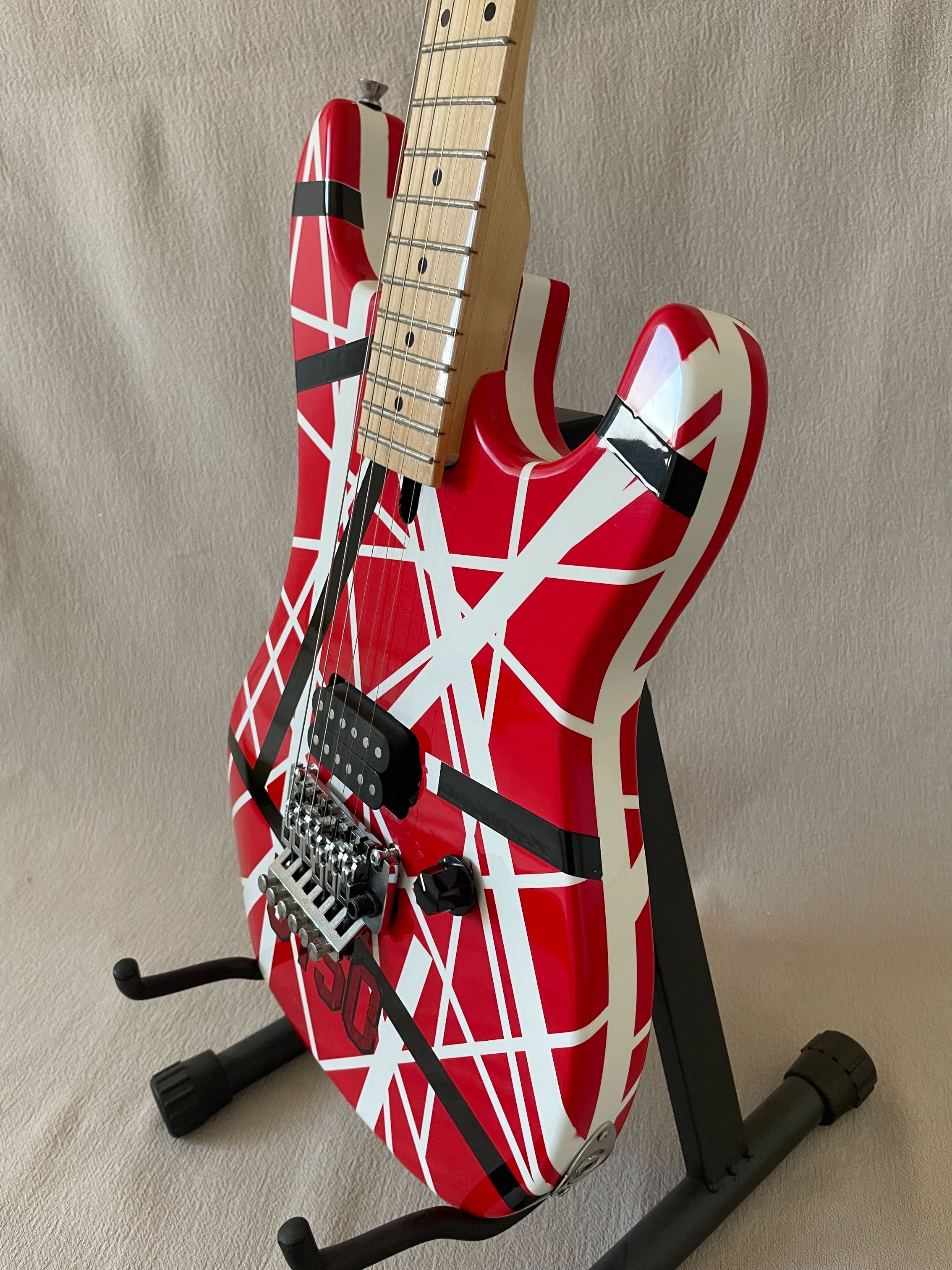 5150 White Stripe Red Electric Guitar Floyd Rose Tremolo Bridge, Locking Nut, Maple Neck & Fingerboard