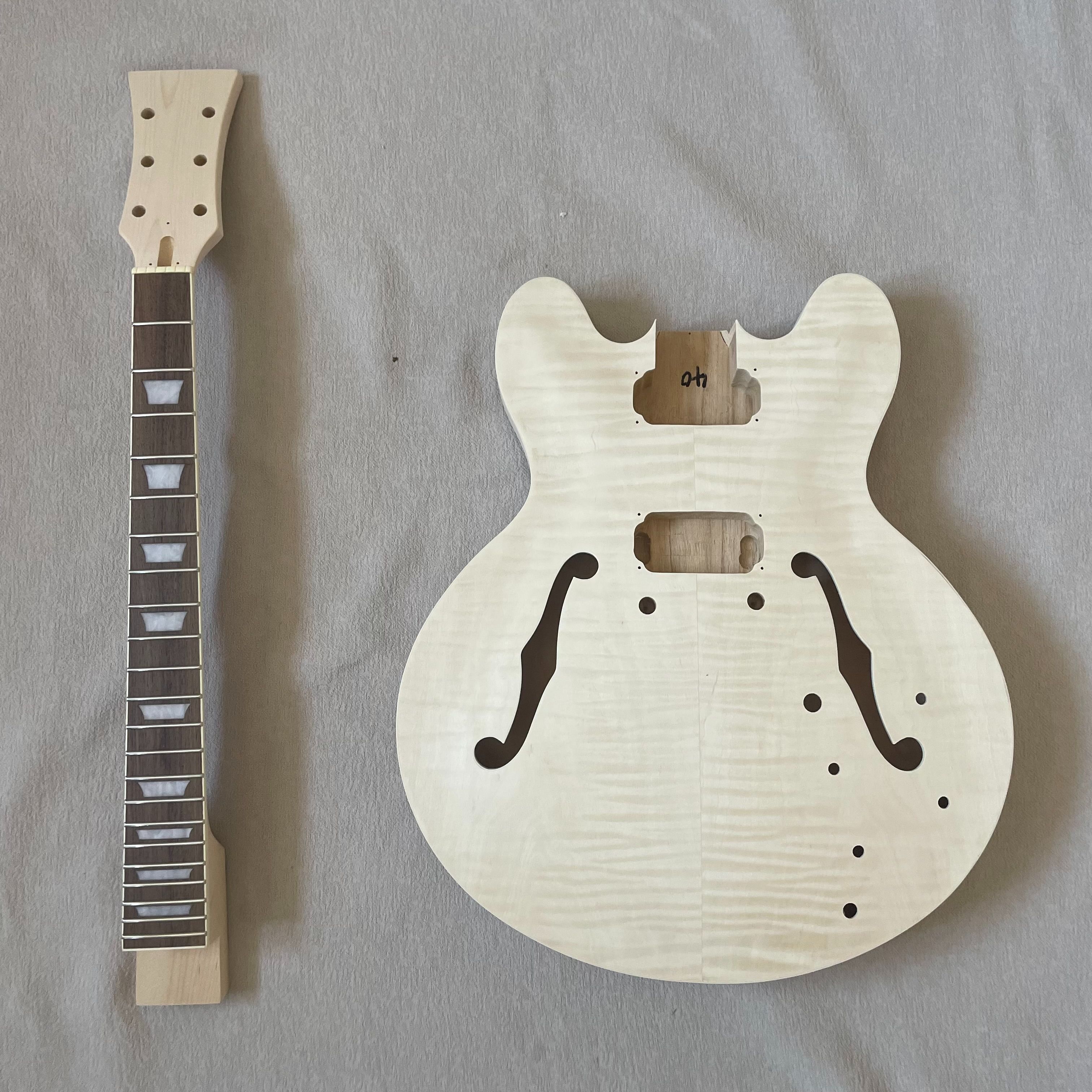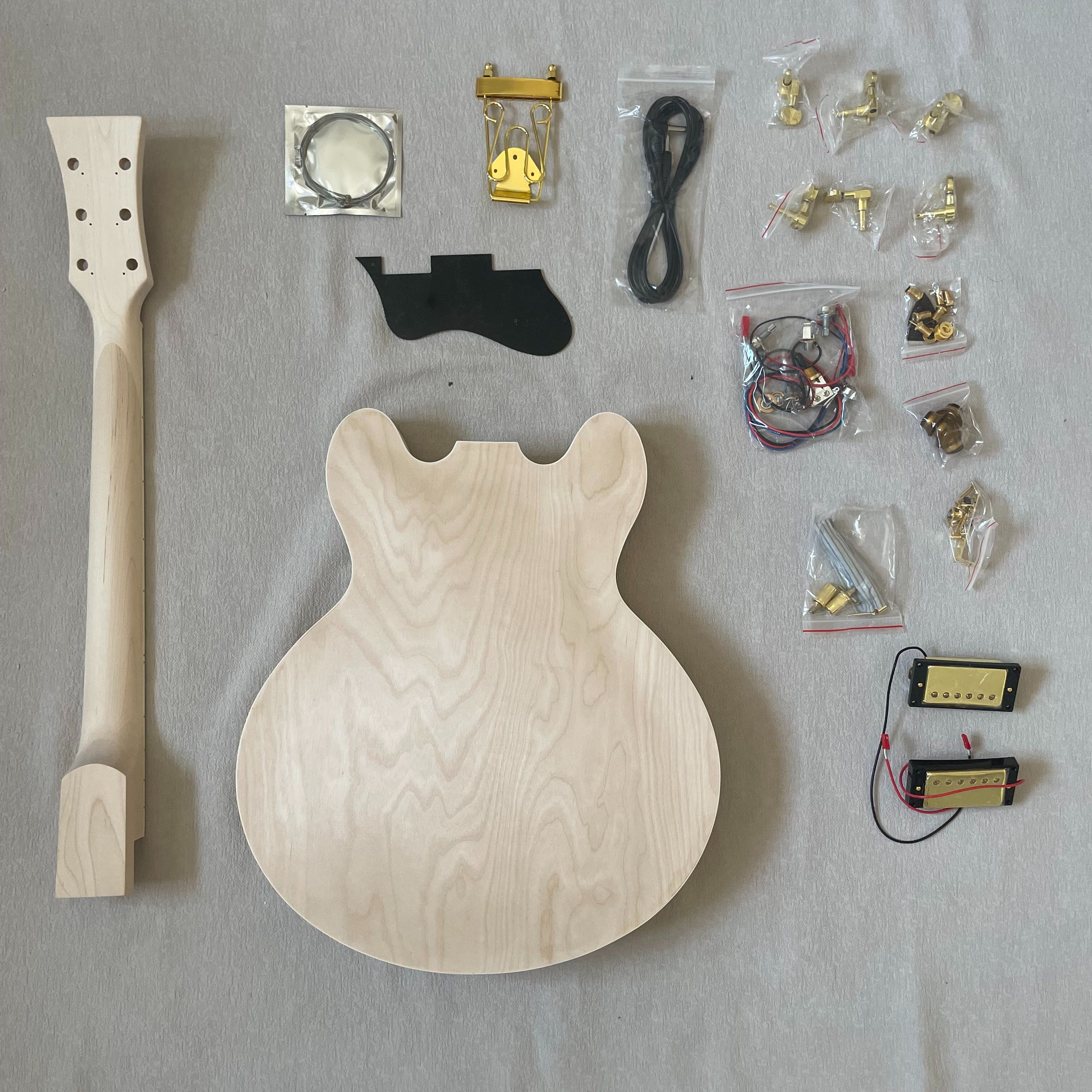 Diy Electric Guitar Kit F-Hole 335Jazz Hollow Gold Accessories Maple Veneer