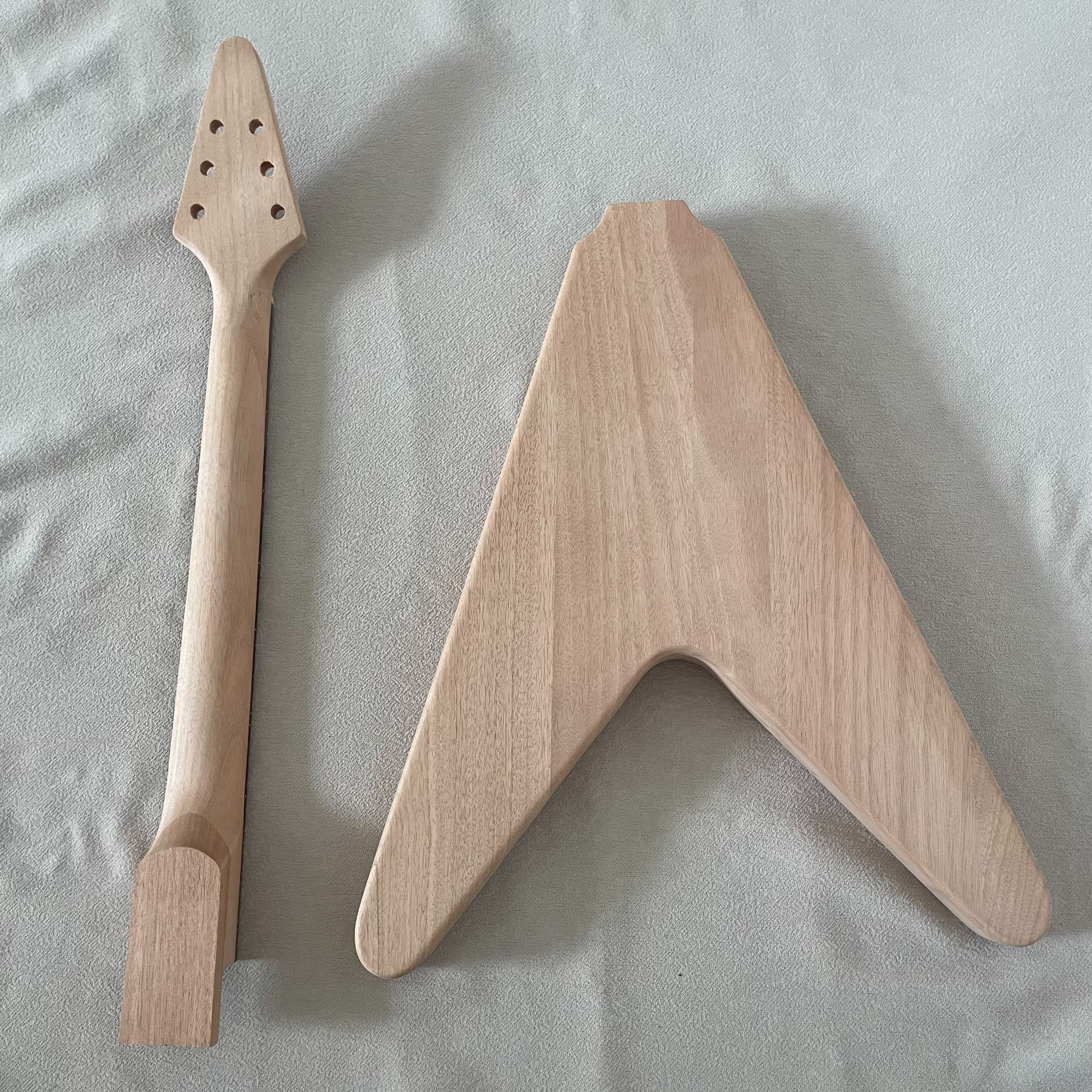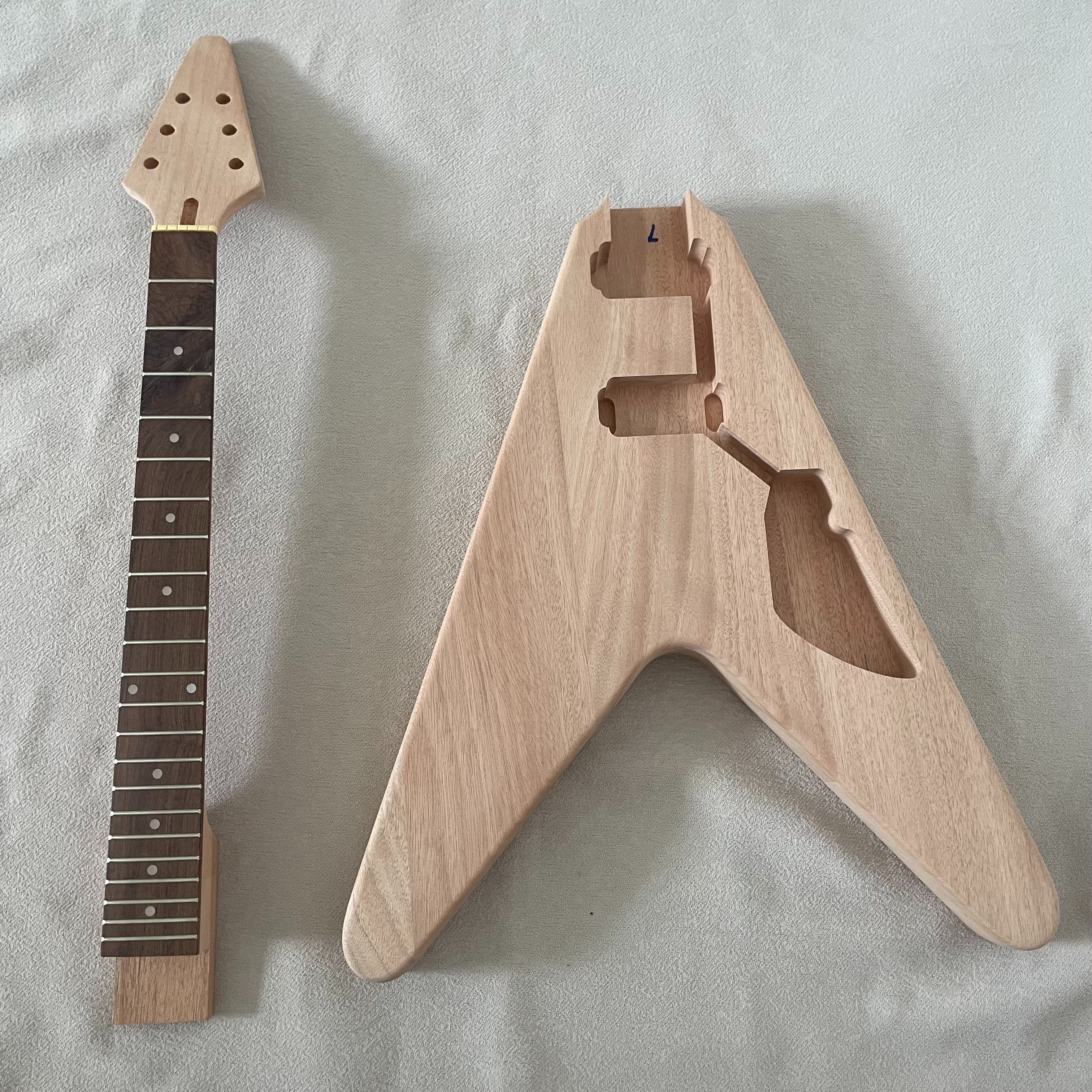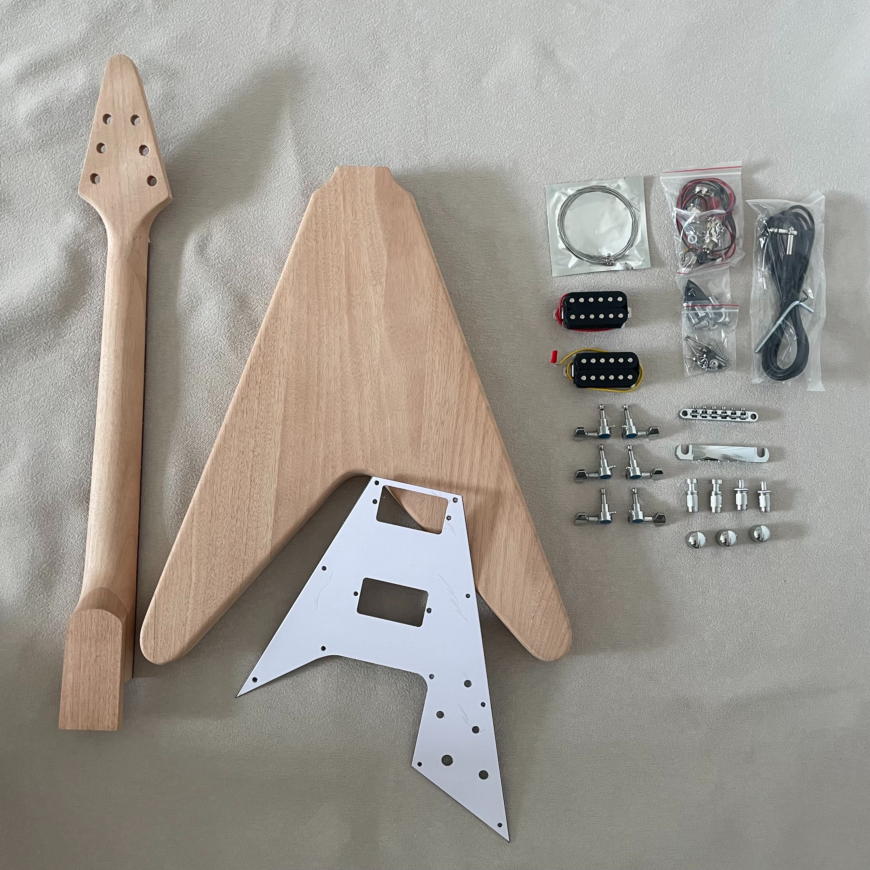 DIY Electric Guitar Kits Flying V Mahogany Body&Neck Rosewood Fingerboard Square Inlay