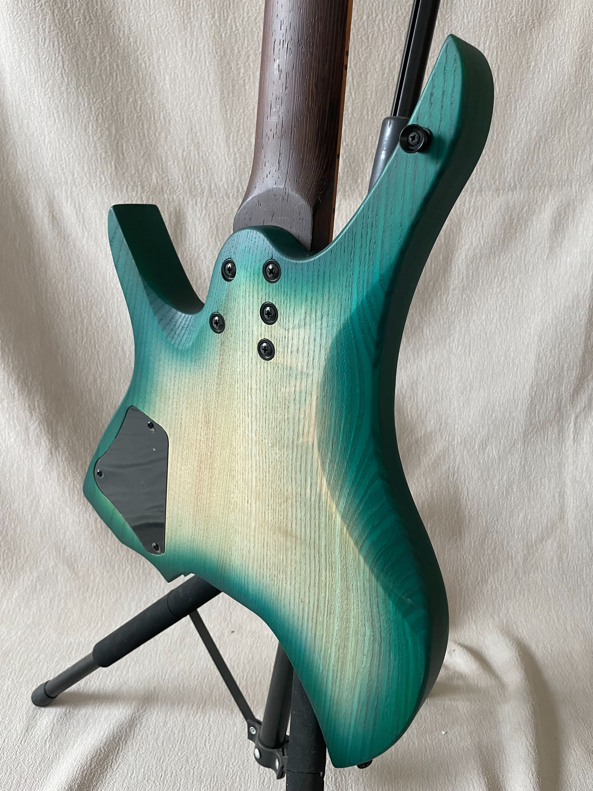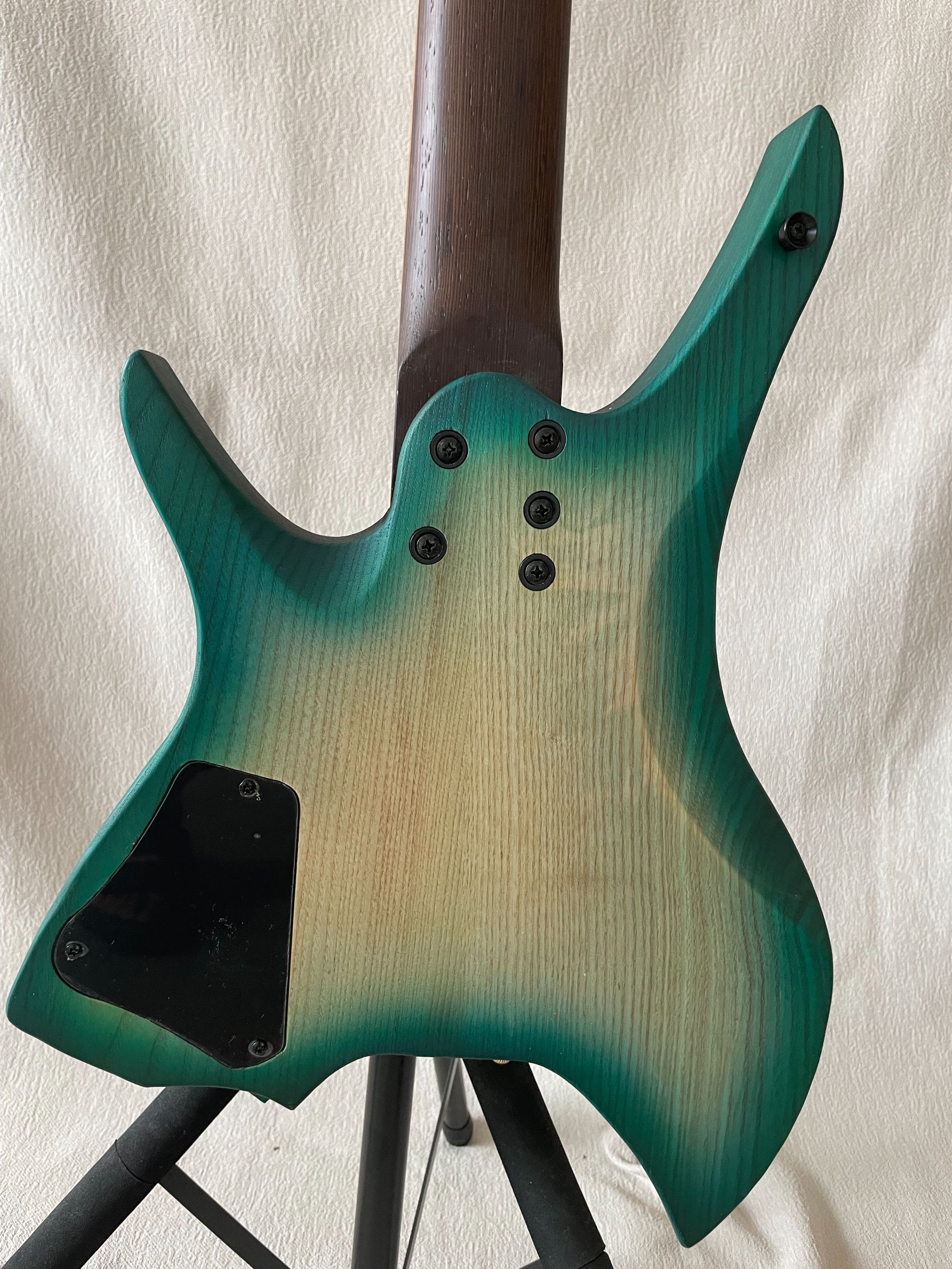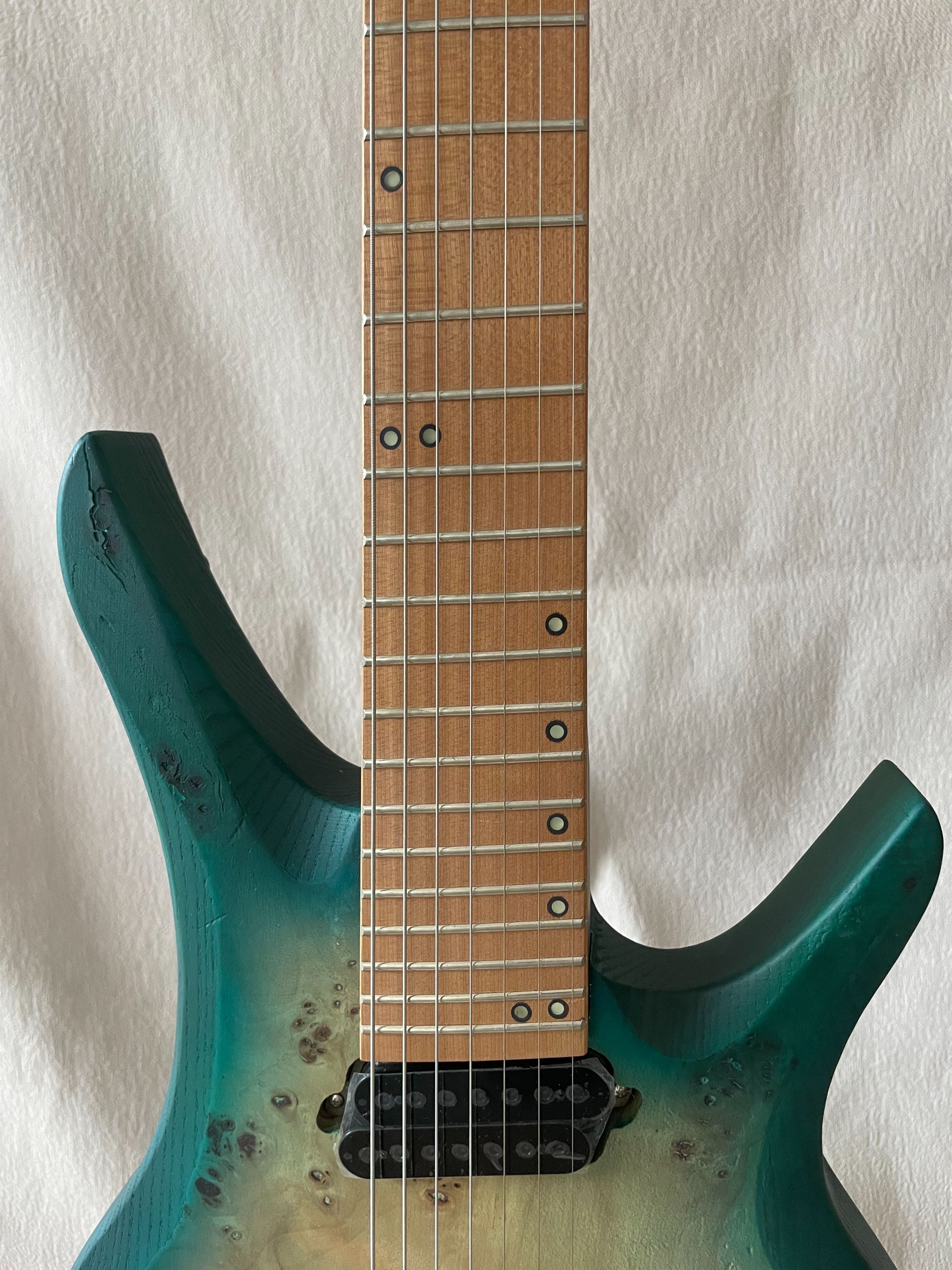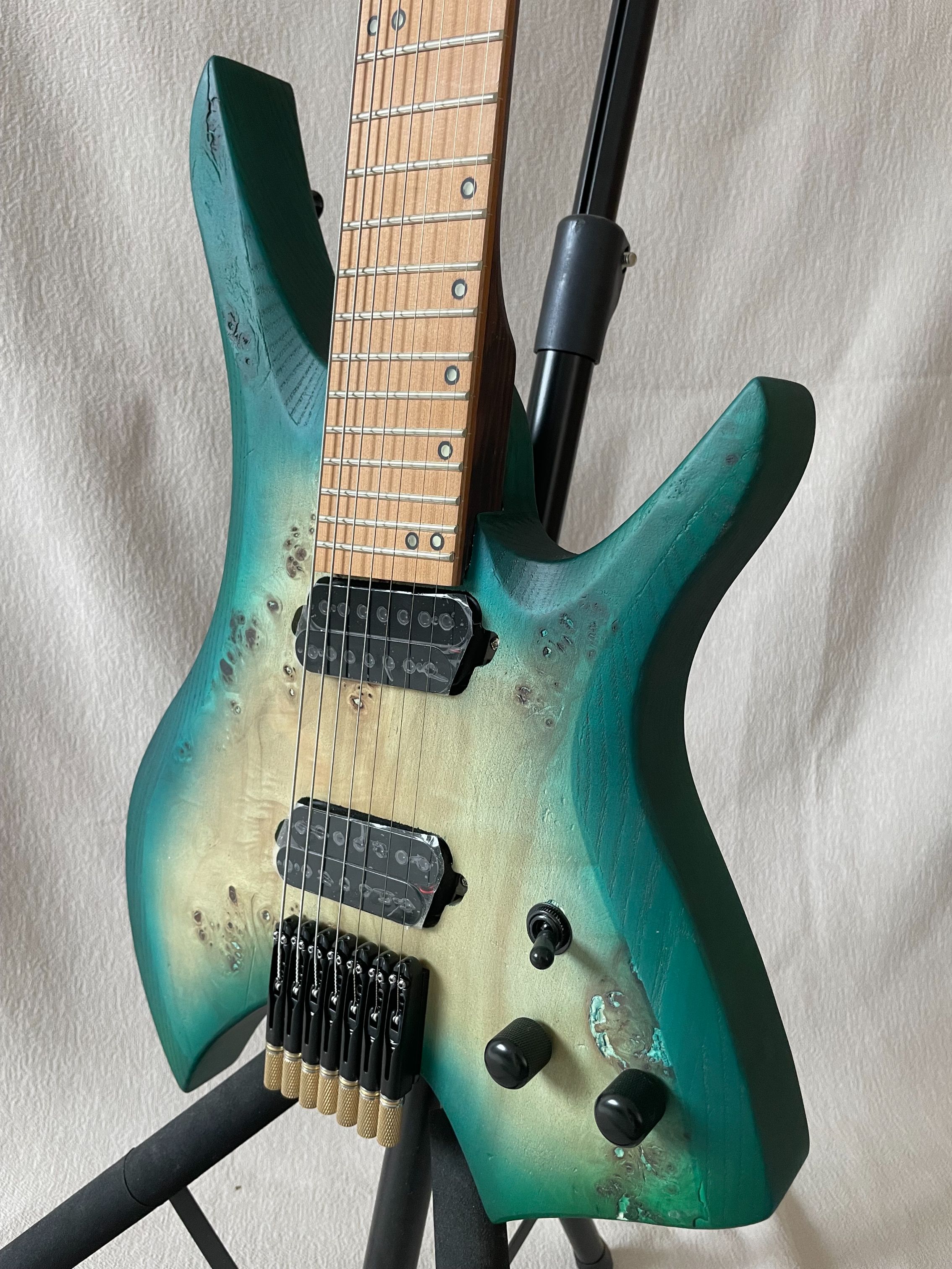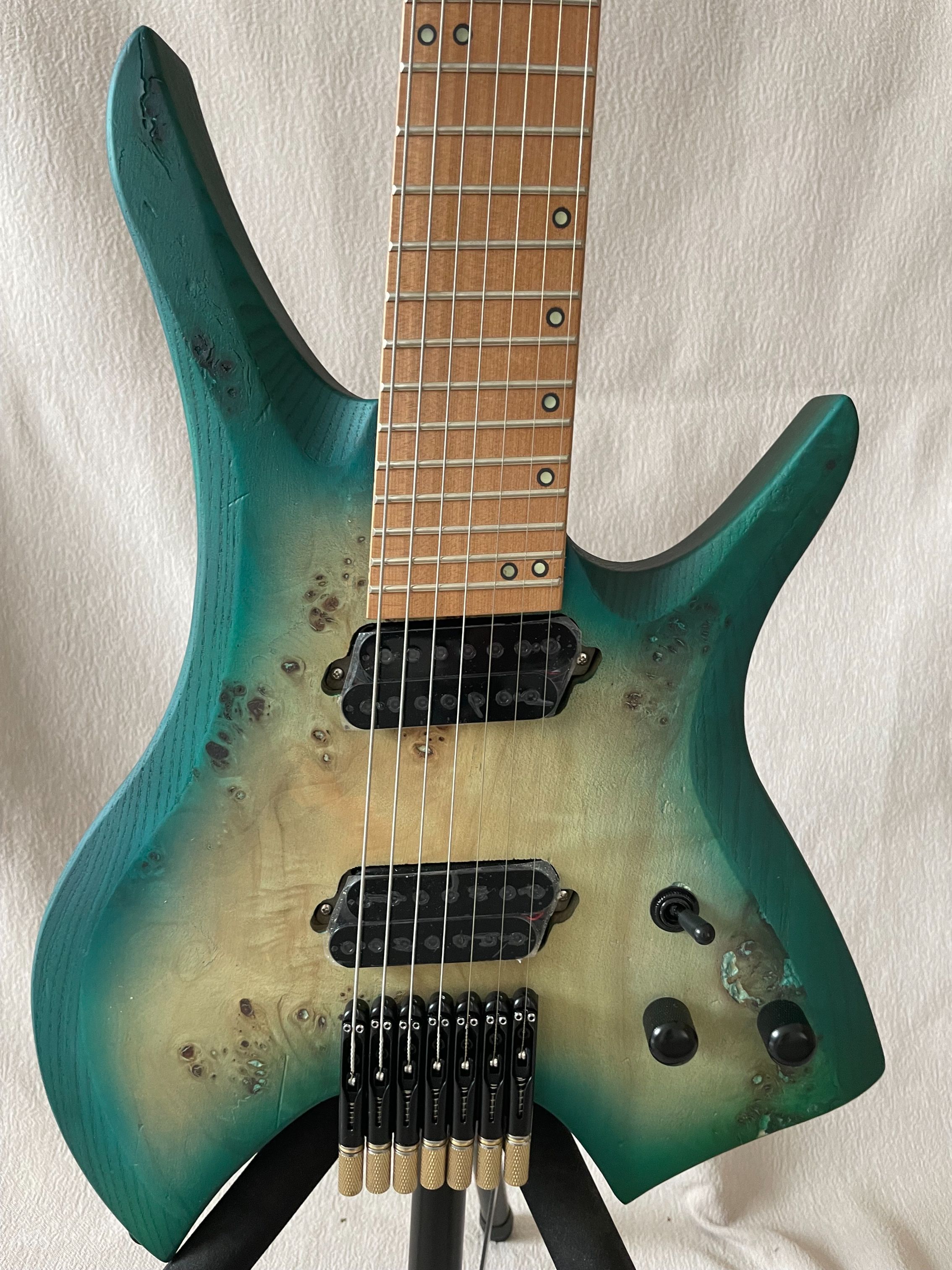 7 Strings Headless Electric Guitar Green Burst Color Roasted Maple Neck Ergonomic Asymmetric Neck
