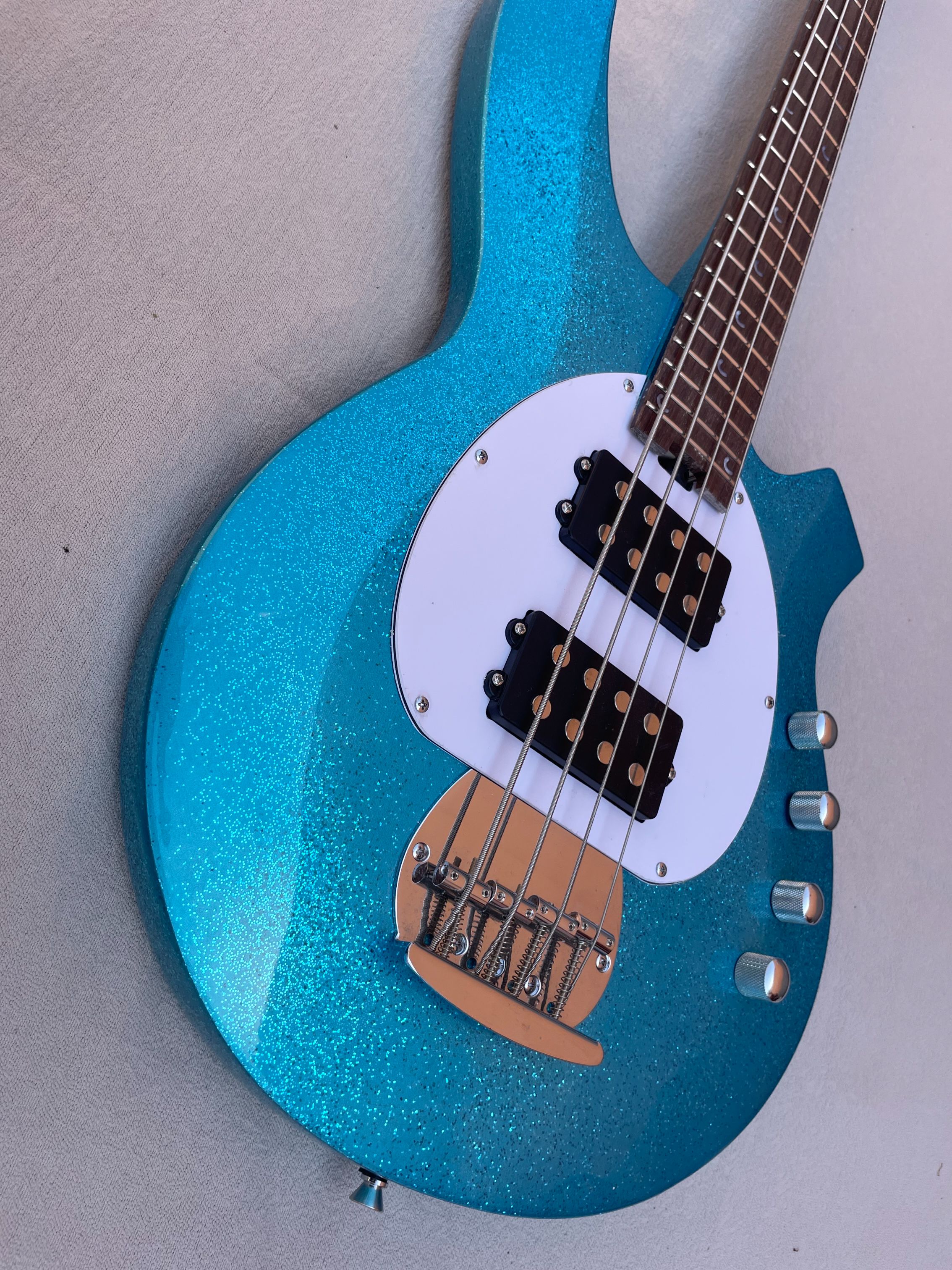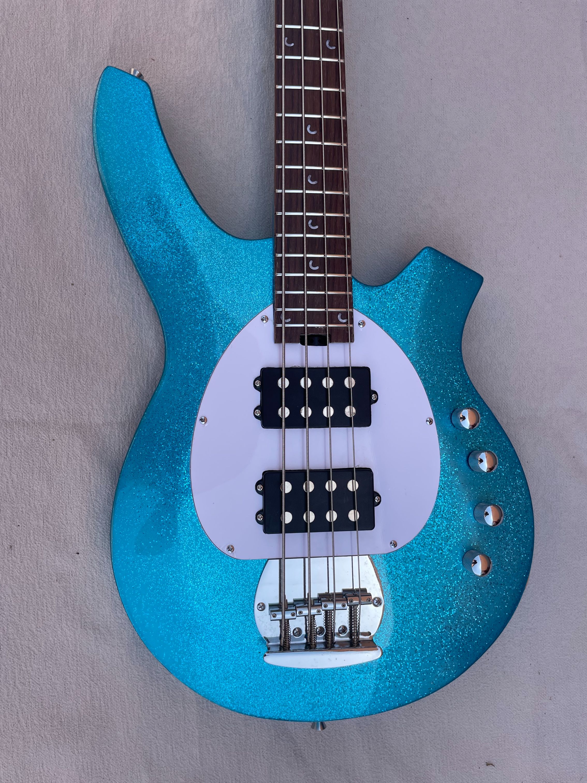 4-Strings Fluorescent Blue Bass Electric Guitar Rosewood Fingerboard Active Pickups