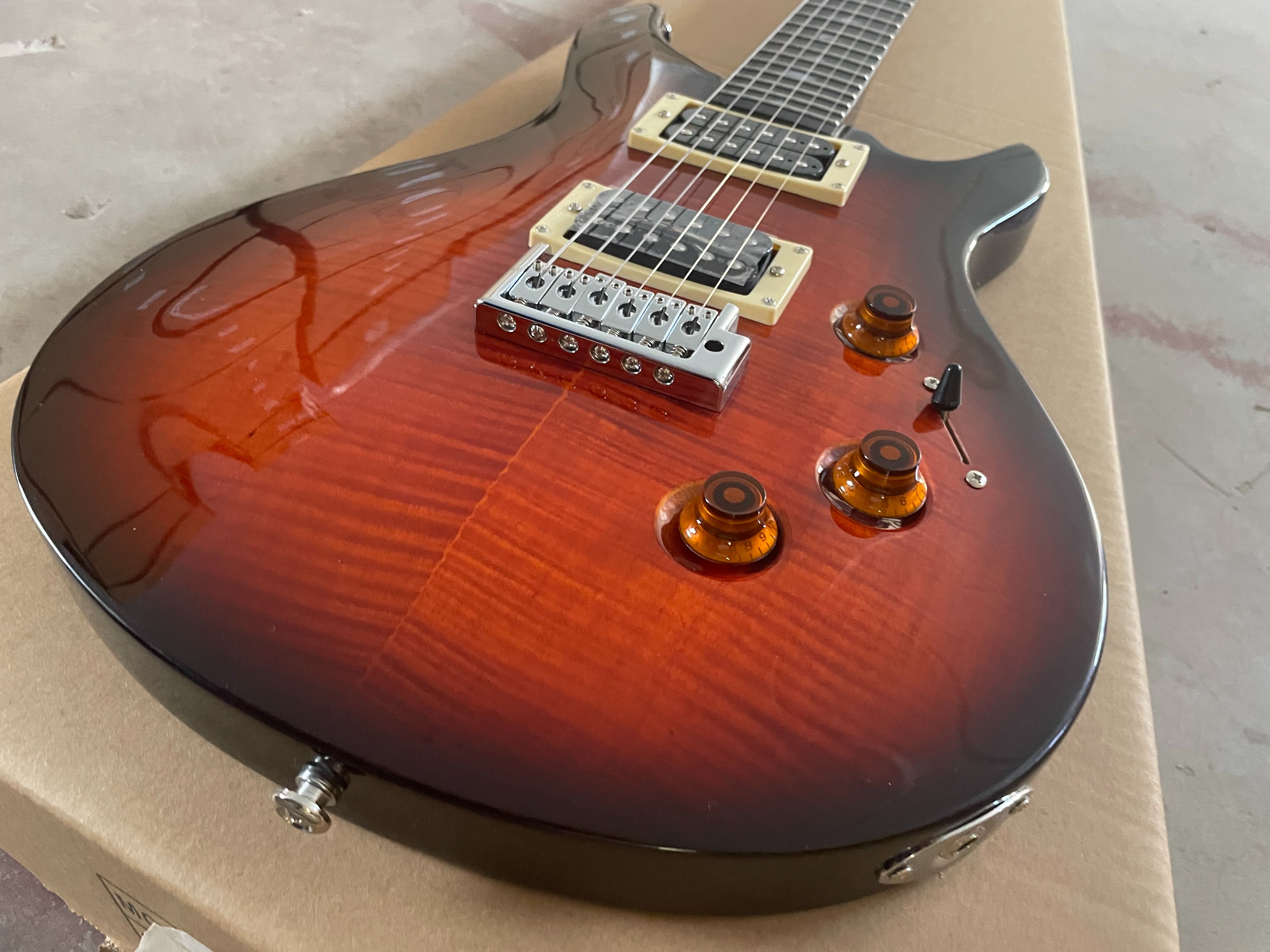 High Quality Electric Guitar,Rosewood Body, Maple Veneer Lower Flyer Inlay 2H Pickups Red