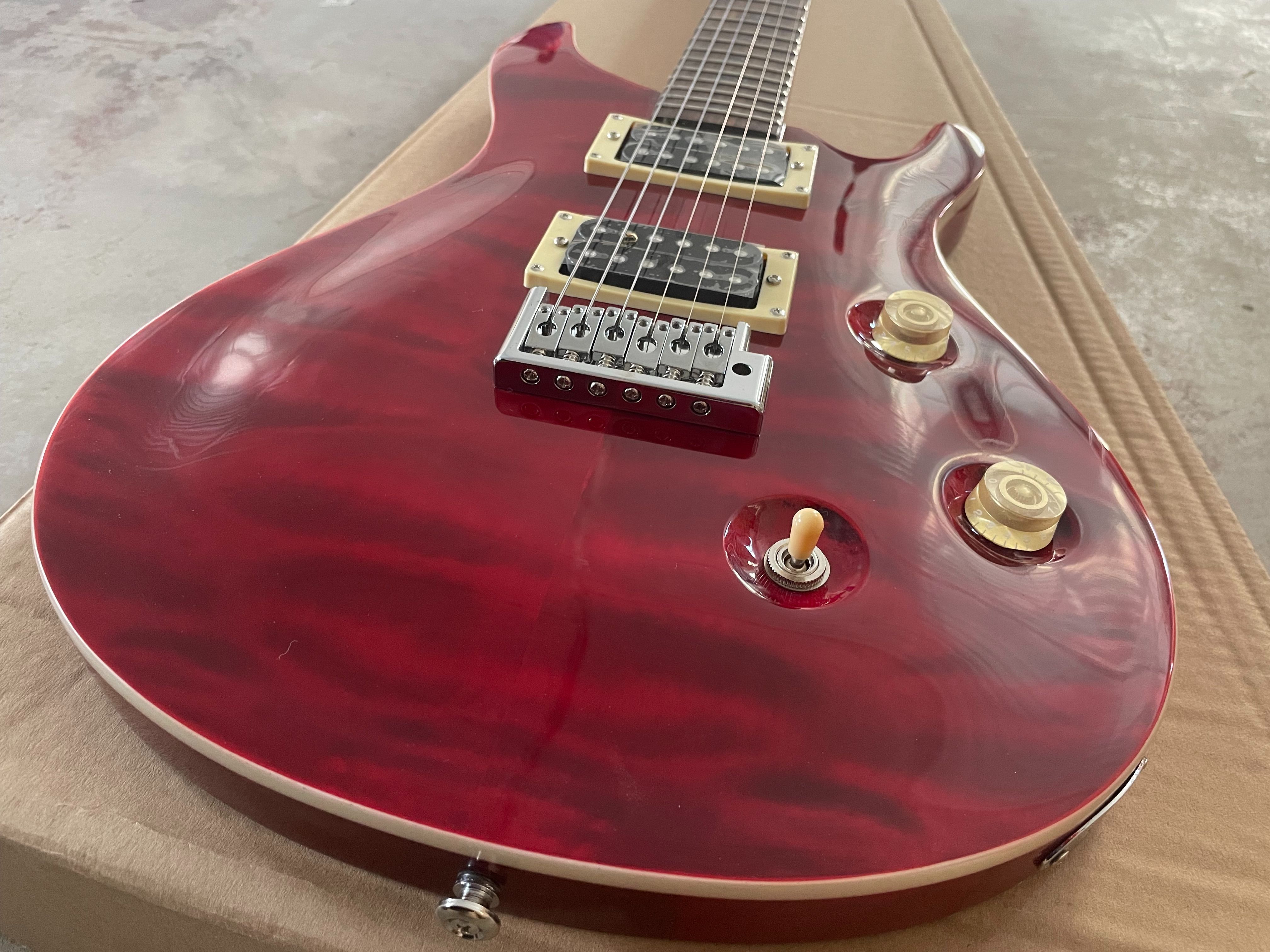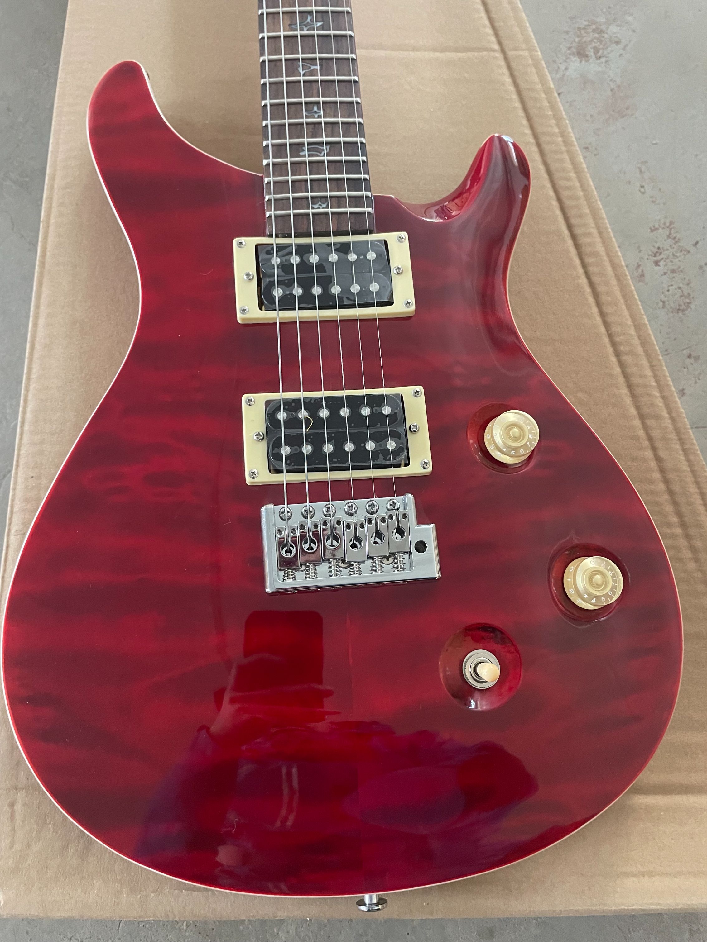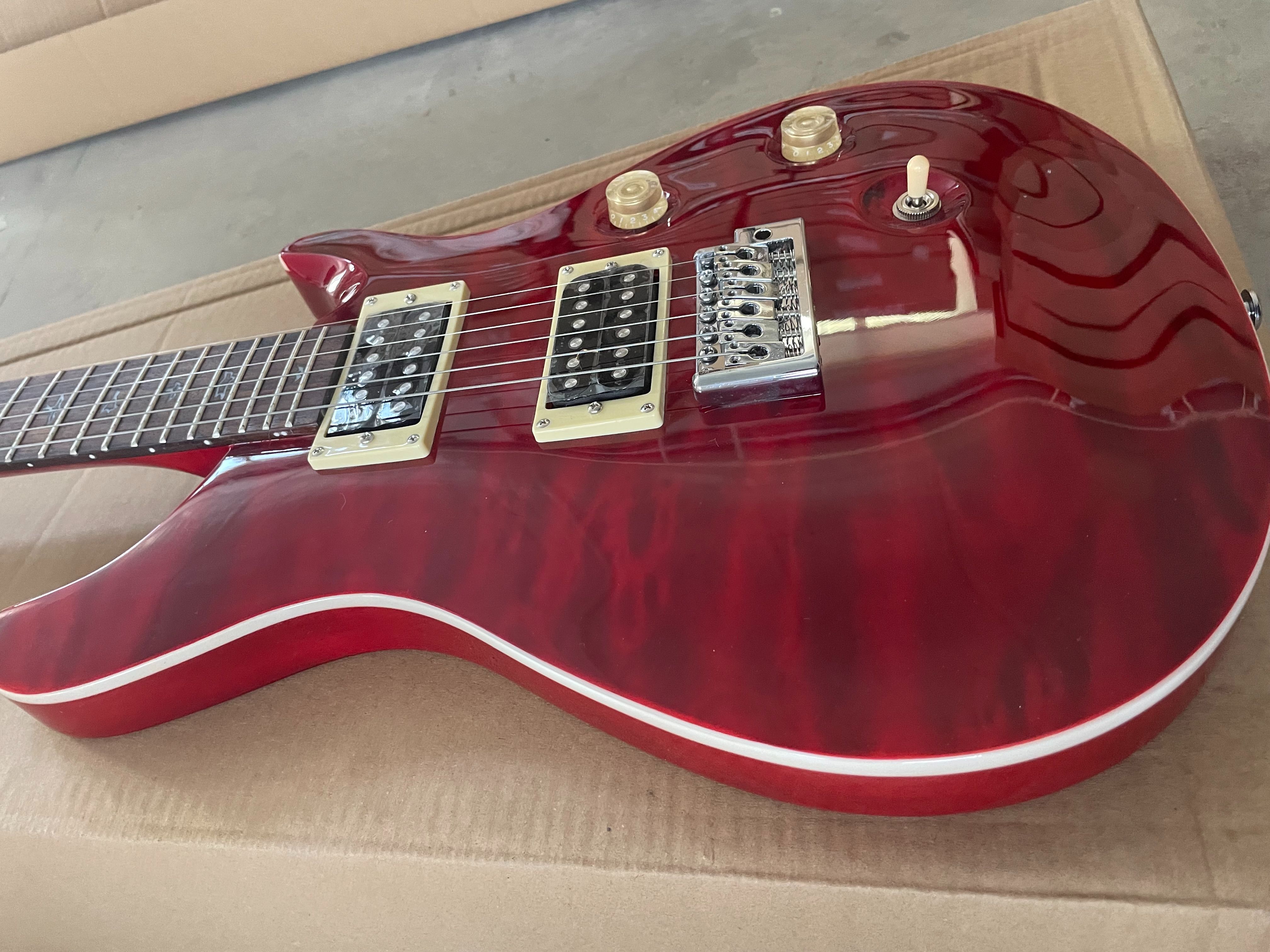 High Quality Electric Guitar,Rosewood Body, Large Floral Finish Lower Flyer Inlay 2H Pickups Red