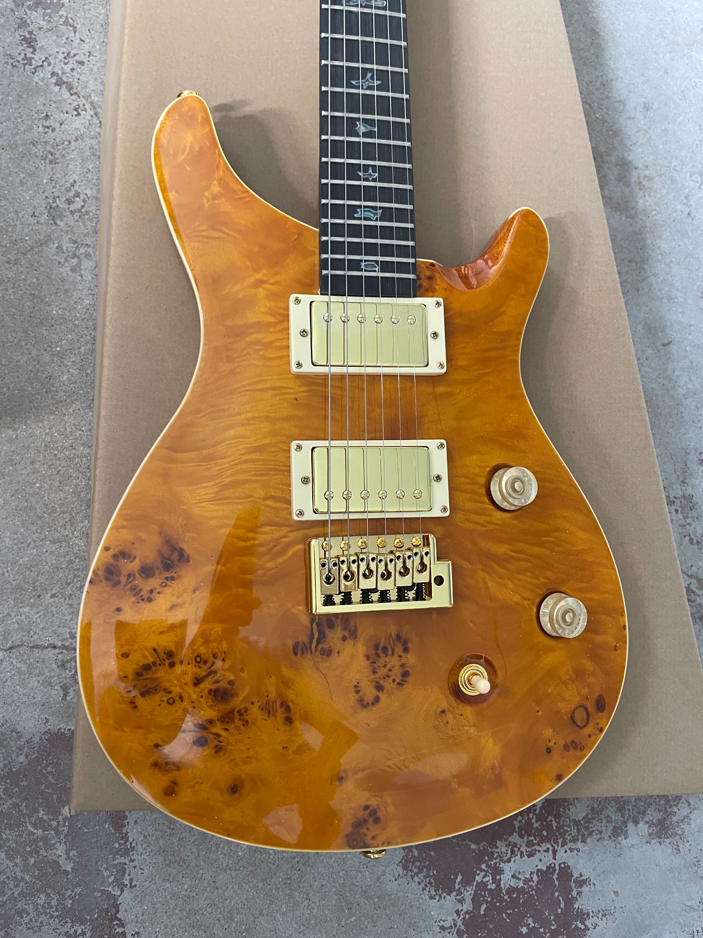 High Quality Electric Guitar,Rosewood Body, Large Floral Finish Lower Flyer Inlay 2H Pickups Red