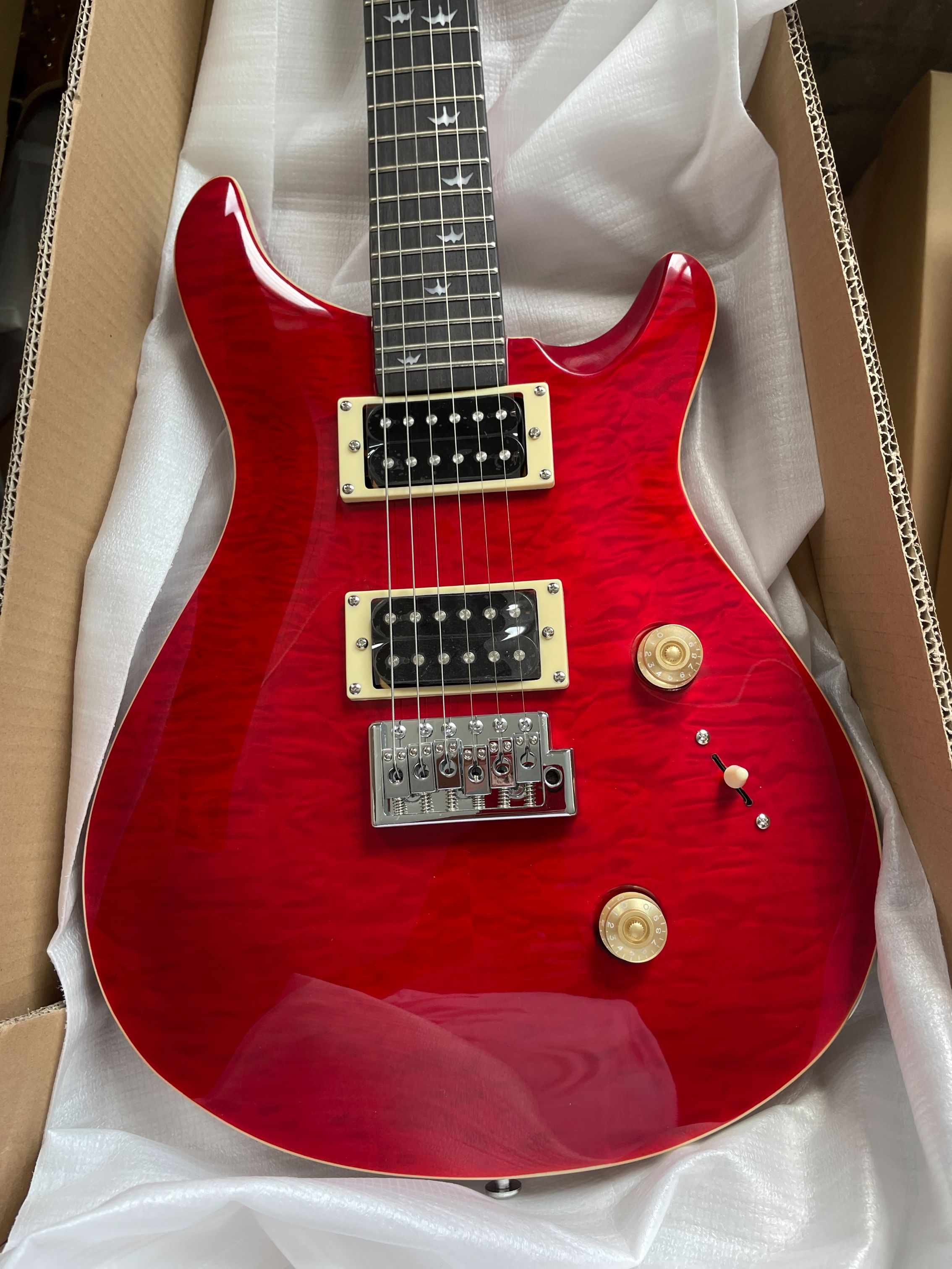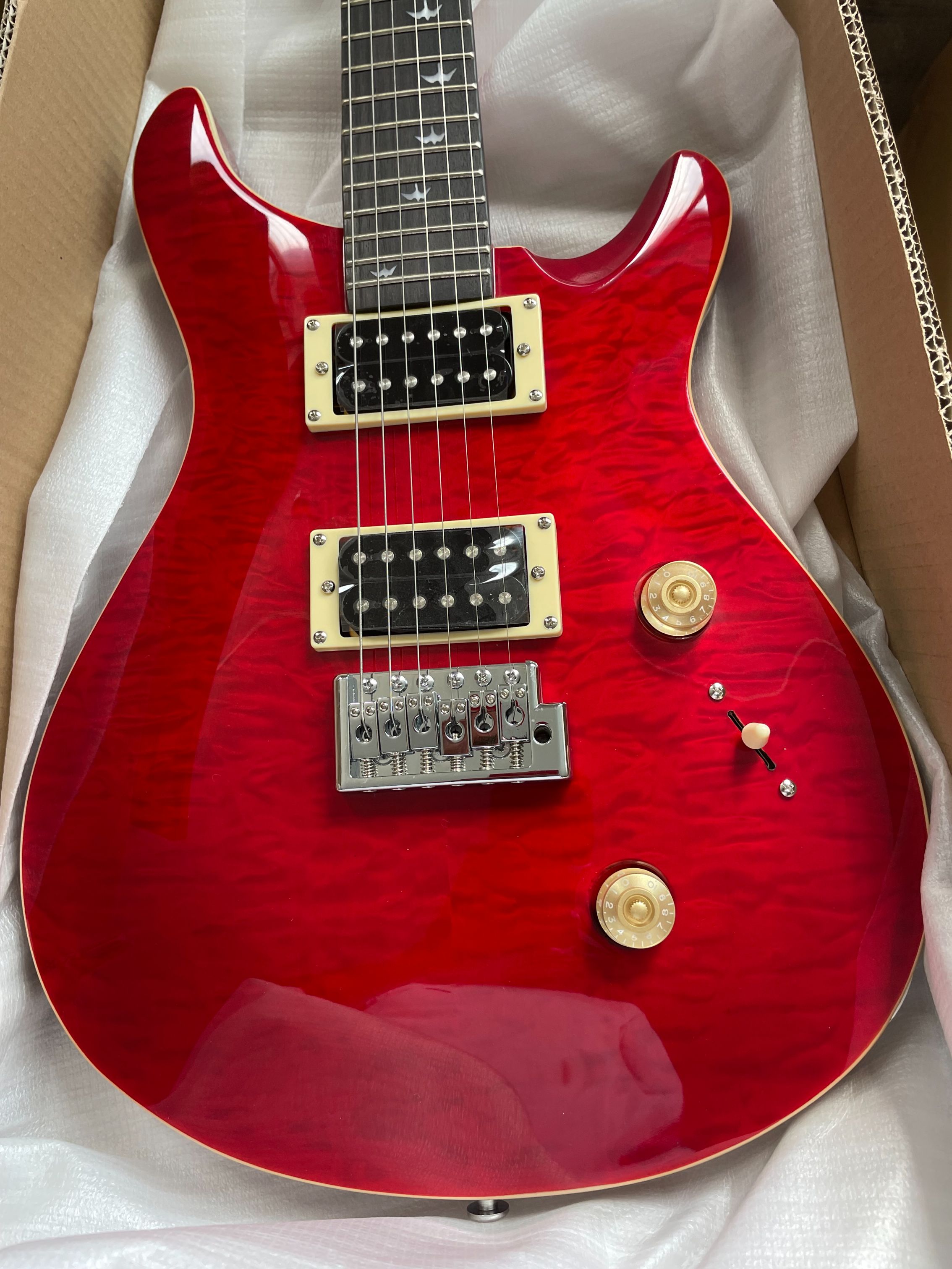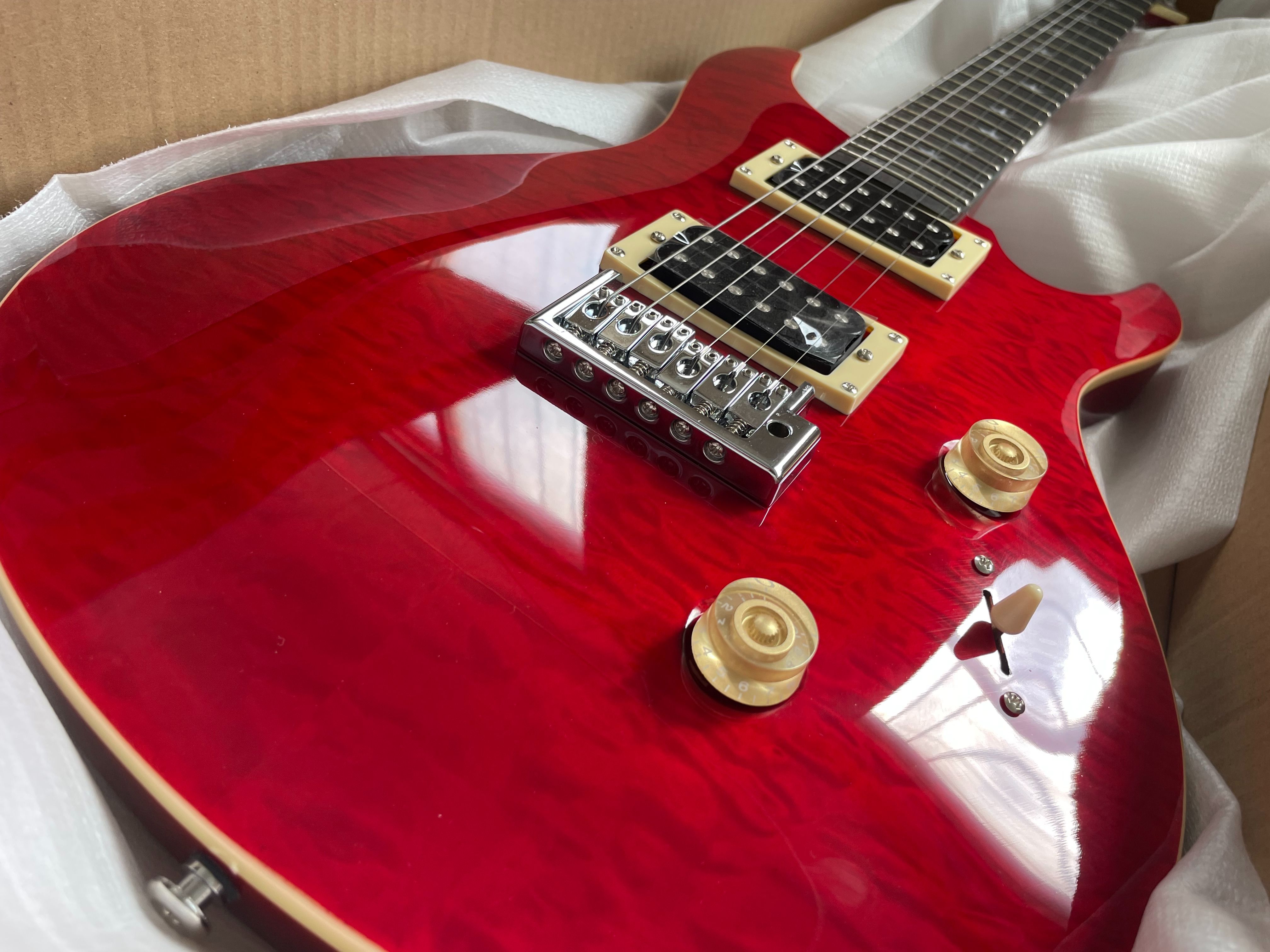 Red Electric Guitar Large Floral Finish Lower Flyer Inlay 2H Pickups Rosewood Body