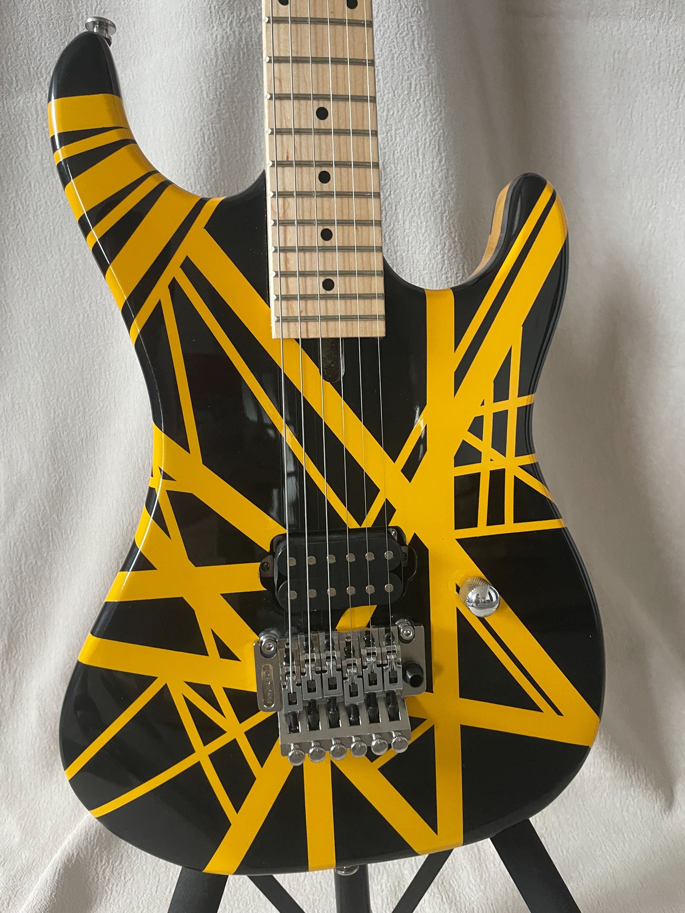 5150 Yellow Stripe Black Electric Guitar Floyd Rose Tremolo Bridge, Locking Nut, Maple Neck & Fingerboard