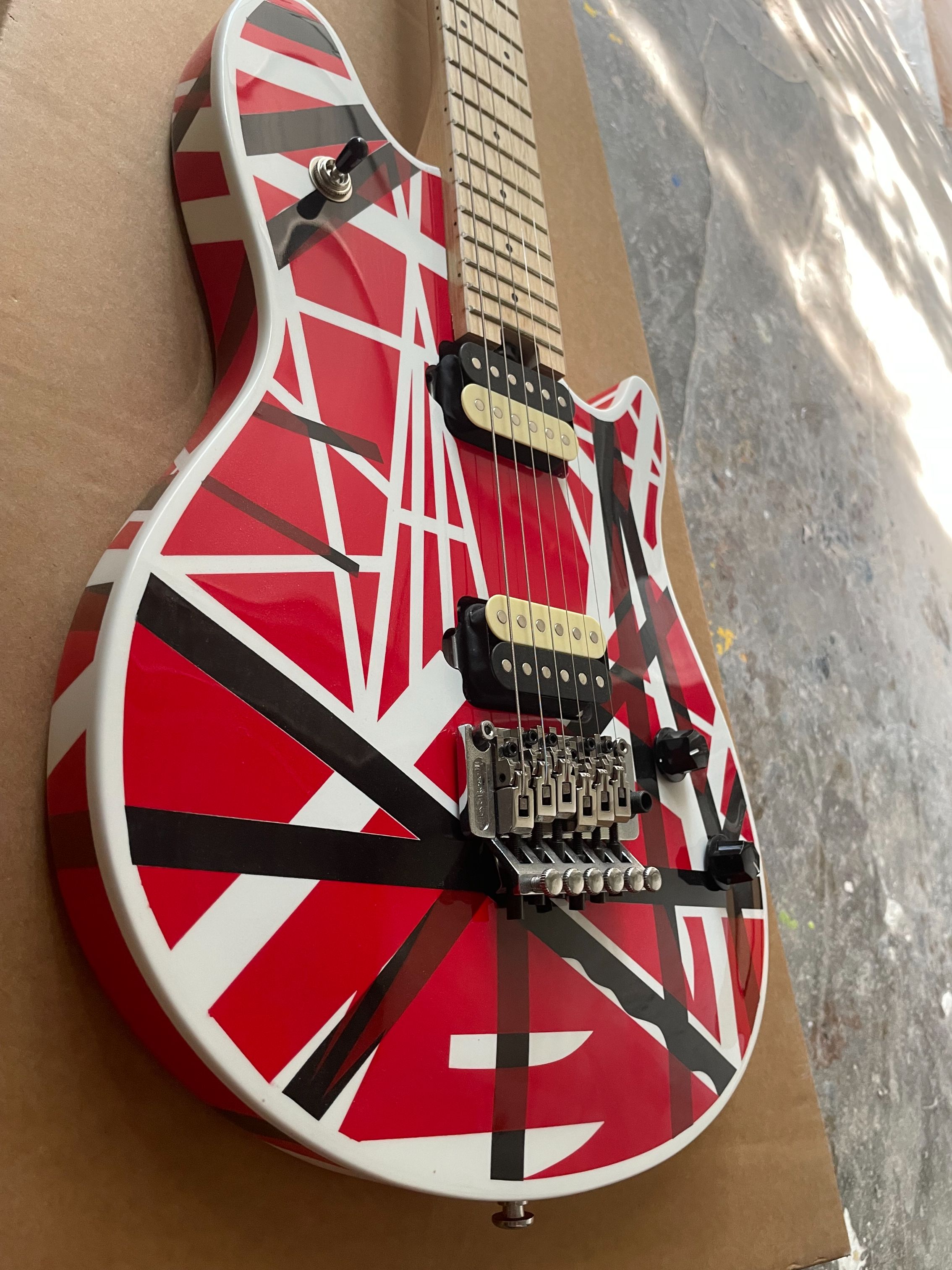 High Quality White And Red Line Electric Guitars Floyd Rose Tremolo Bridge Maple Fingerboard