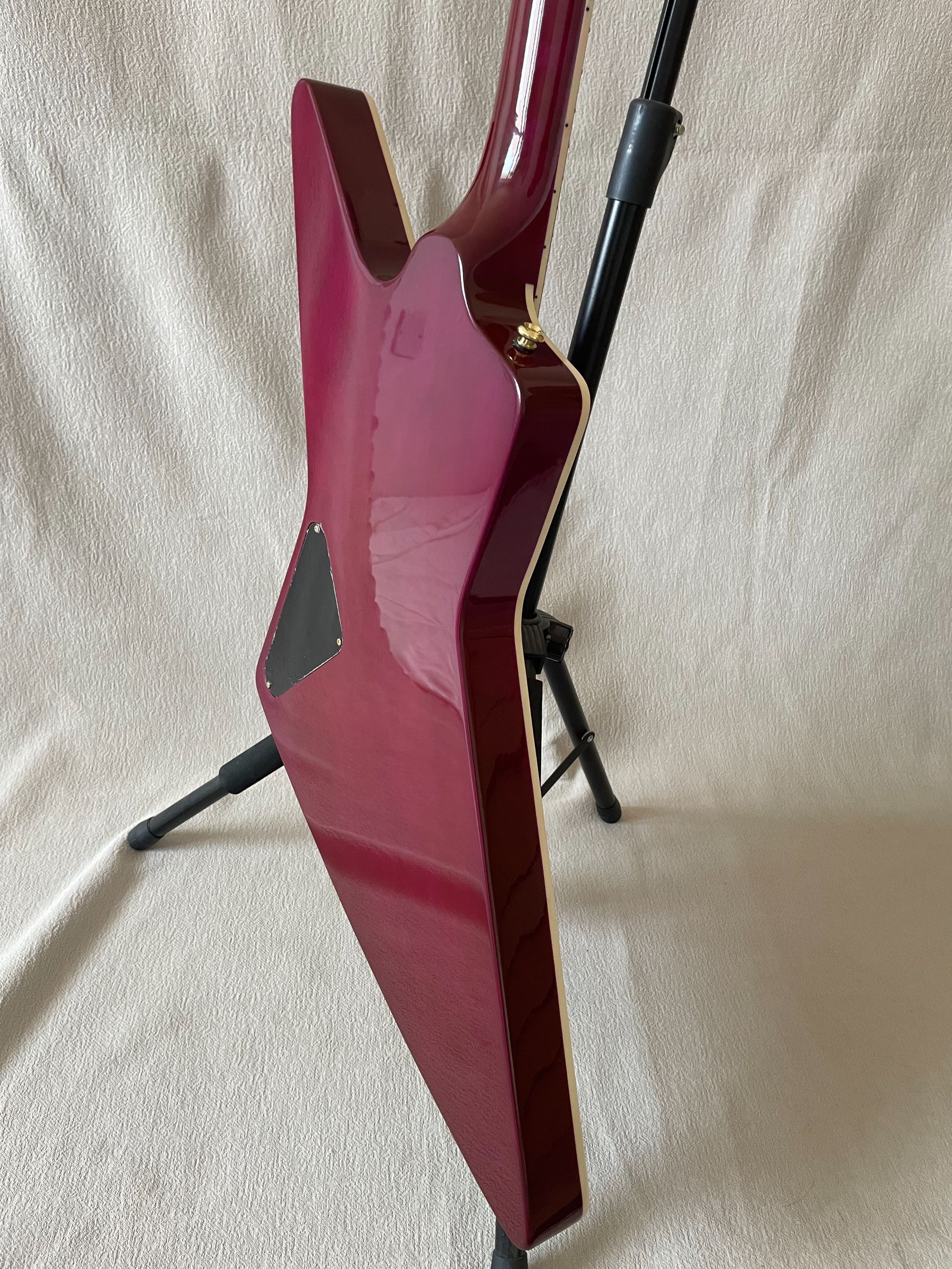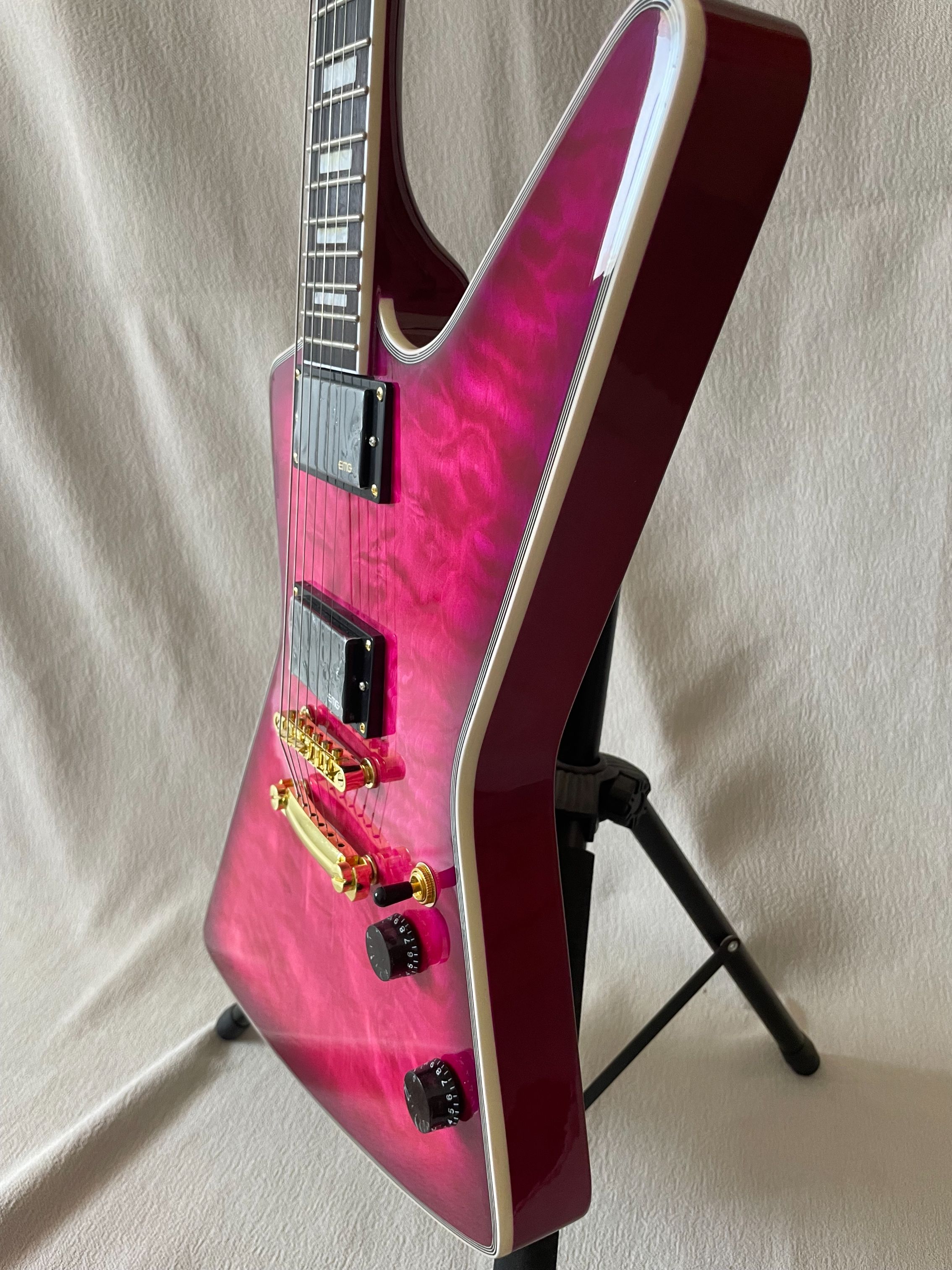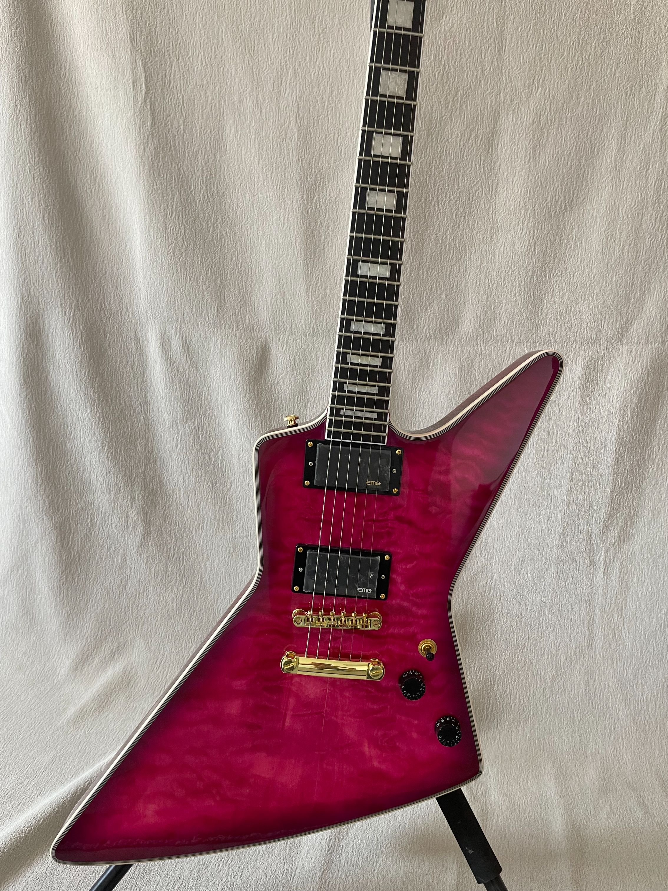 Electric Guitar Purple Explorer Flame Maple Top Gold Hardware High Quality