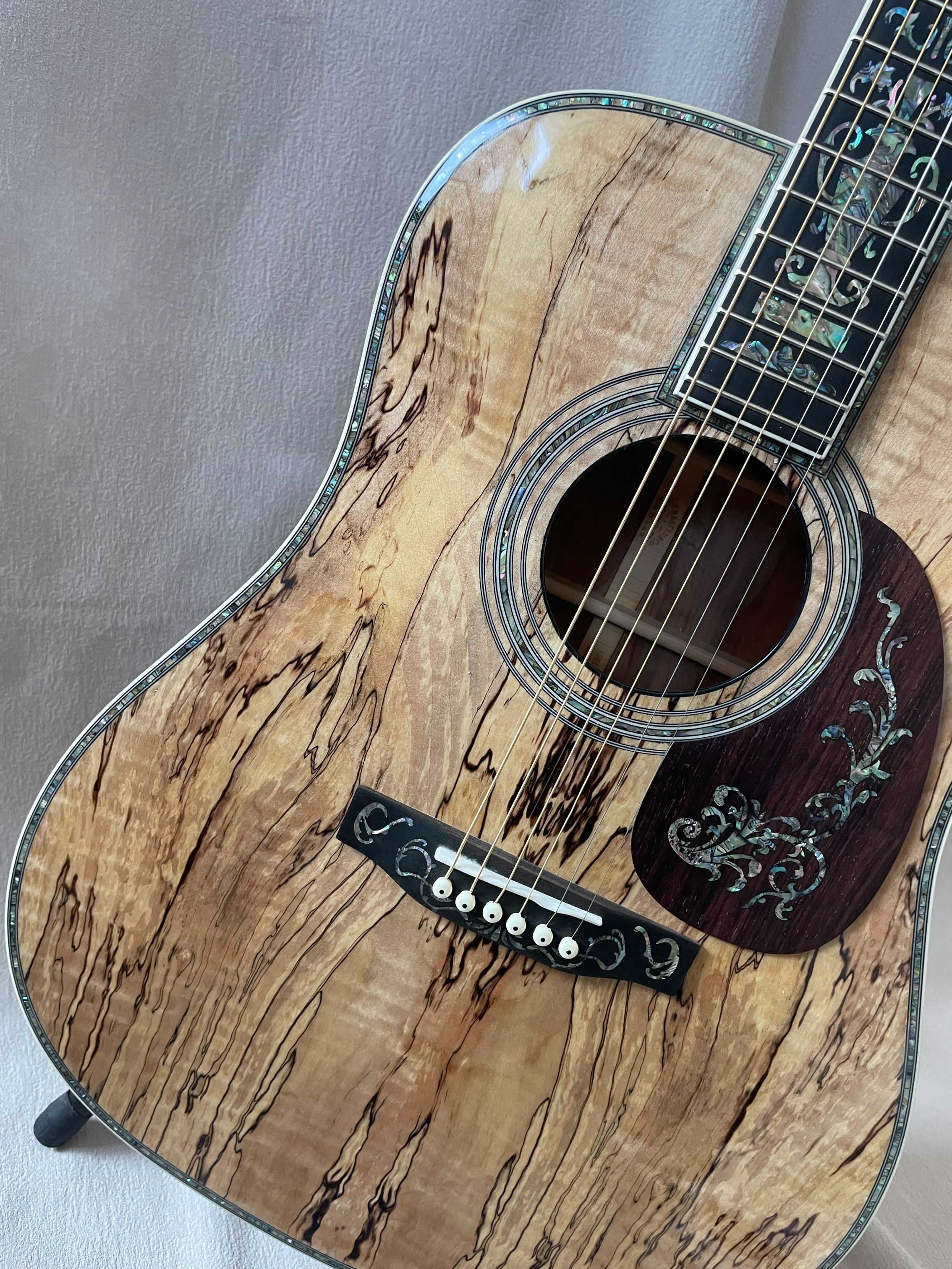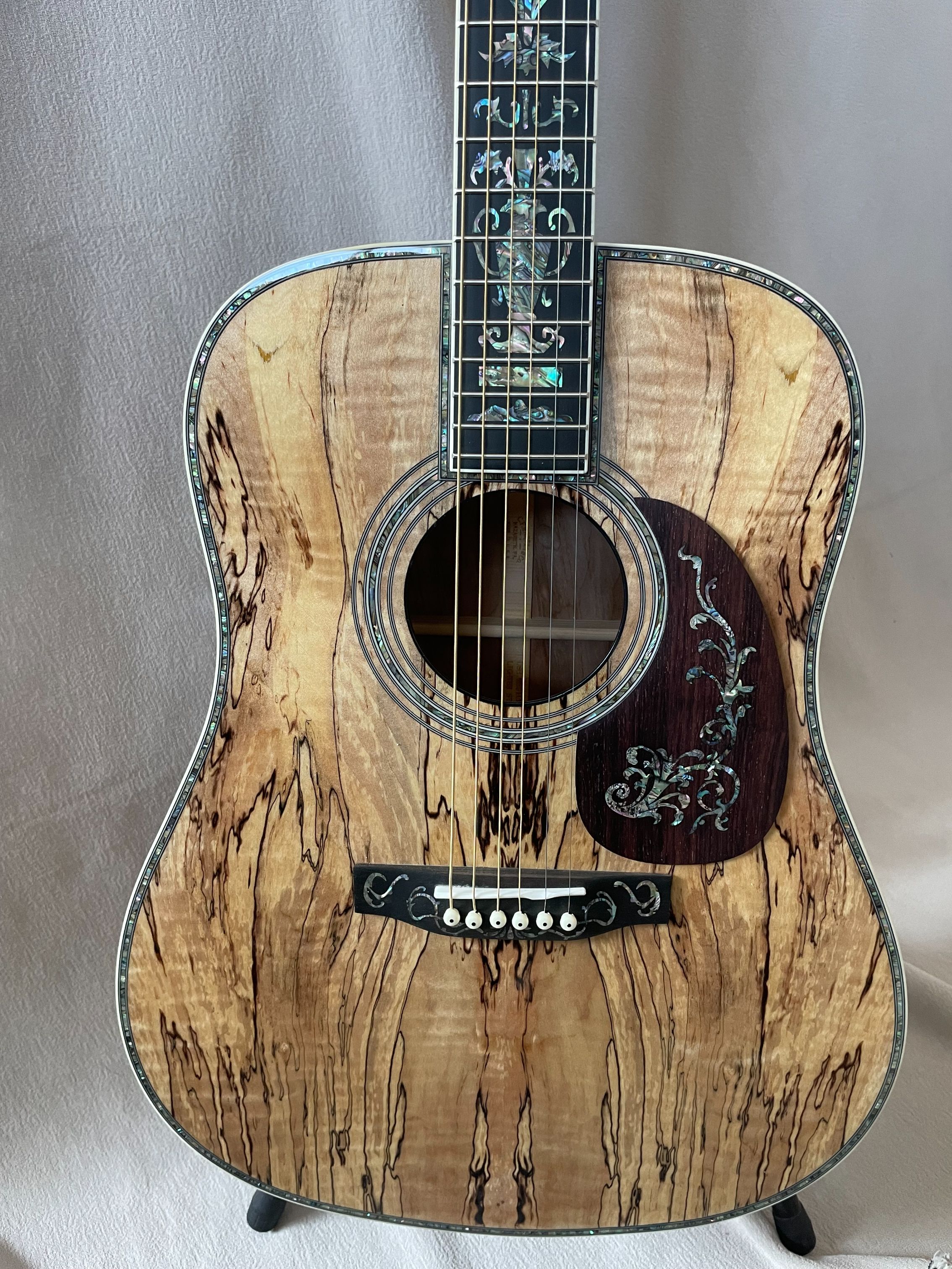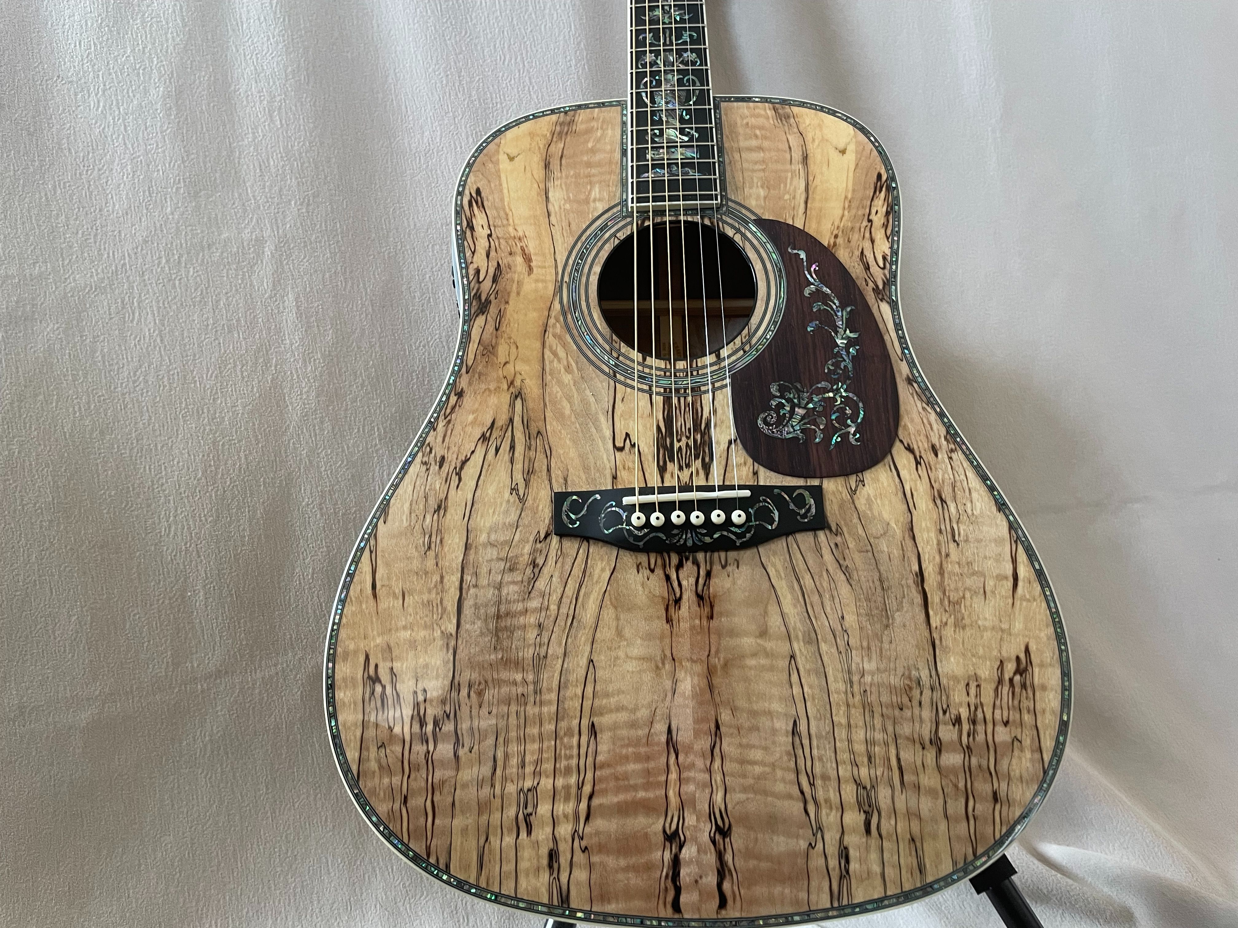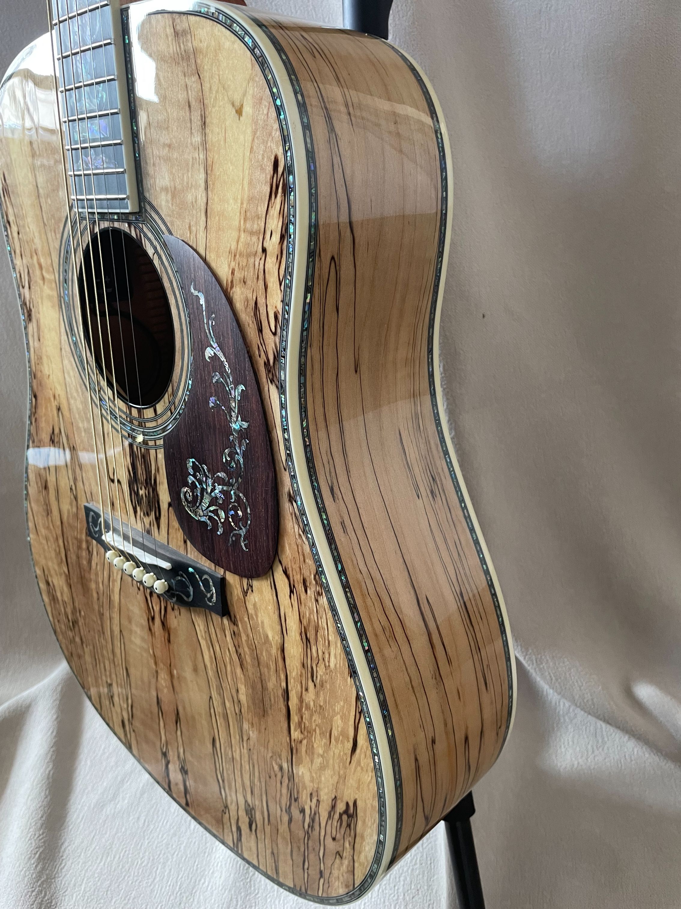 Custom Maple 41 Inch D Type Acoustic Guitar Abalone Inlays Ebony Fingerboard