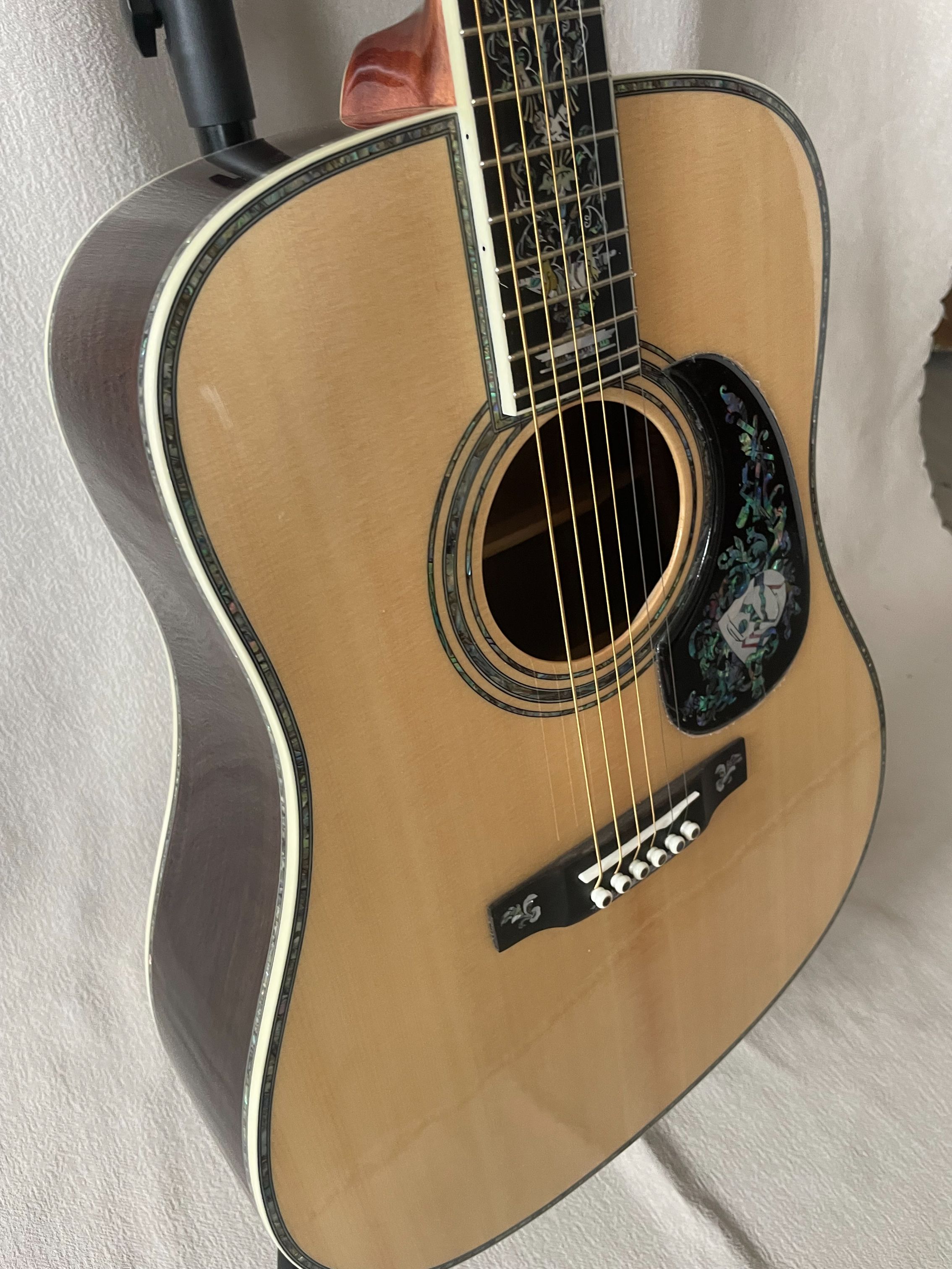 Custom Maple 41 Inch D Type Acoustic Guitar Abalone Inlays Ebony Fingerboard