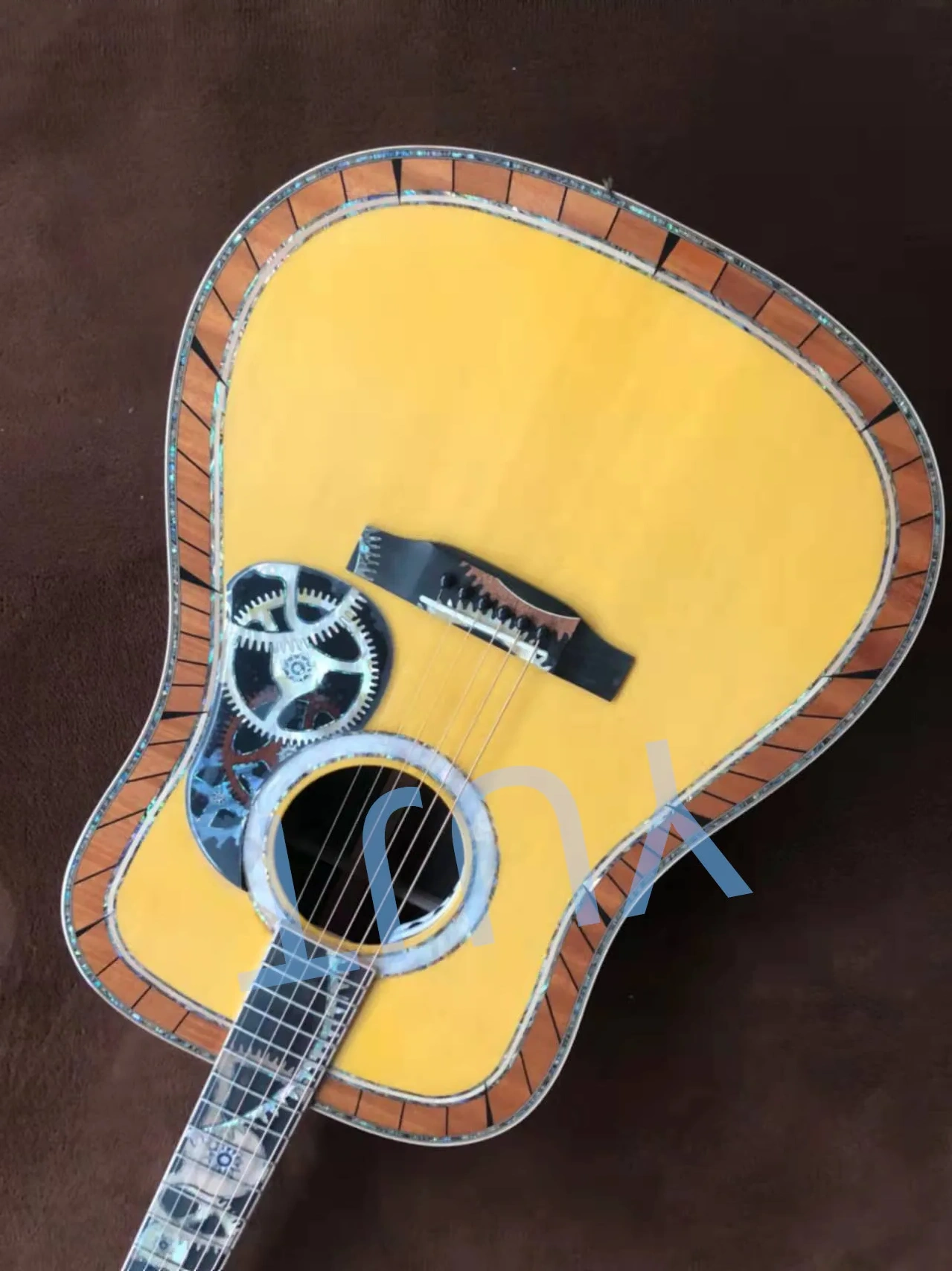 Deluxe Edition D-type Acoustic Guitar Abalone Inlay Solid Spruce Ebony Fretboard