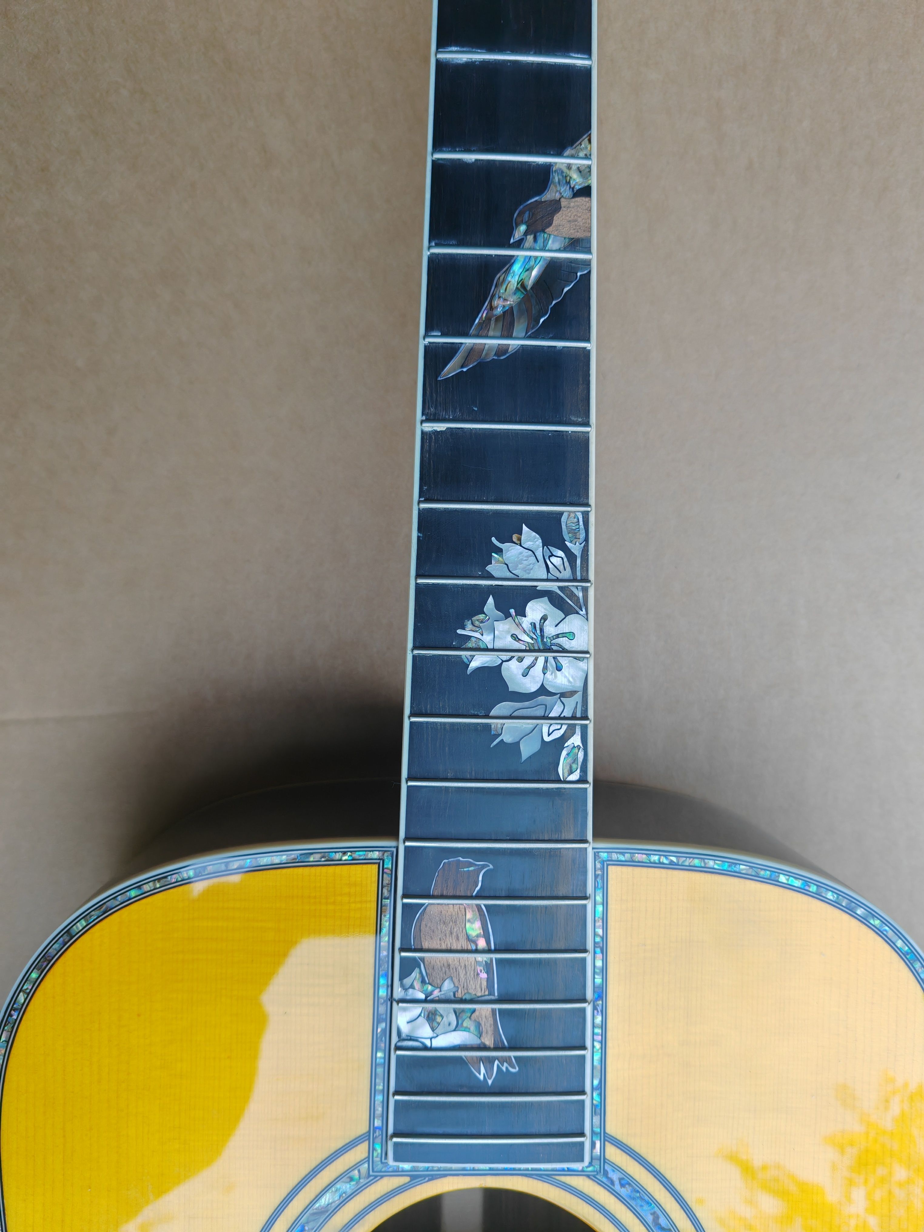 Factory Customized Imperial Bird Full Veneer Acoustic Guitar with Ebony Fingerboard Inlay And Undercoding