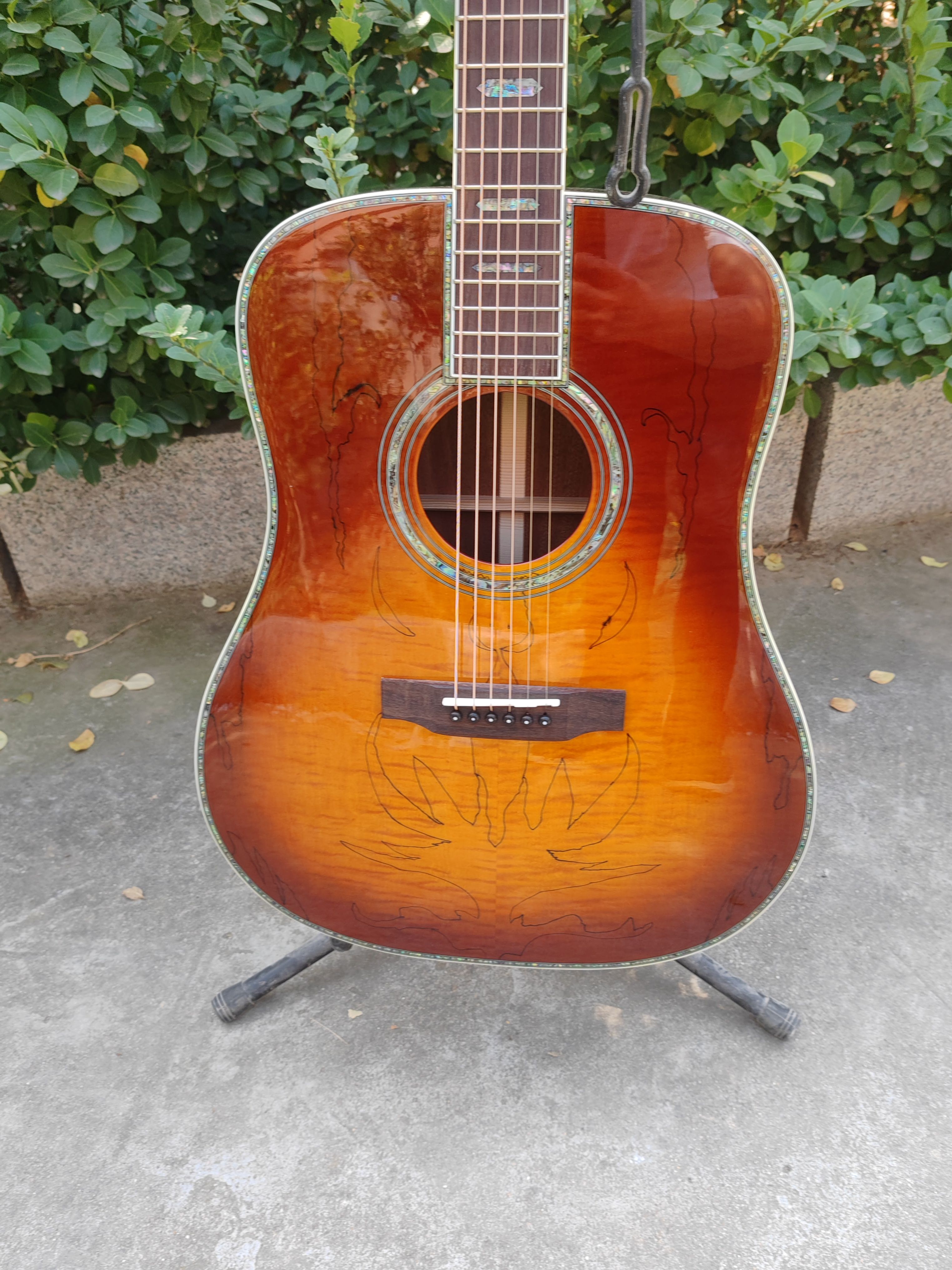 Factory Customized Imperial Bird Full Veneer Acoustic Guitar with Ebony Fingerboard Inlay And Undercoding